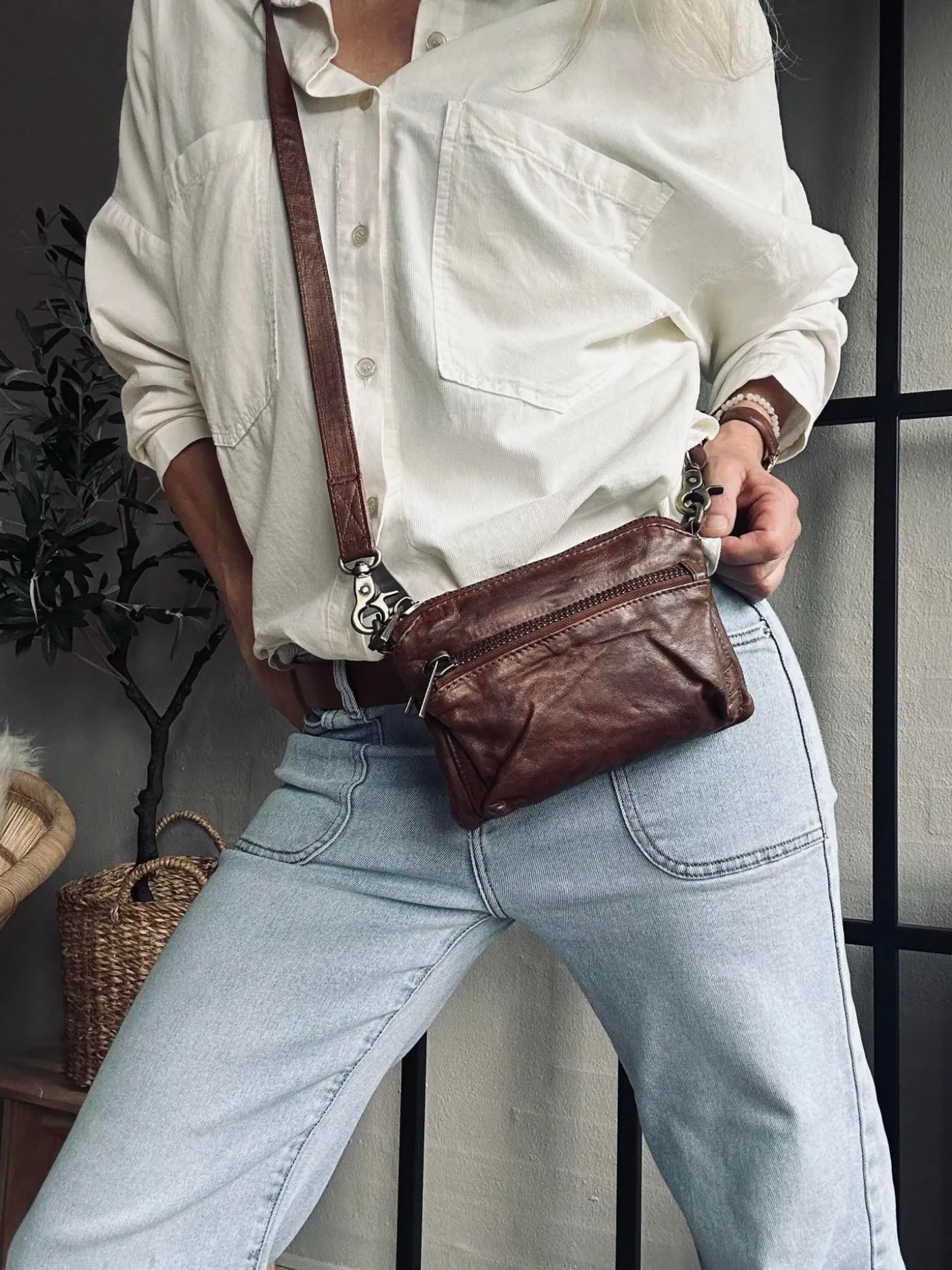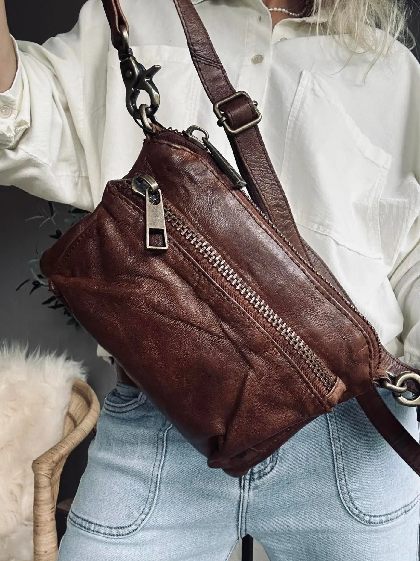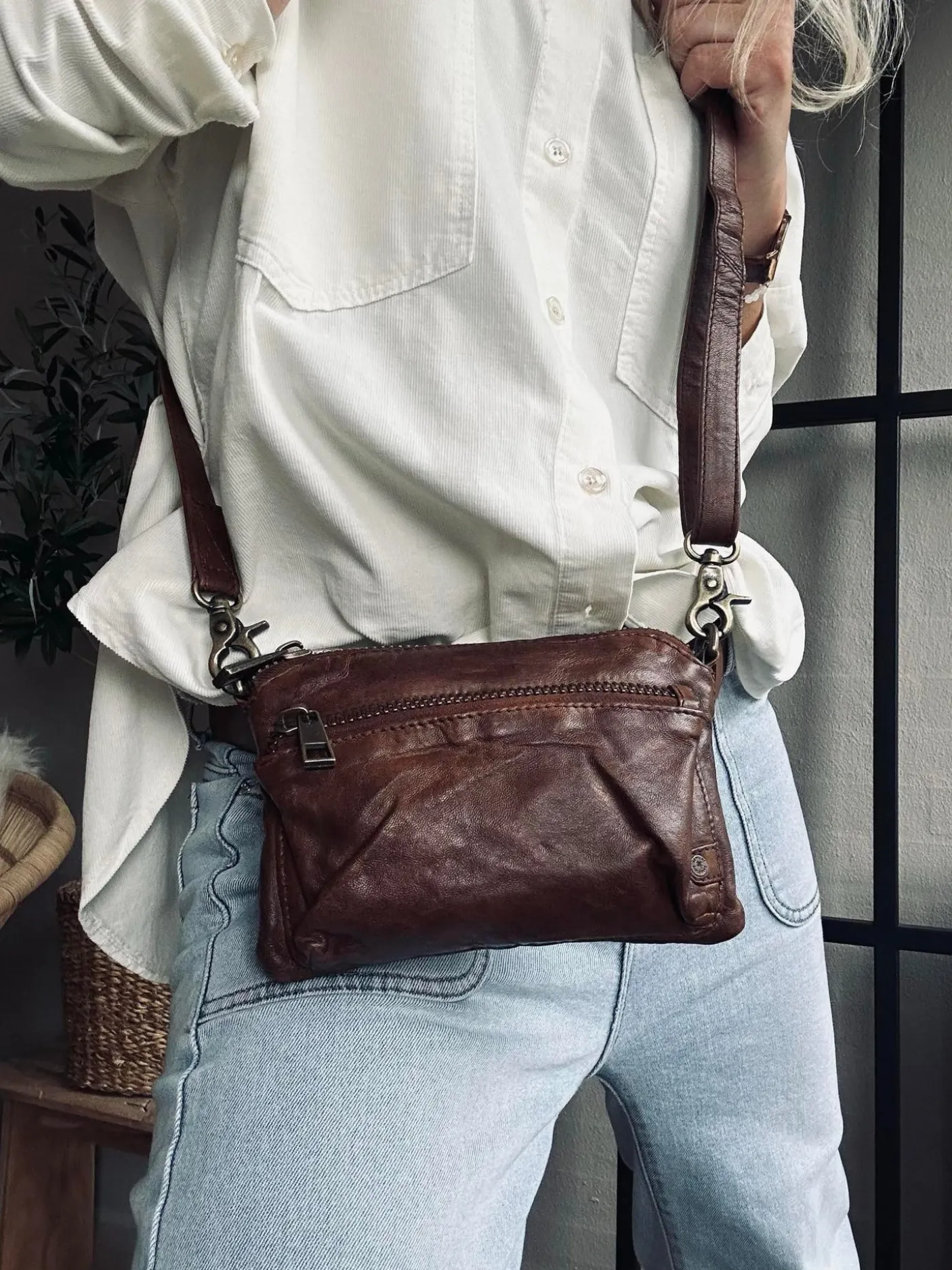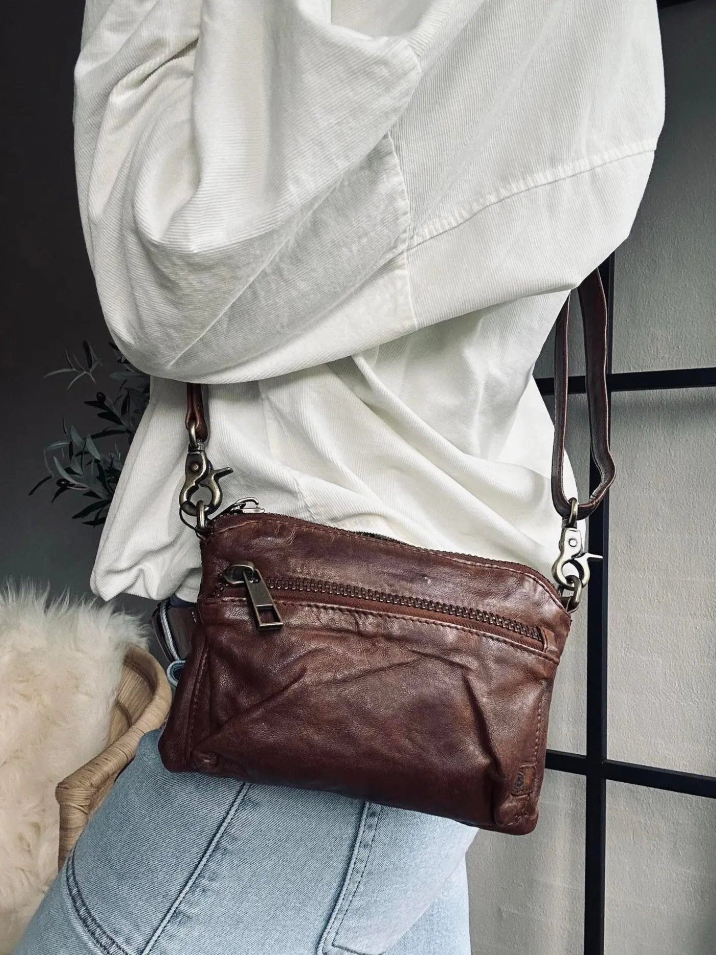 Med den justerbare og aftagelige rem kan du style tasken præcis, som det passer dig. Brug den som crossover, over skulderen – eller tag remmen af og bær den i hånden som en elegant clutch.