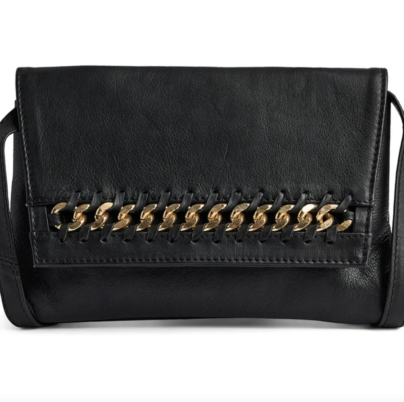 Denne crossover/clutch forener klassisk elegance med et råt og moderne udtryk. Det minimalistiske design får kant af en kædedetalje på fronten, som straks tilfører tasken karakter og attitude. Det er netop den slags kontrast, der gør tasken til et oplagt valg for dig, der elsker accessories med personlighed – uden at gå på kompromis med det sofistikerede look.