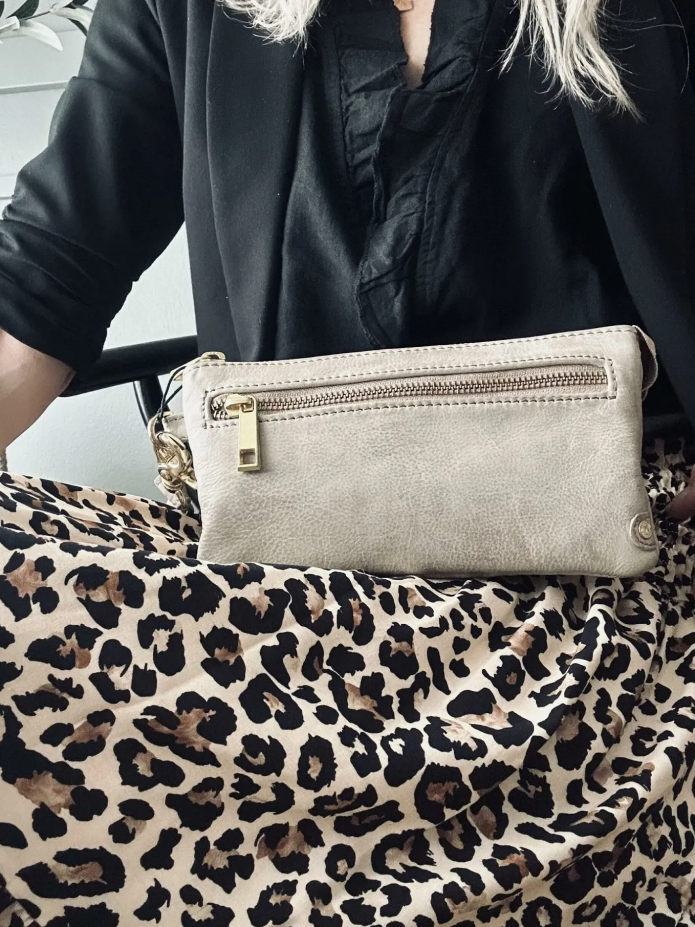 Super skøn clutch / taske med mange muligheder. Uden taskerem er det den perfekte pung til dig der skal have plads til telefon , penge og nøgler.