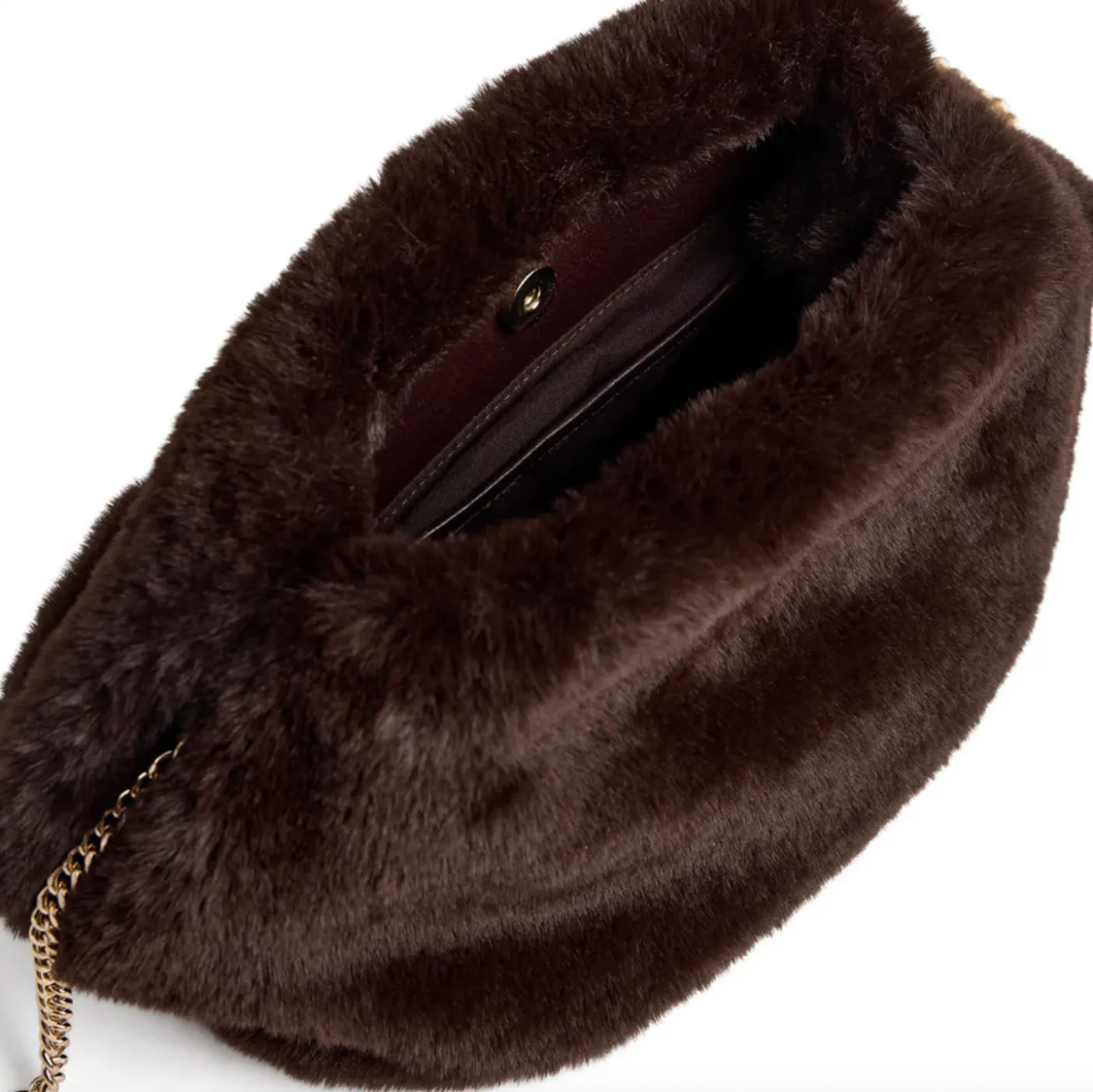 Denne crossover taske er en elegant og moderne tilføjelse til garderoben, og den bløde faux fur kvalitet giver den et unikt og luksuriøst udtryk. Tasken har et feminint og sofistikeret look, som gør den ideel som going-out taske eller til at tilføre et eksklusivt touch til hverdagsoutfittet. Det enkle design kombineret med den pelslignende overflade skaber et iøjnefaldende accessory, der kan bruges sæson efter sæson.