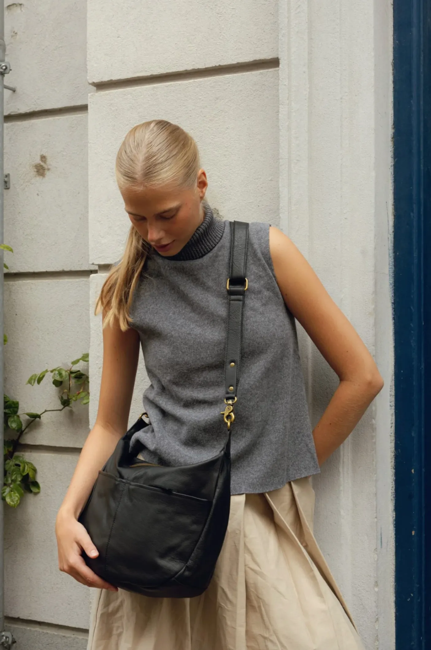 Den har en justerbar rem for en behagelig pasform og to lynlåslommer foran, smart skjult under en diskret designdetalje for et rent look. Trods sin kompakte størrelse tilbyder den et rummeligt hovedrum, hvilket gør den både praktisk og elegant – perfekt til hverdagsbrug.