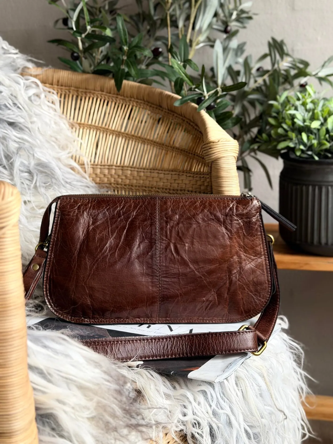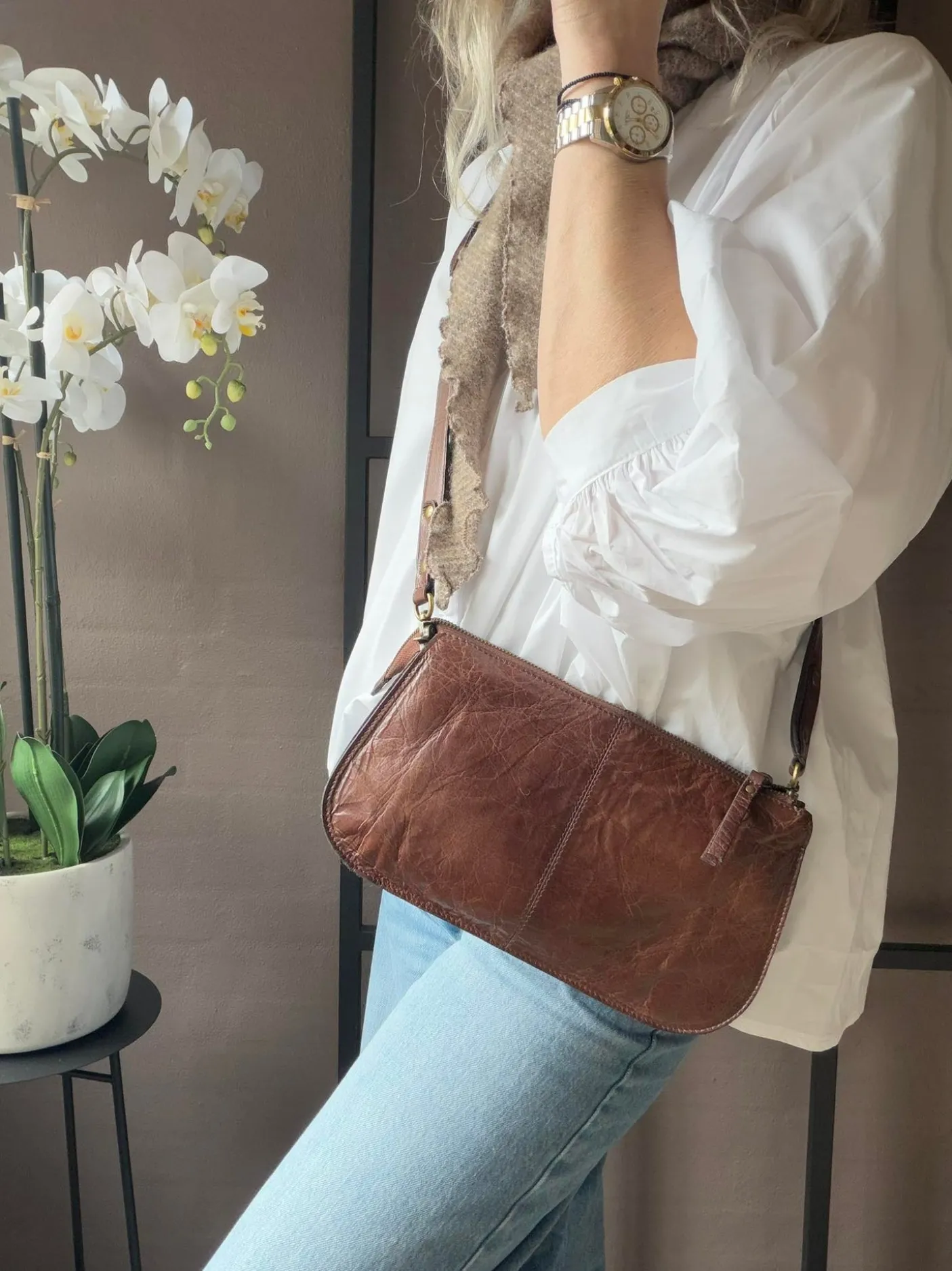 Alsidig og elegant taske, der kan bæres som clutch eller som crossover-taske takket være den aftagelige rem og den medfølgende crossover-rem.