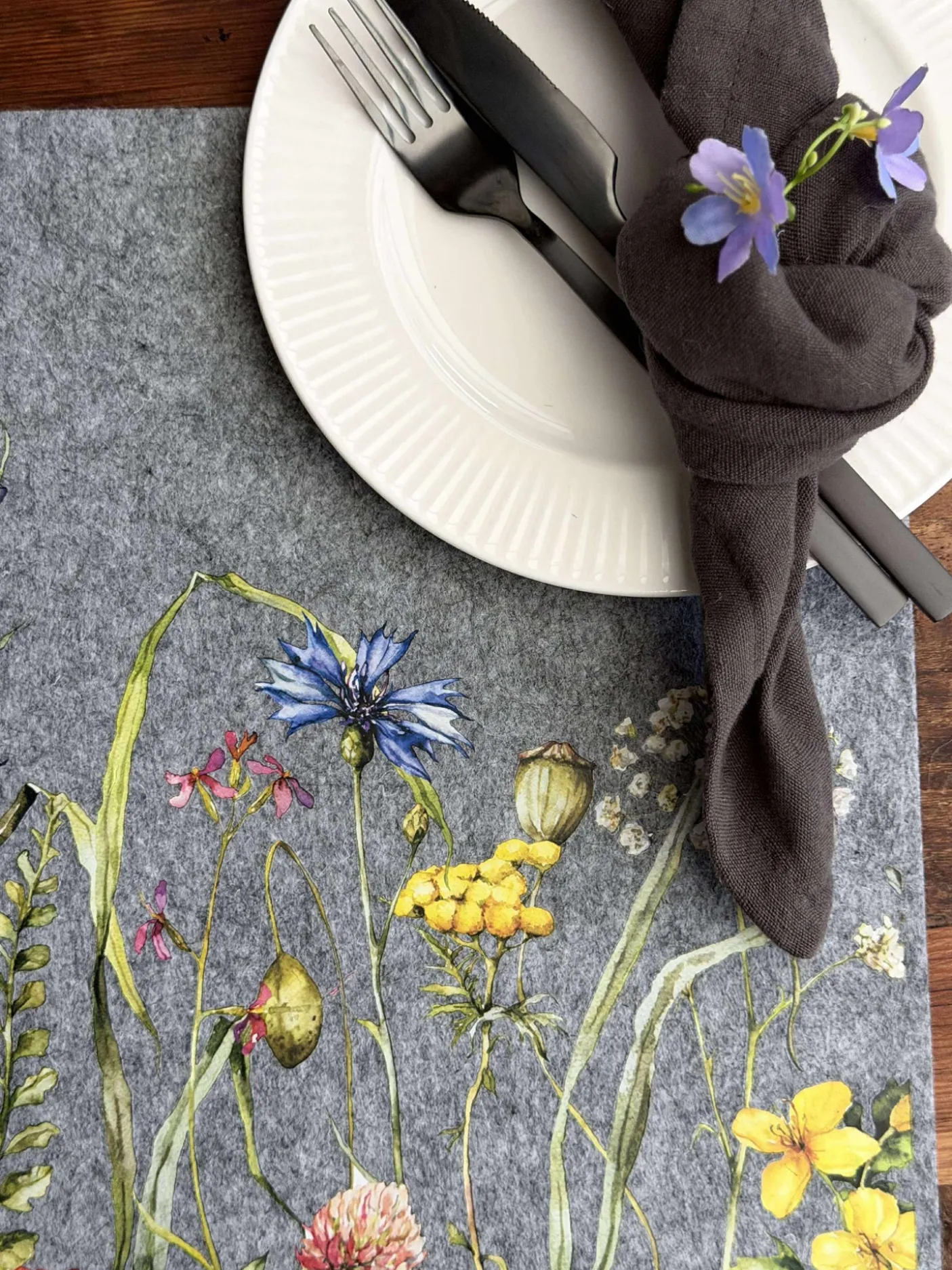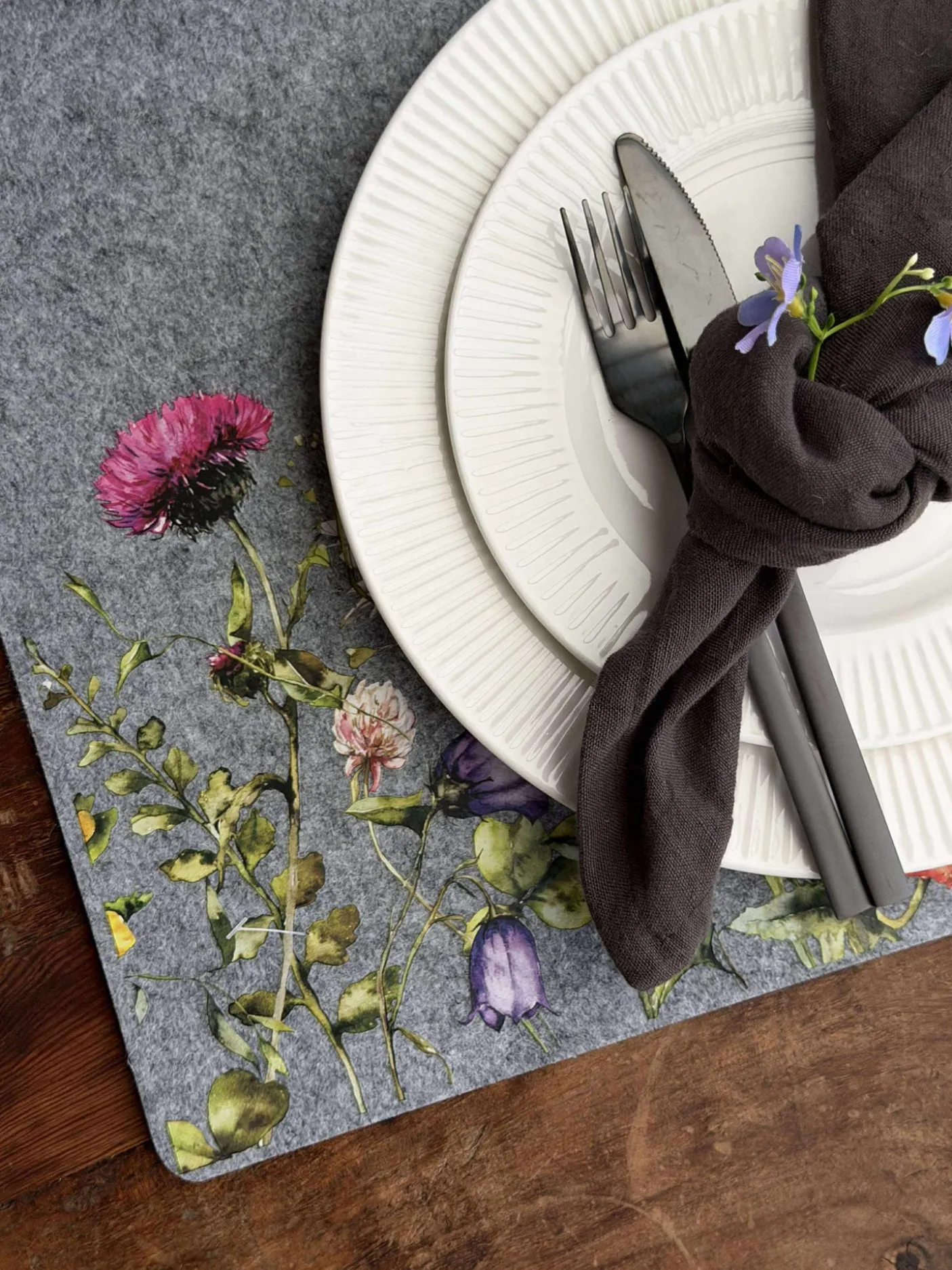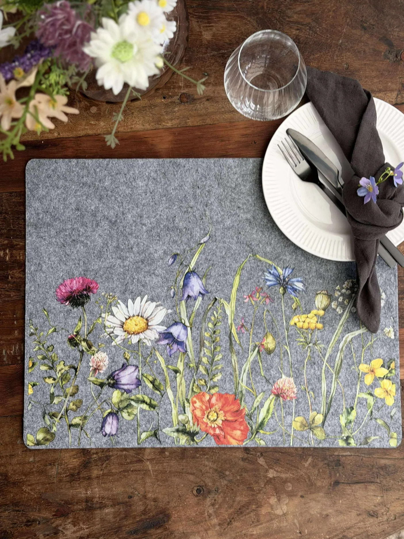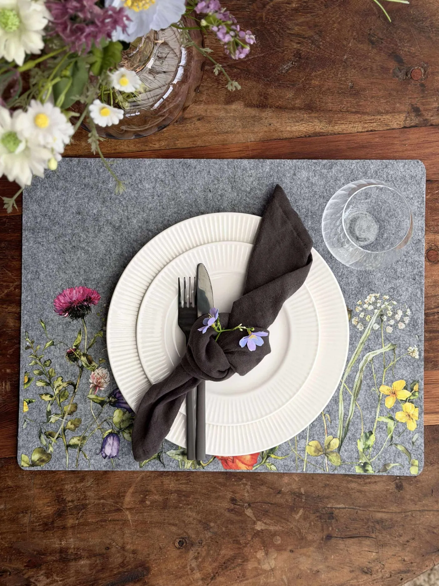 Dækkeserviet i filt.