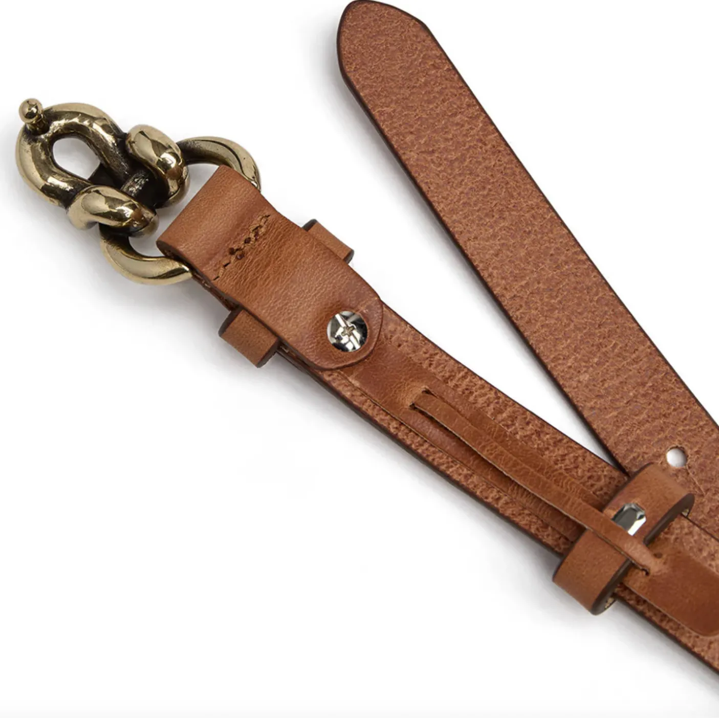 Bæltets smalle form gør det velegnet, når du ønsker en diskret detalje, der stadig fremhæver looket med sit fine spænde.