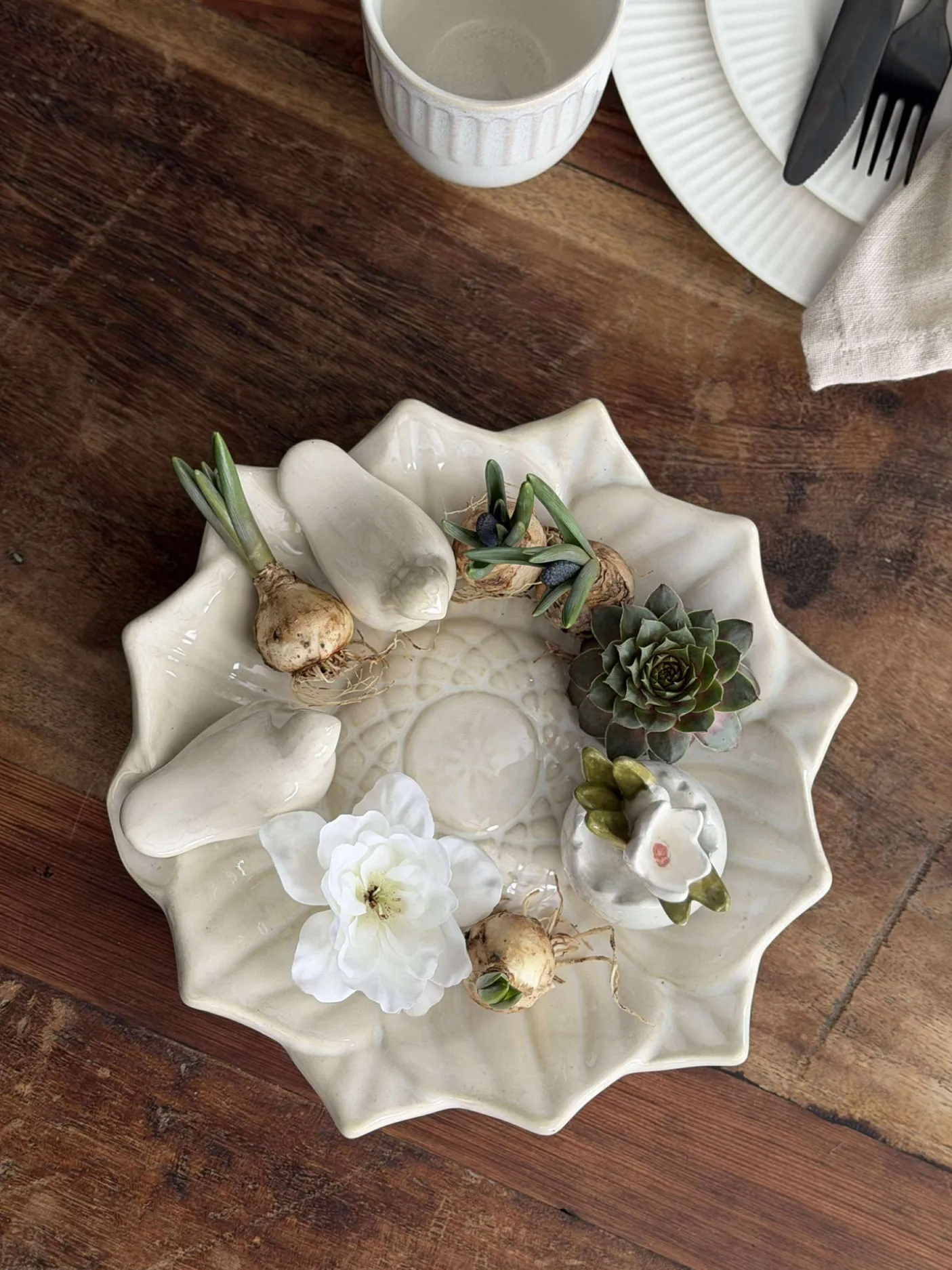 Super fint fad med fugle i keramik.