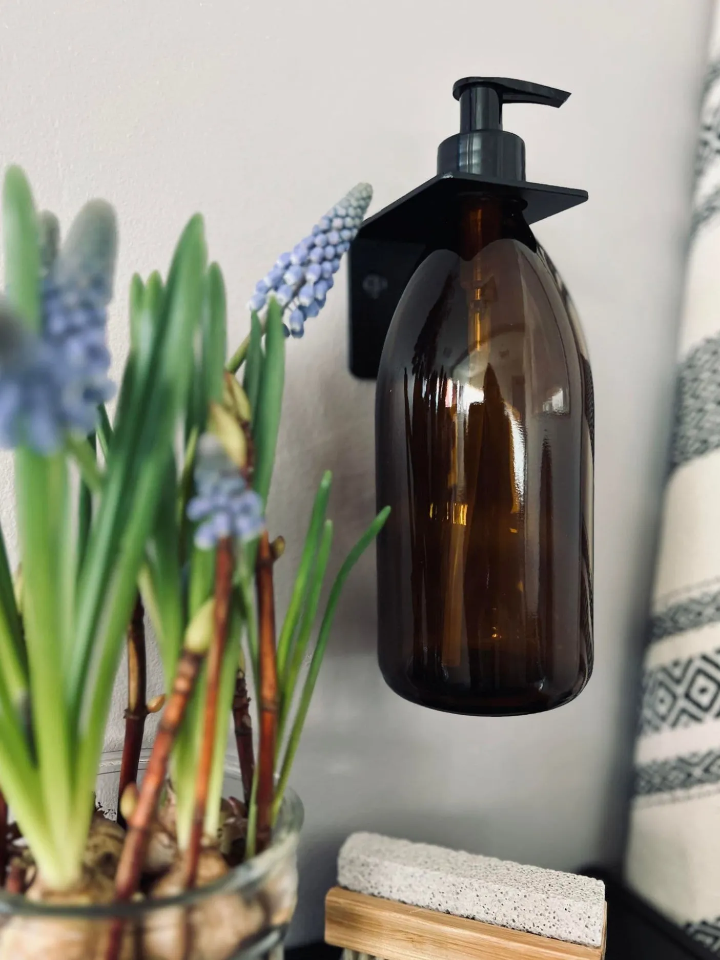 Væghængt holder til flaske / dispenser.