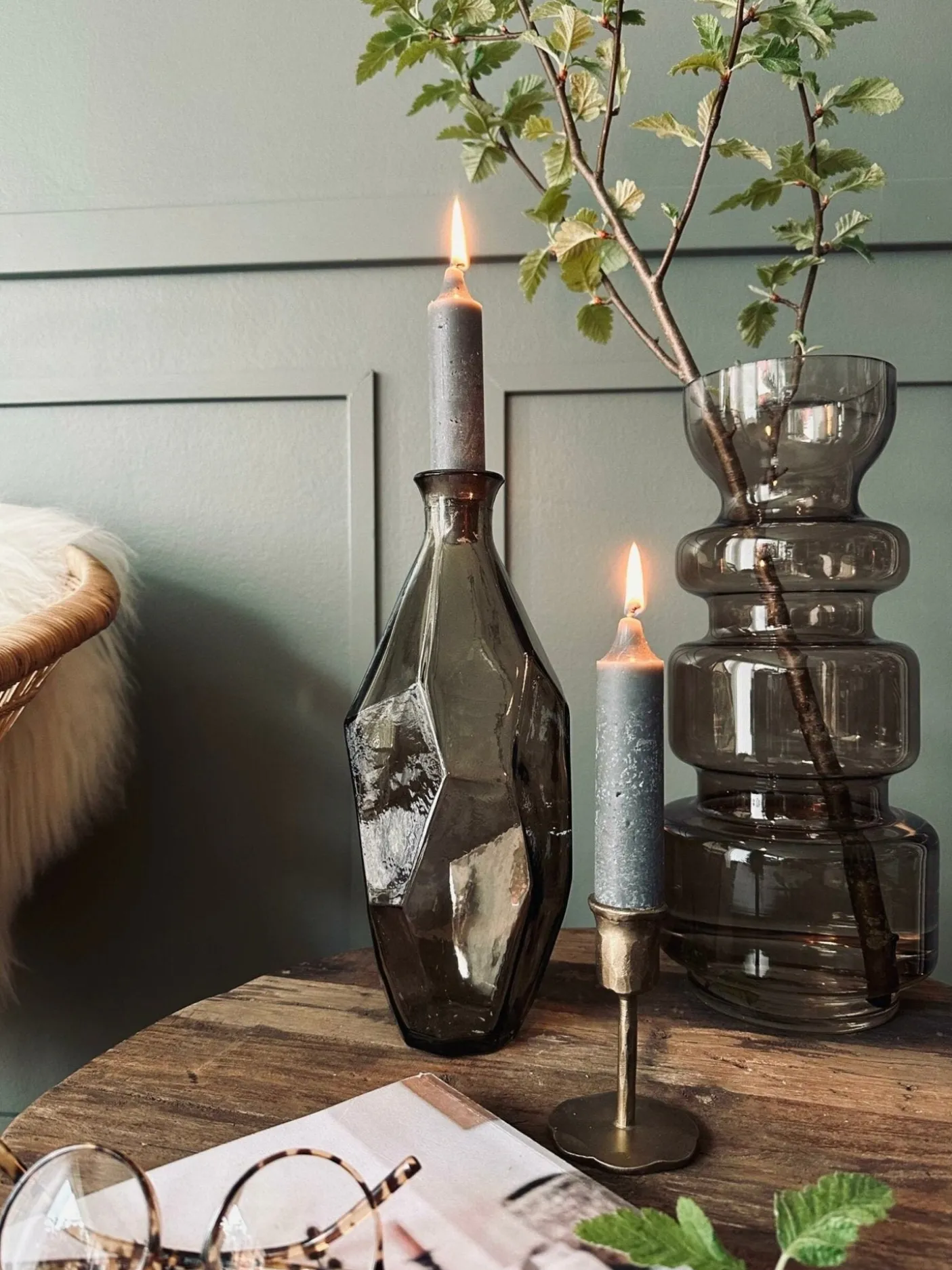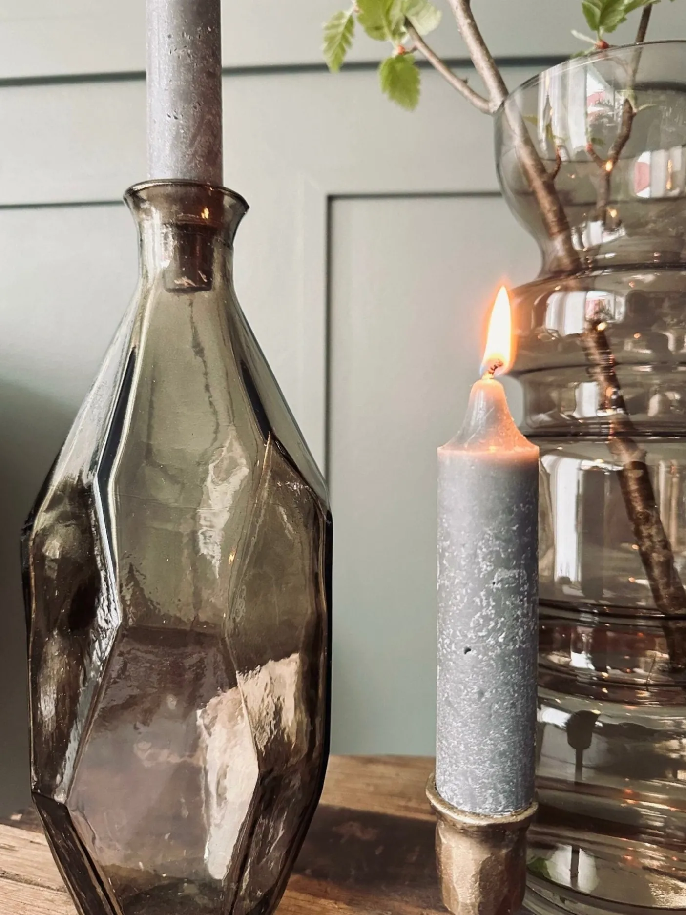 Smarte lys i rustik grå, der passer i bunden til en flaske.