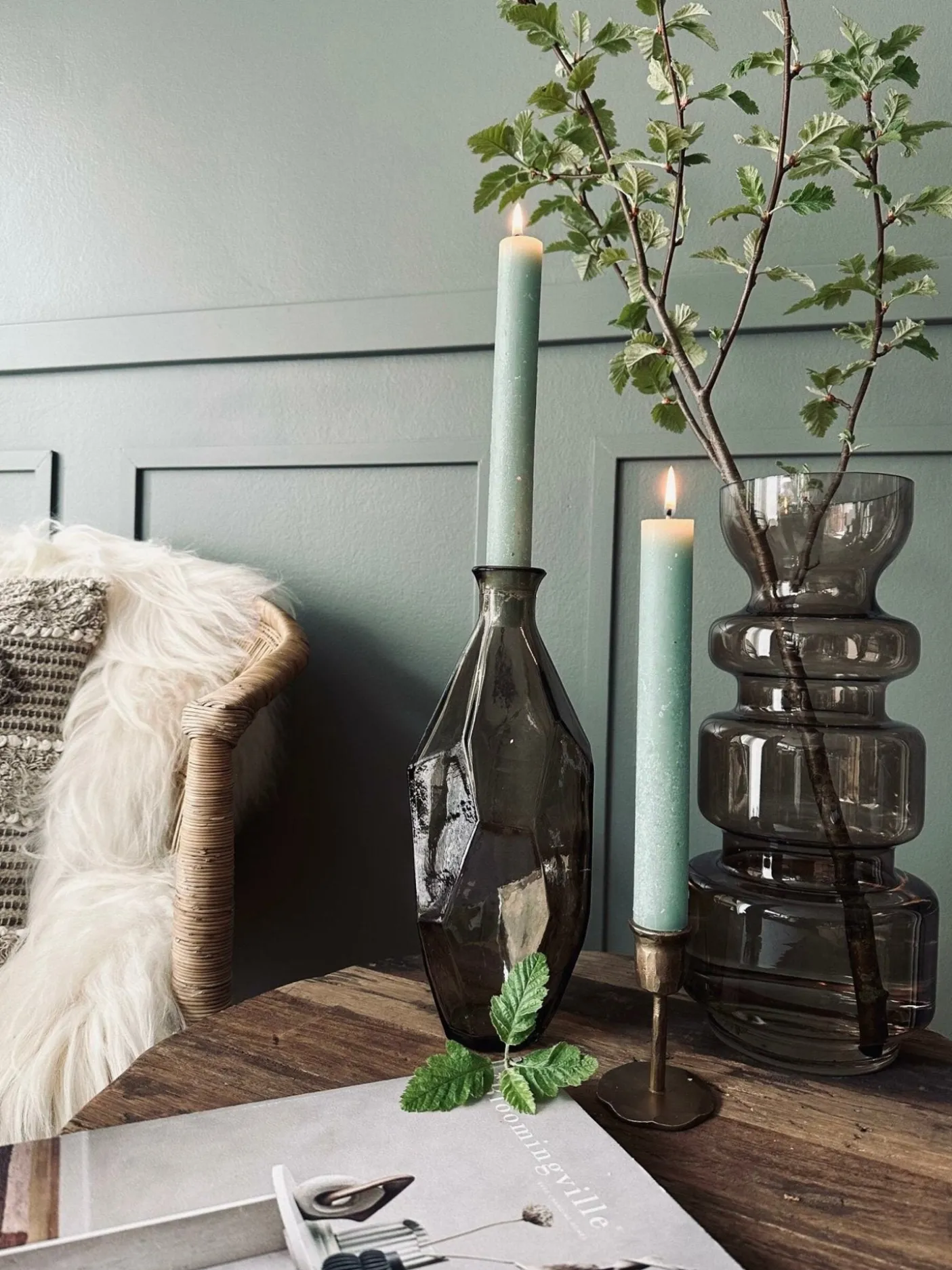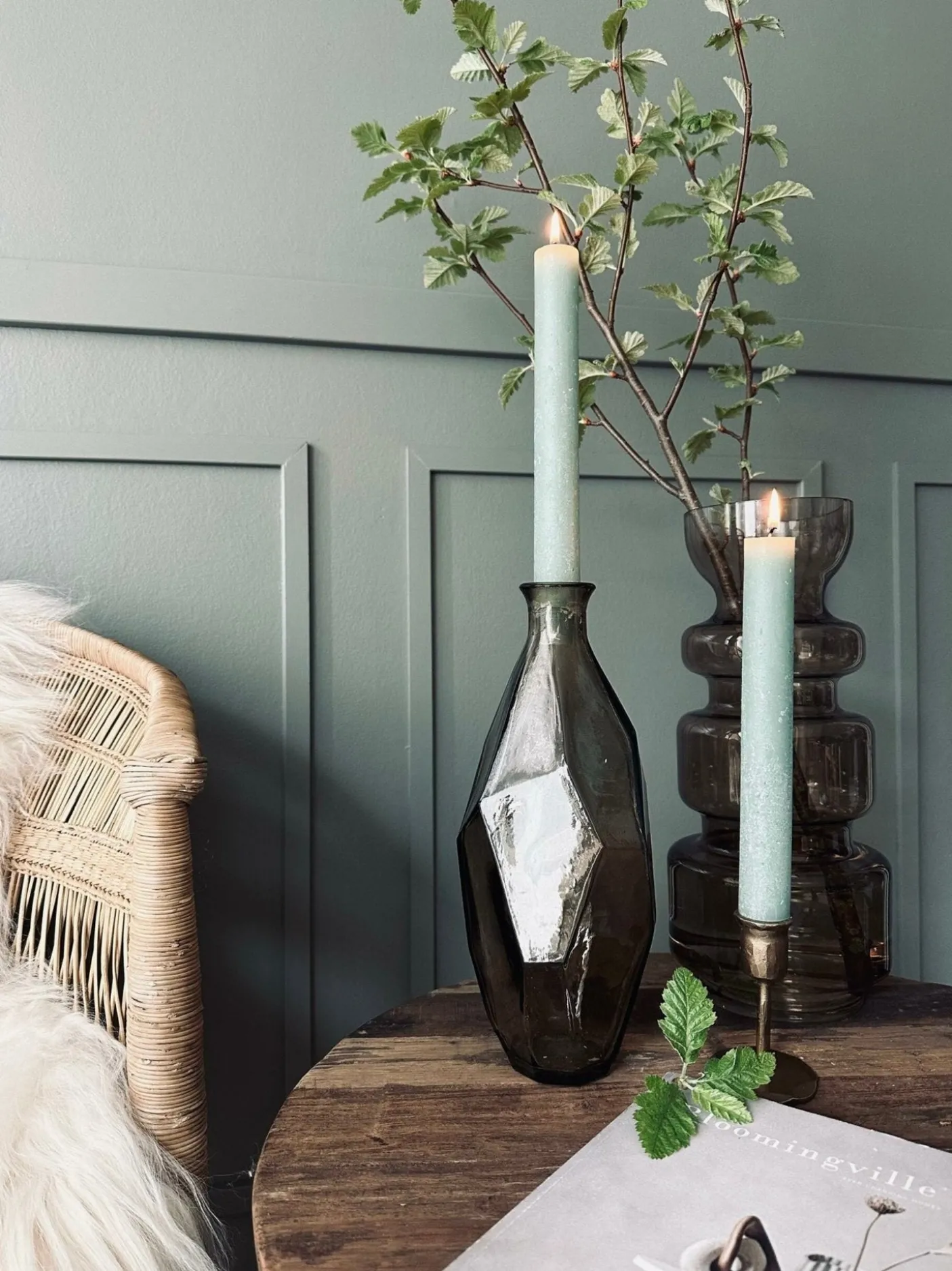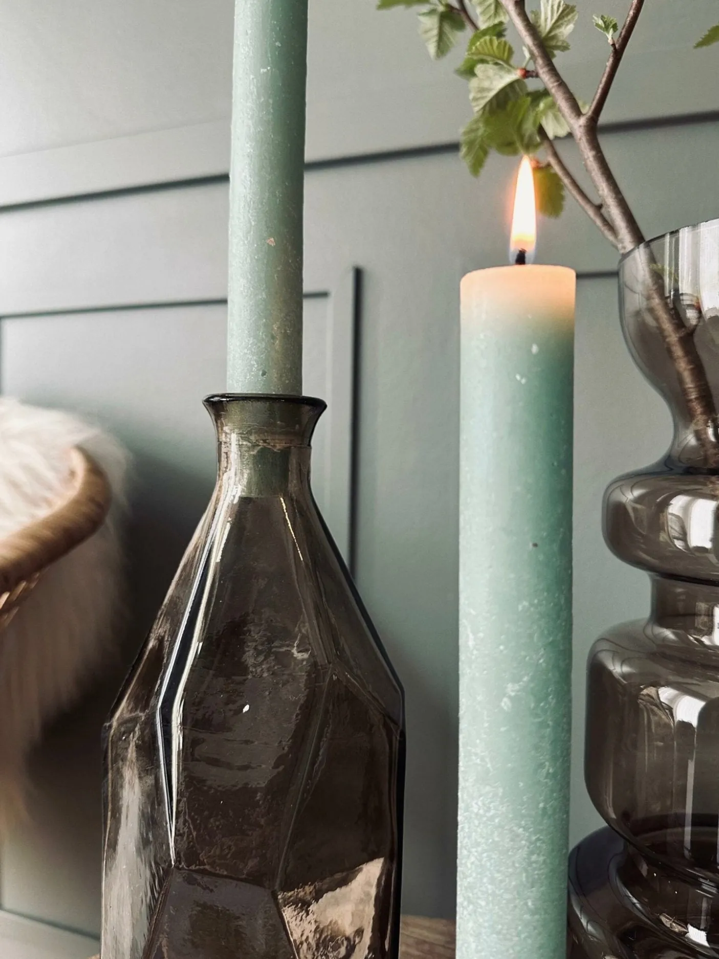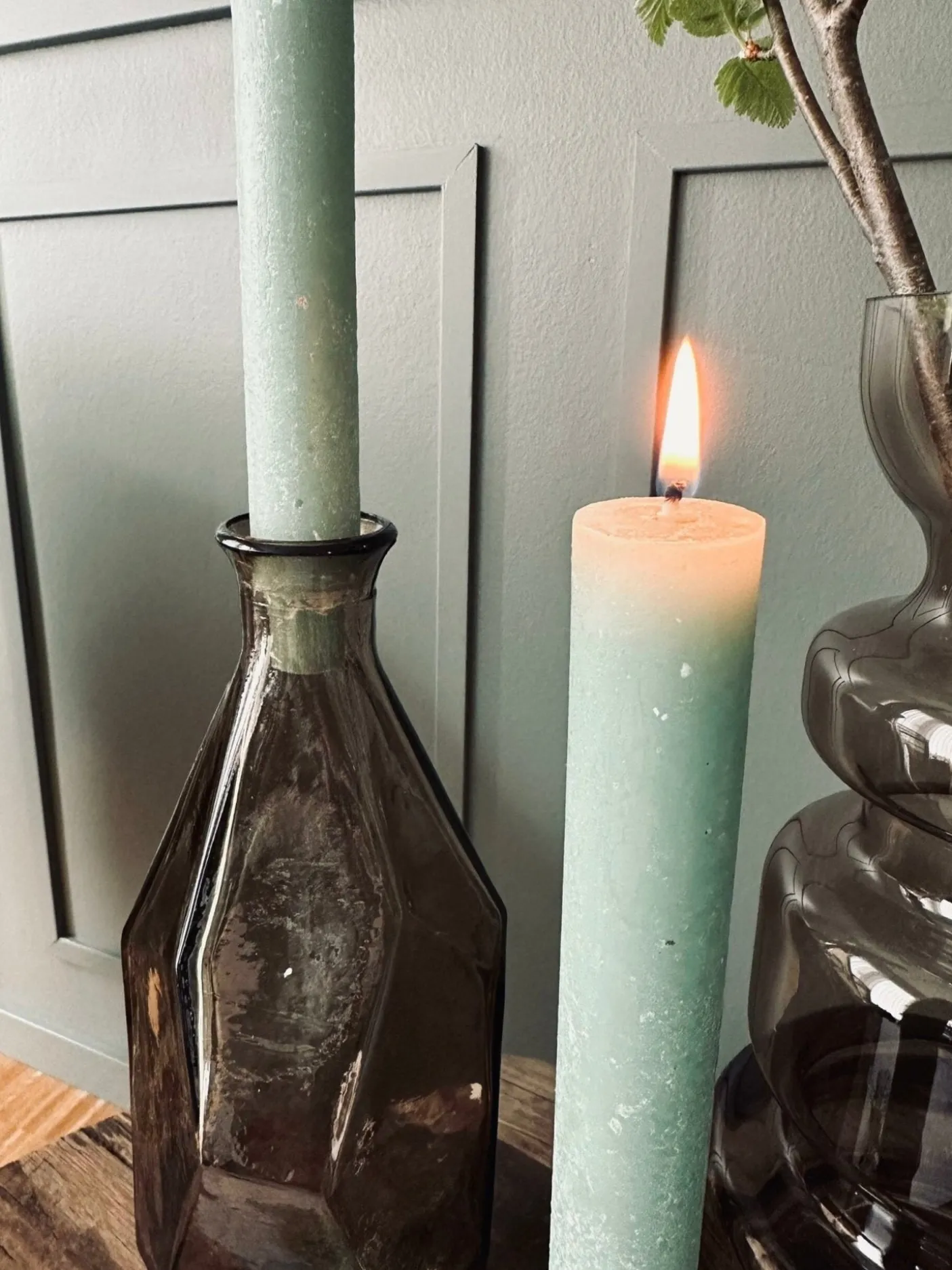 Smarte lys i rustik mint, der passer i bunden til en flaske.