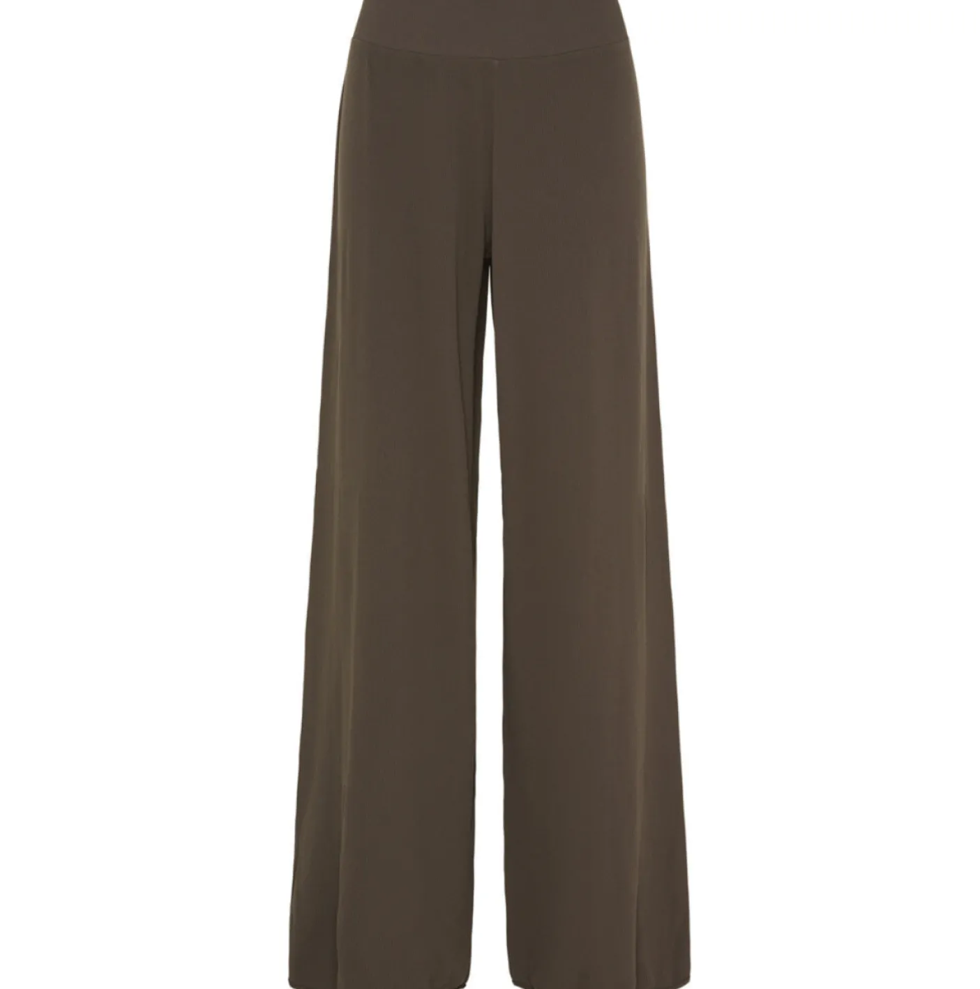 Materiale: 92% poliammide, 8% elastan. Ribkvaliteten giver en tydelig lodret struktur og et afdæmpet, tekstureret udtryk, mens buksernes høje talje og brede ben former silhuetten uden stive kanter.