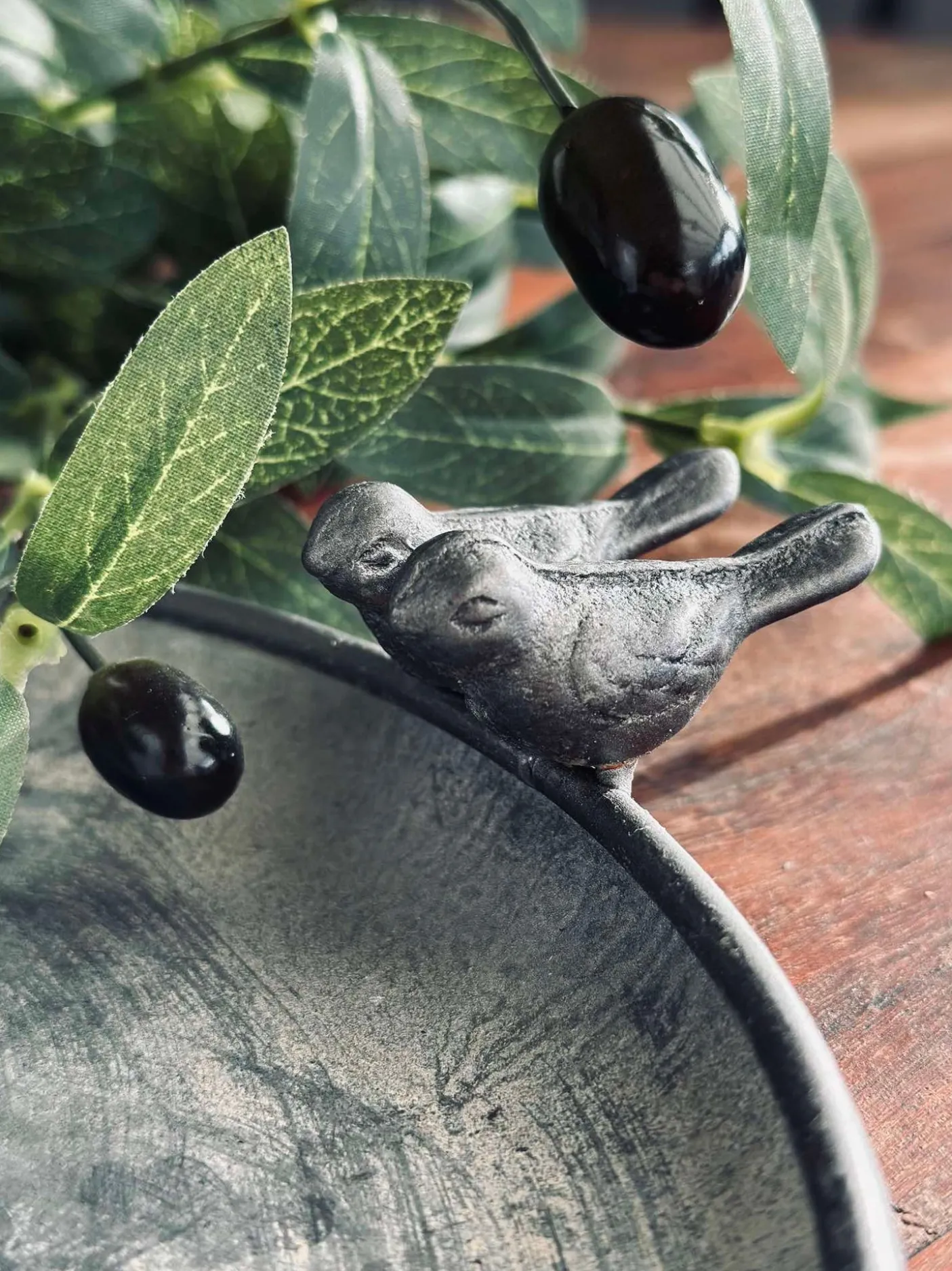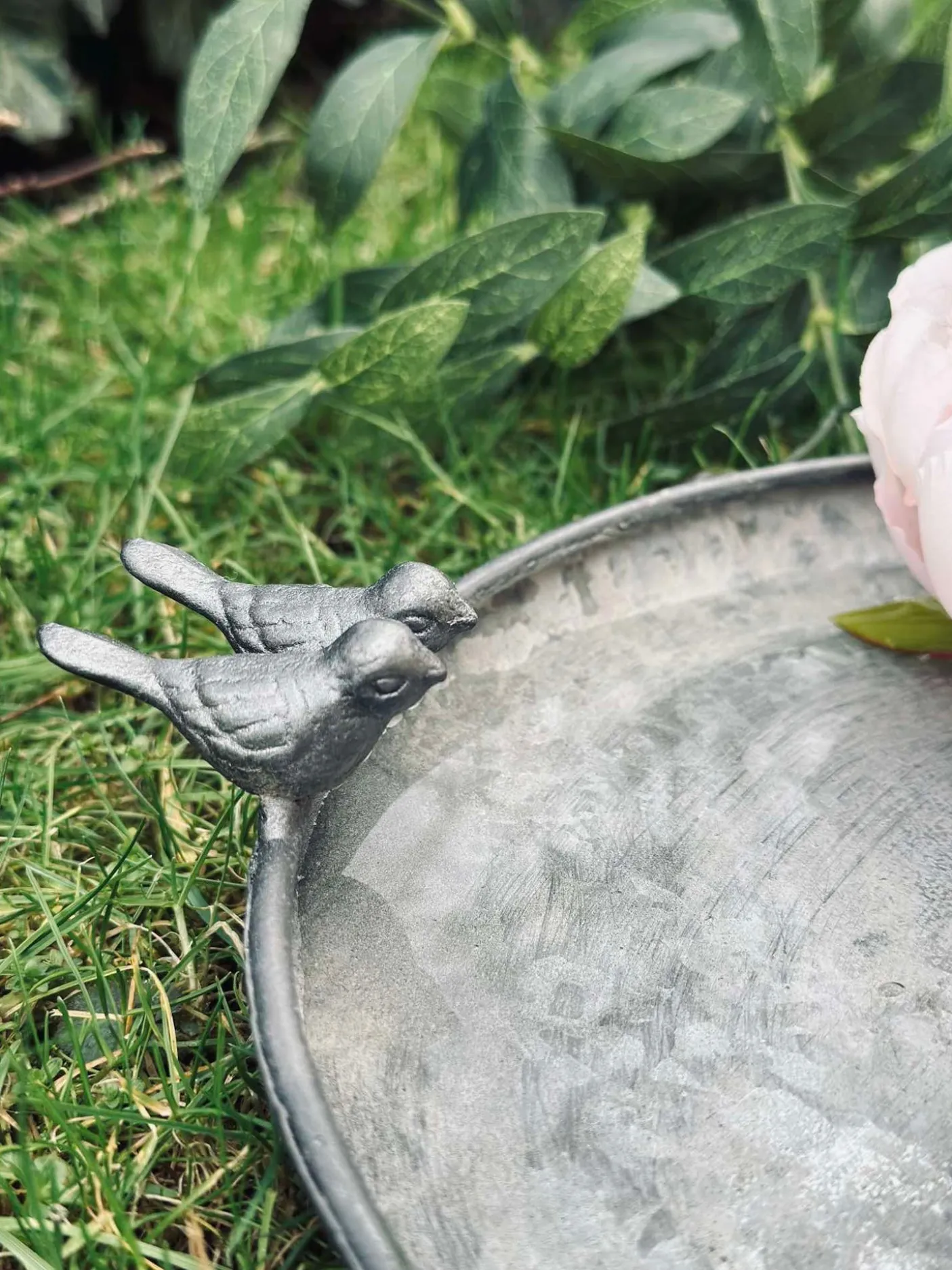 Fuglebad i zink. Fin detalje på kanten med små fugle.