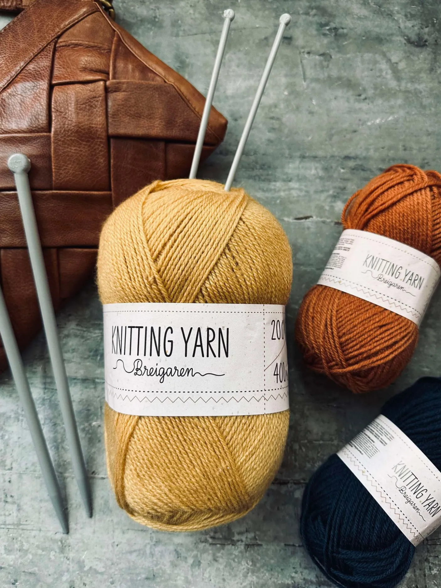 Strikkegarn i polyester.