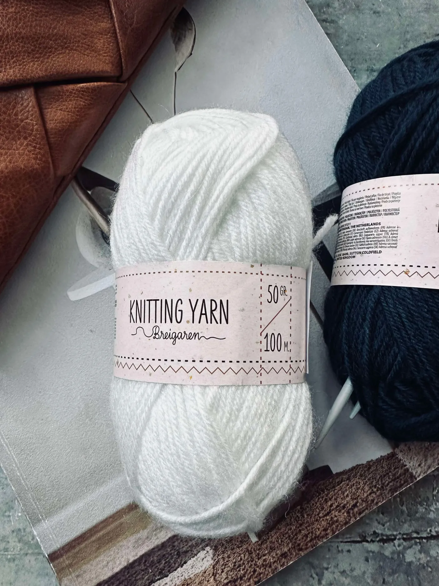 Strikkegarn i polyester.