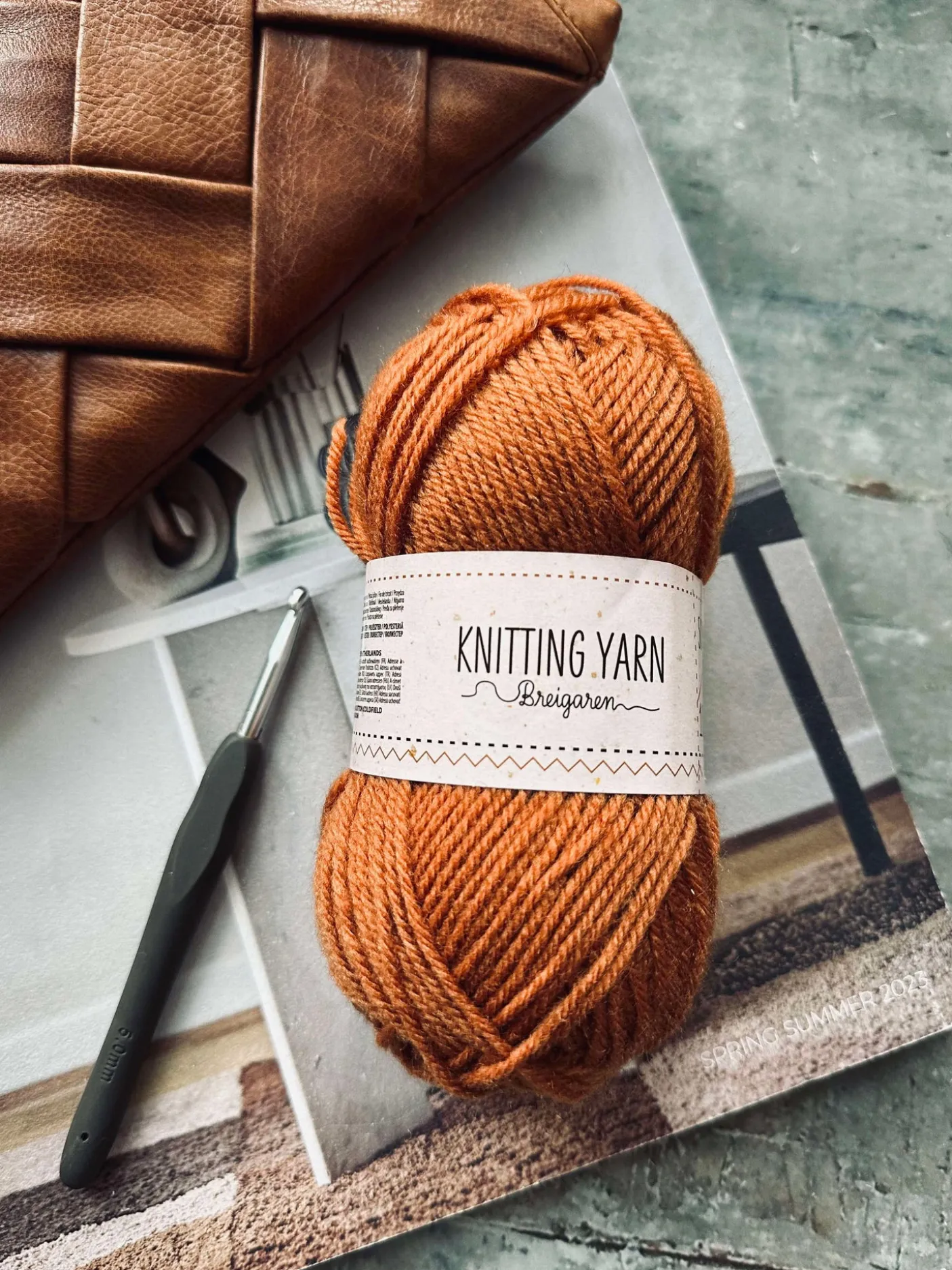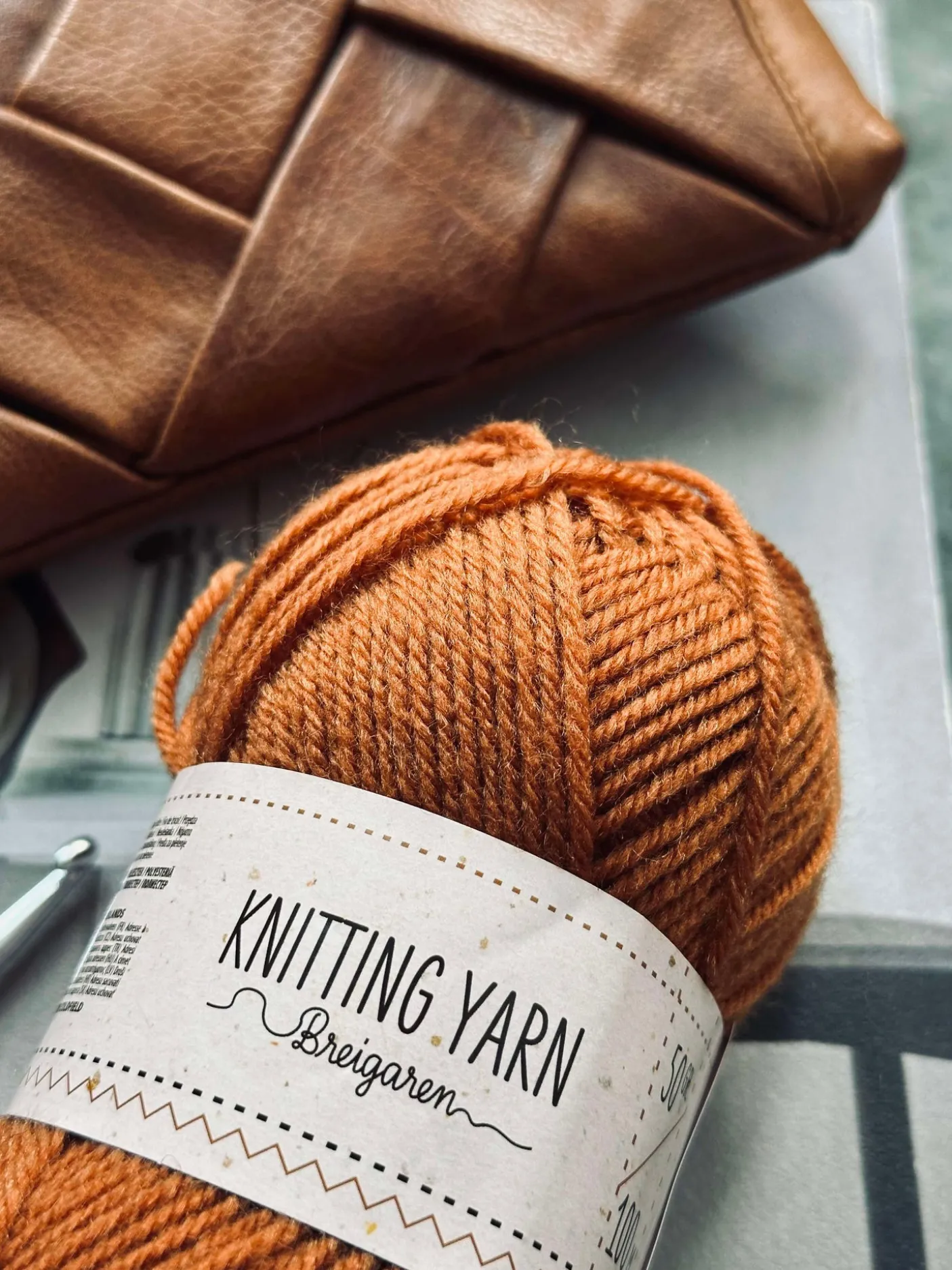 Strikkegarn i polyester.