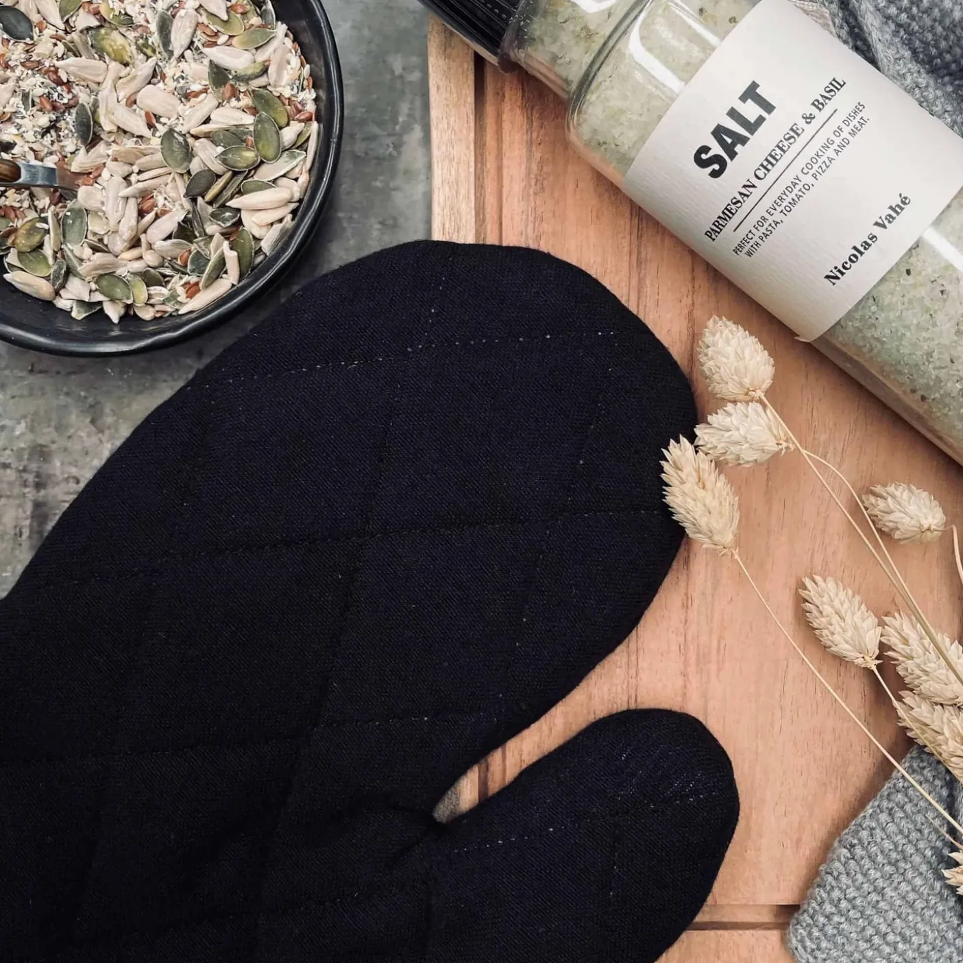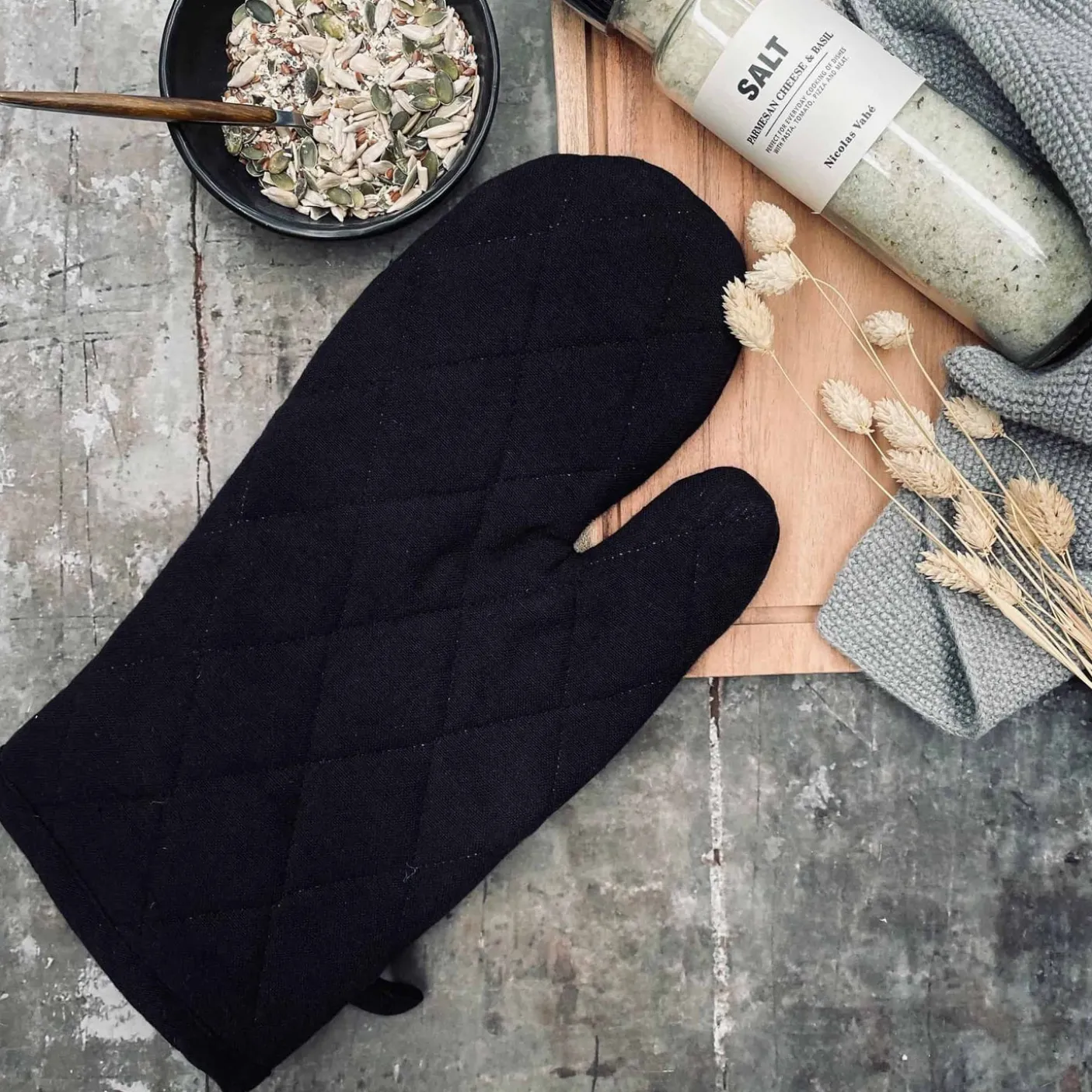 Lækker Grill handske i sort quilt.