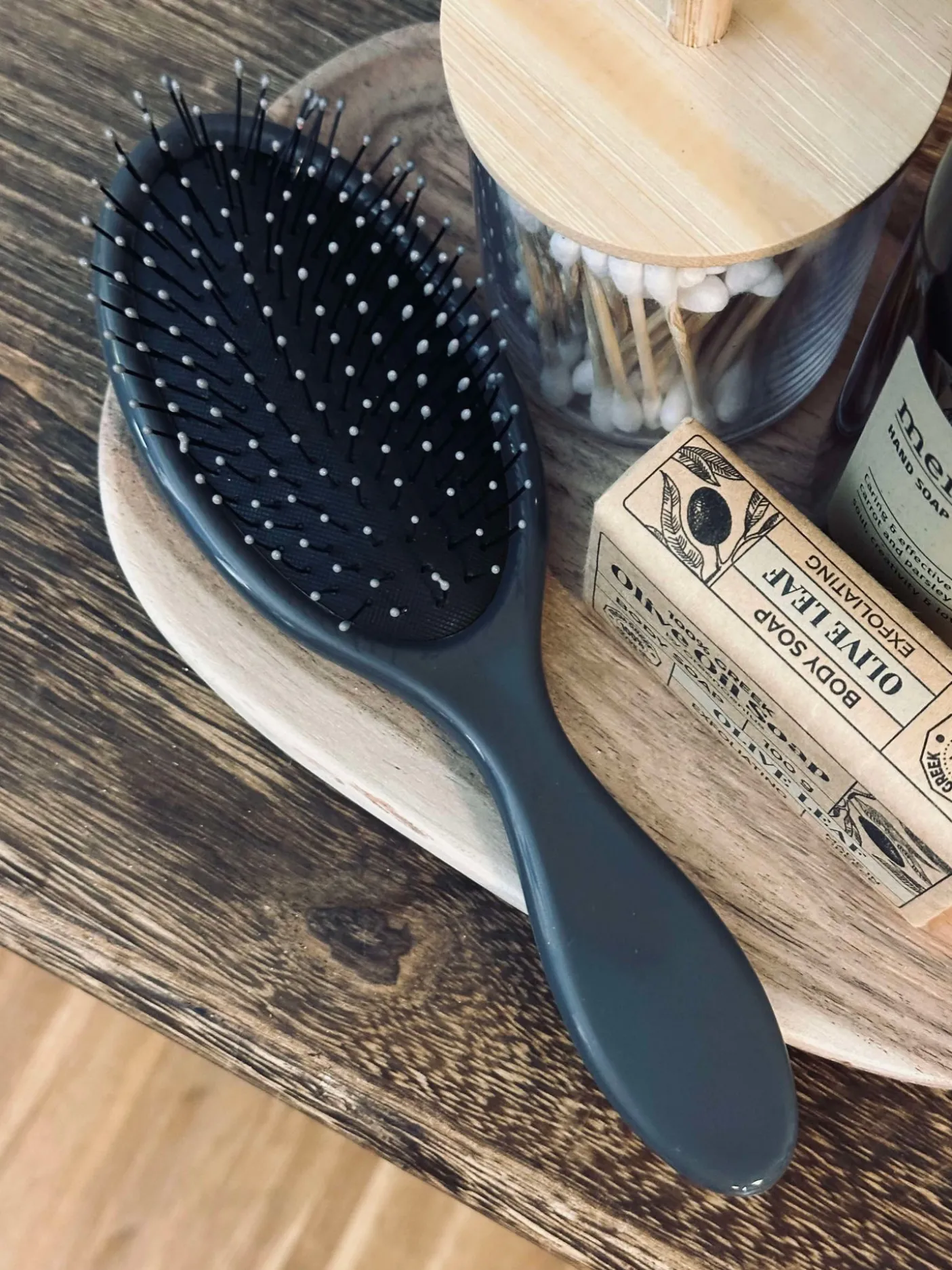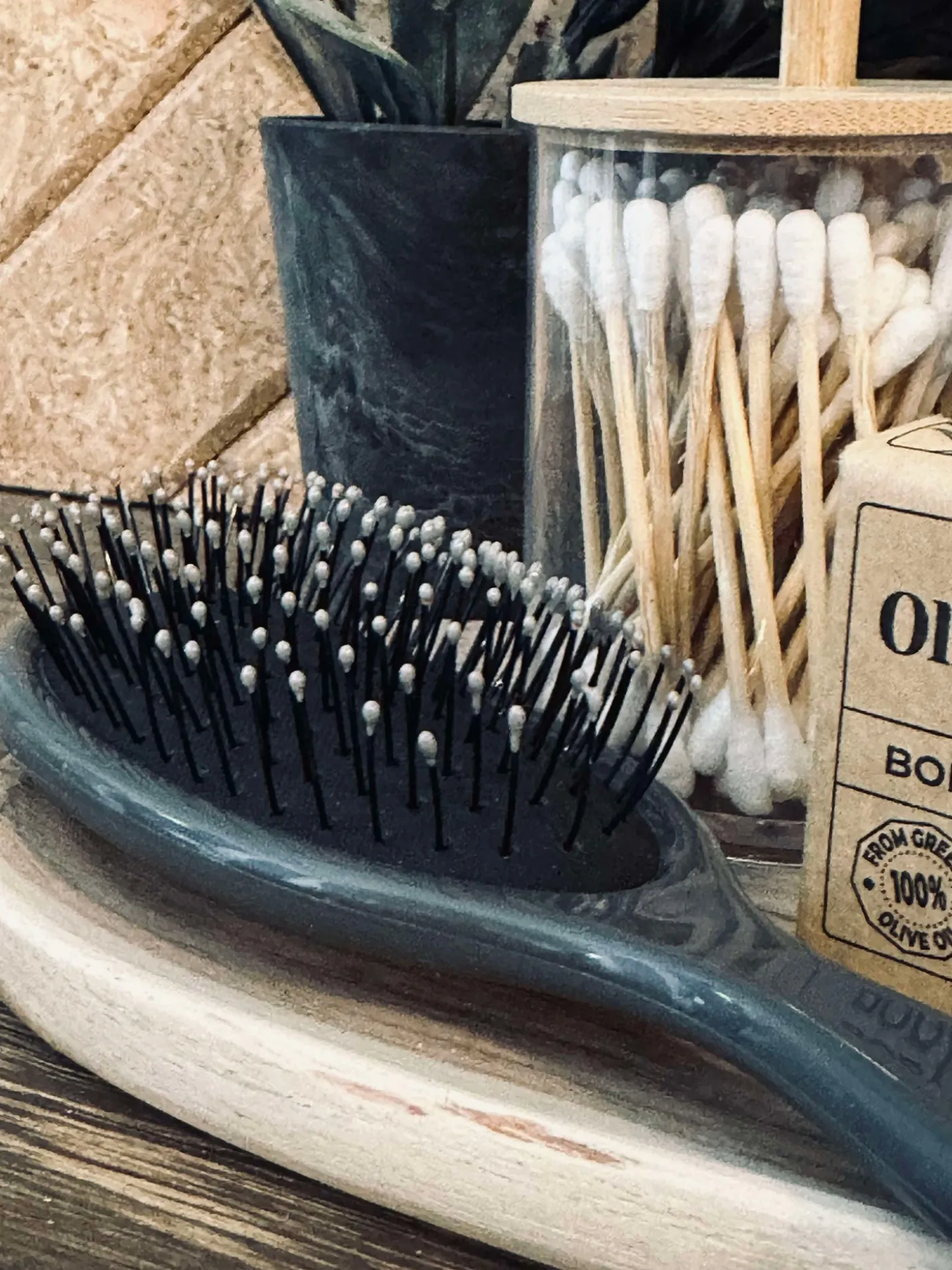 Hårbørste Alma Dark grey er en enkel hårbørste i en mørkegrå tone med et rent, ensfarvet udtryk. Den er lavet i plast og passer ind i et roligt og minimalistisk badeværelsesunivers, hvor funktion og look gerne må gå hånd i hånd.