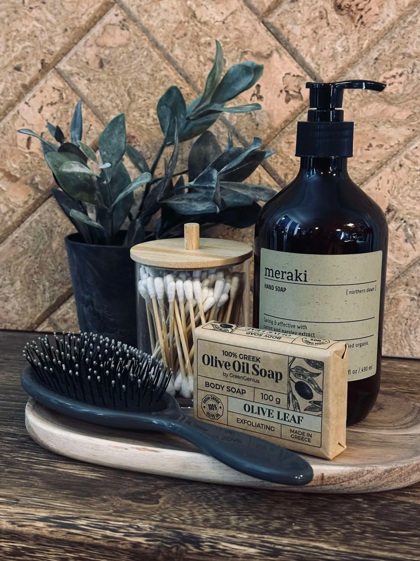 Den neutrale grå farve gør børsten nem at matche med øvrige accessories på badeværelset, uanset om du foretrækker lyse eller mørke nuancer.