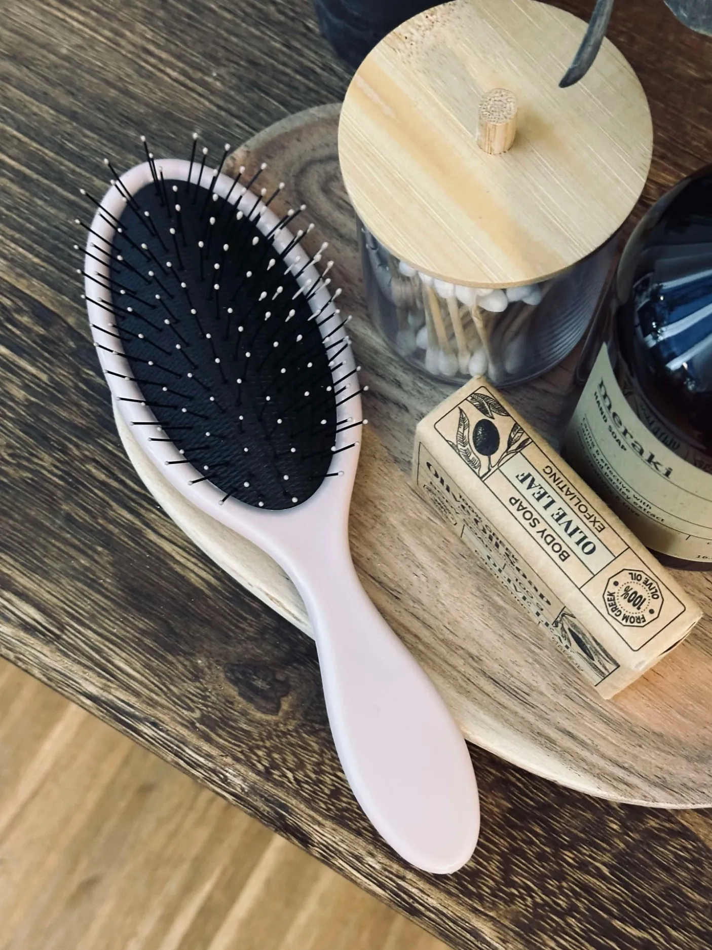 Børsten er fremstillet i plastic og har et roligt, ensfarvet look i rosa.