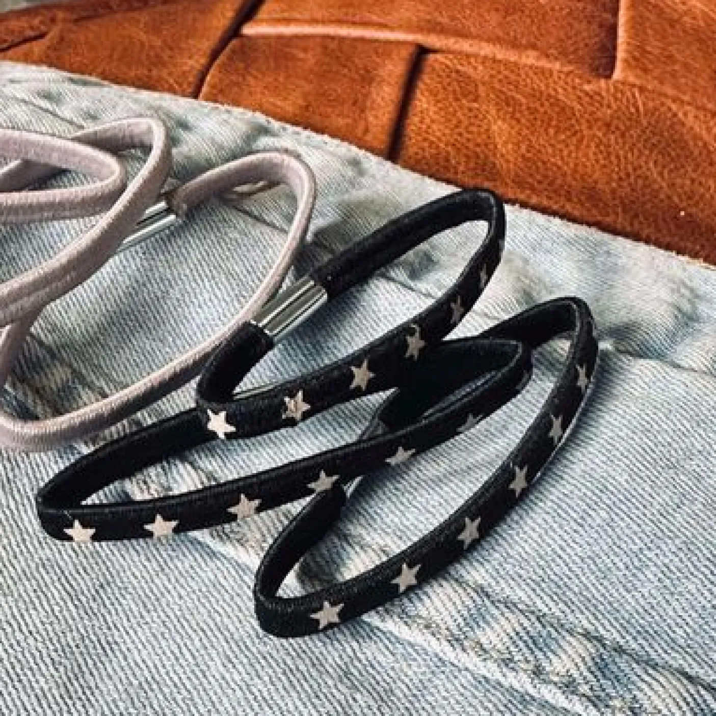 Hårelastikker Black / Grey Star er flotte hårelastikker i sort med stjerneprint, der giver et dekorativt twist til en enkel frisure. De er lavet i polyester og er nemme at have med i tasken til hurtige håropsætninger i hverdagen.