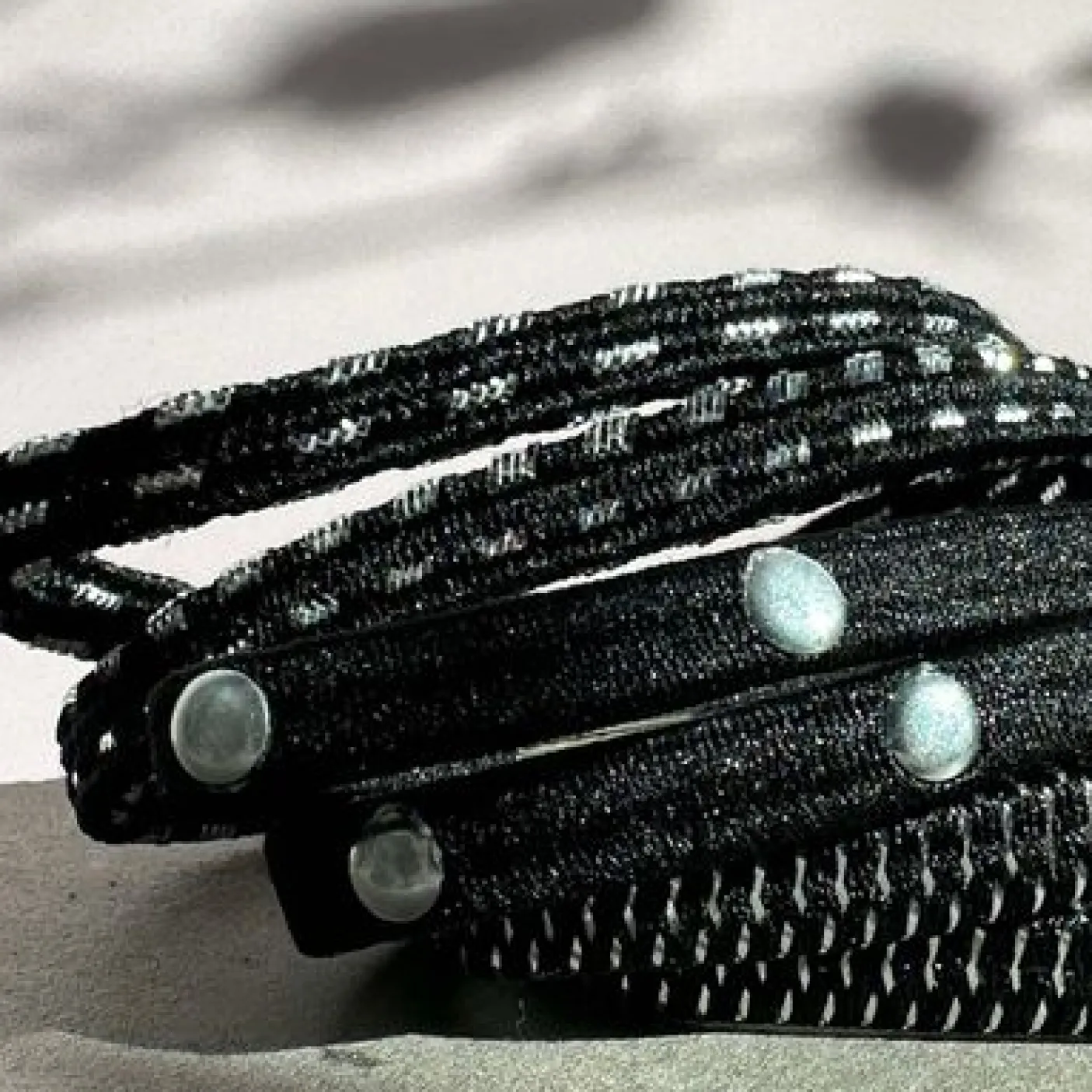 Flotte hårelastikker i sort med forskellige sølvdetaljer, der giver et roligt og afdæmpet udtryk i håret. Elastikkerne er i onesize, så de er nemme at bruge, uanset om du samler håret hurtigt eller sætter det op mere stramt.