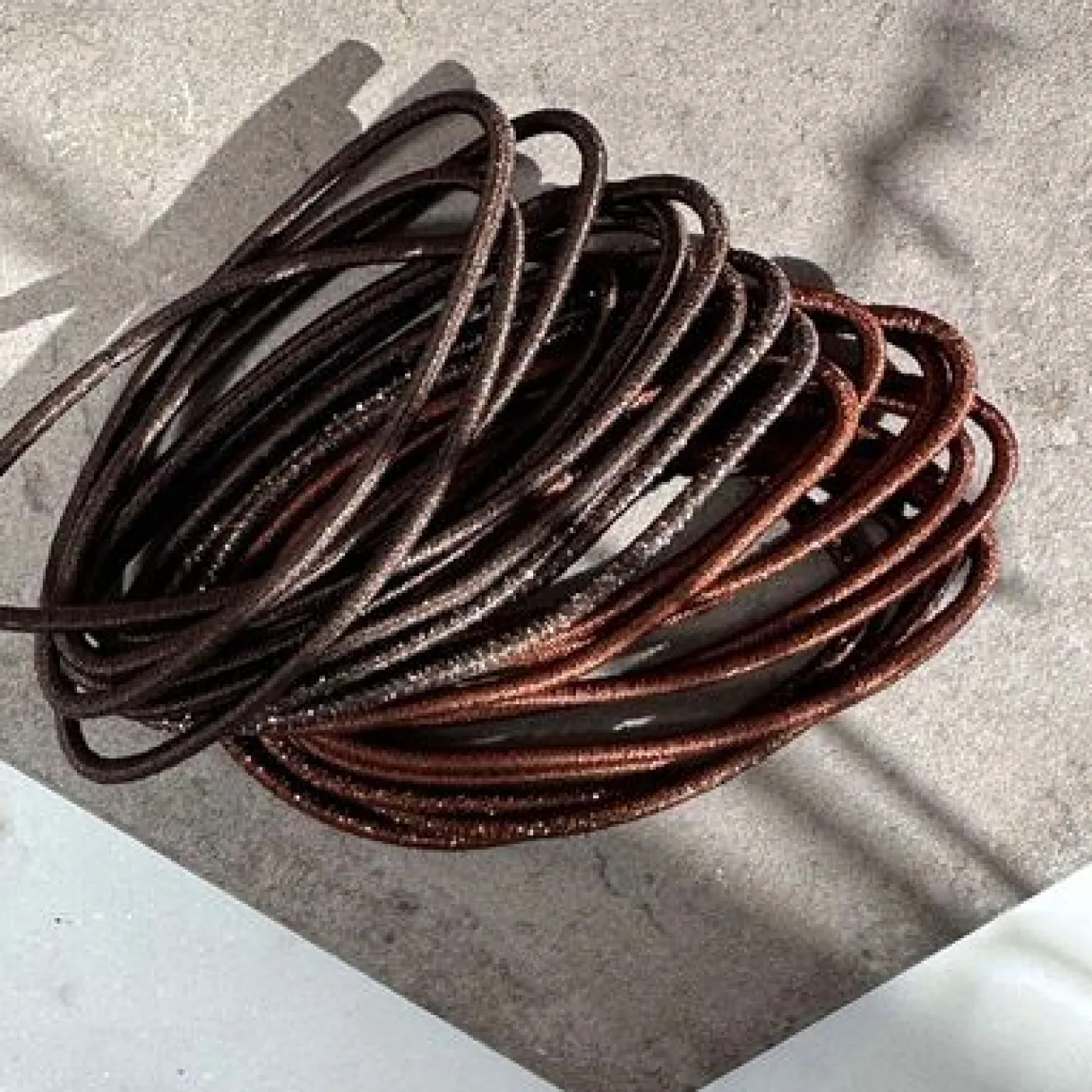 Super fine hårelastikker i brune nuancer – både med og uden glitter. De fungerer til opsætning af håret og som en lille stylingdetalje på håndleddet, når de ikke er i brug.