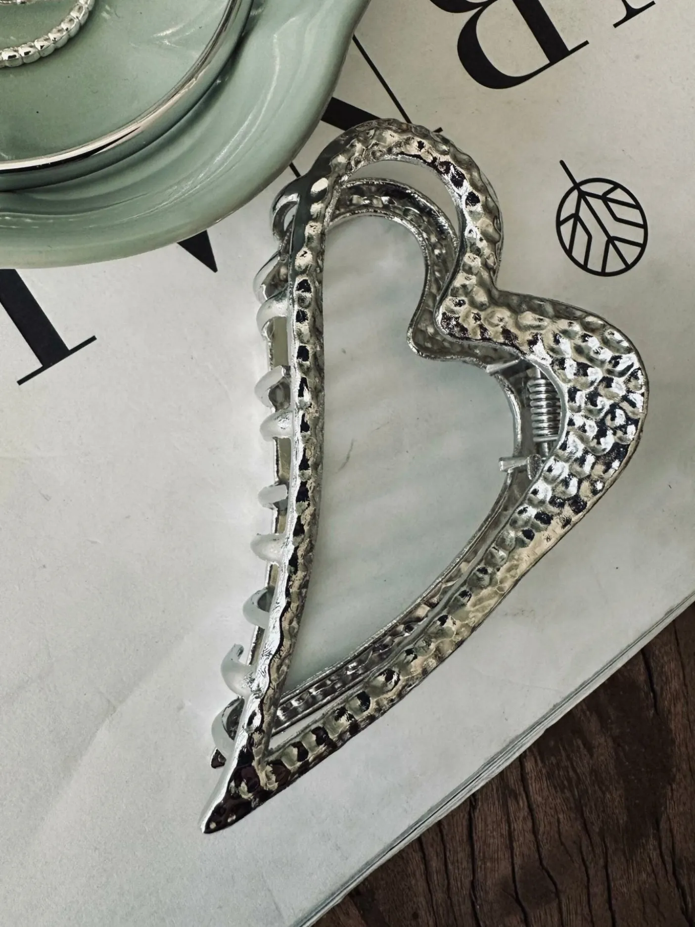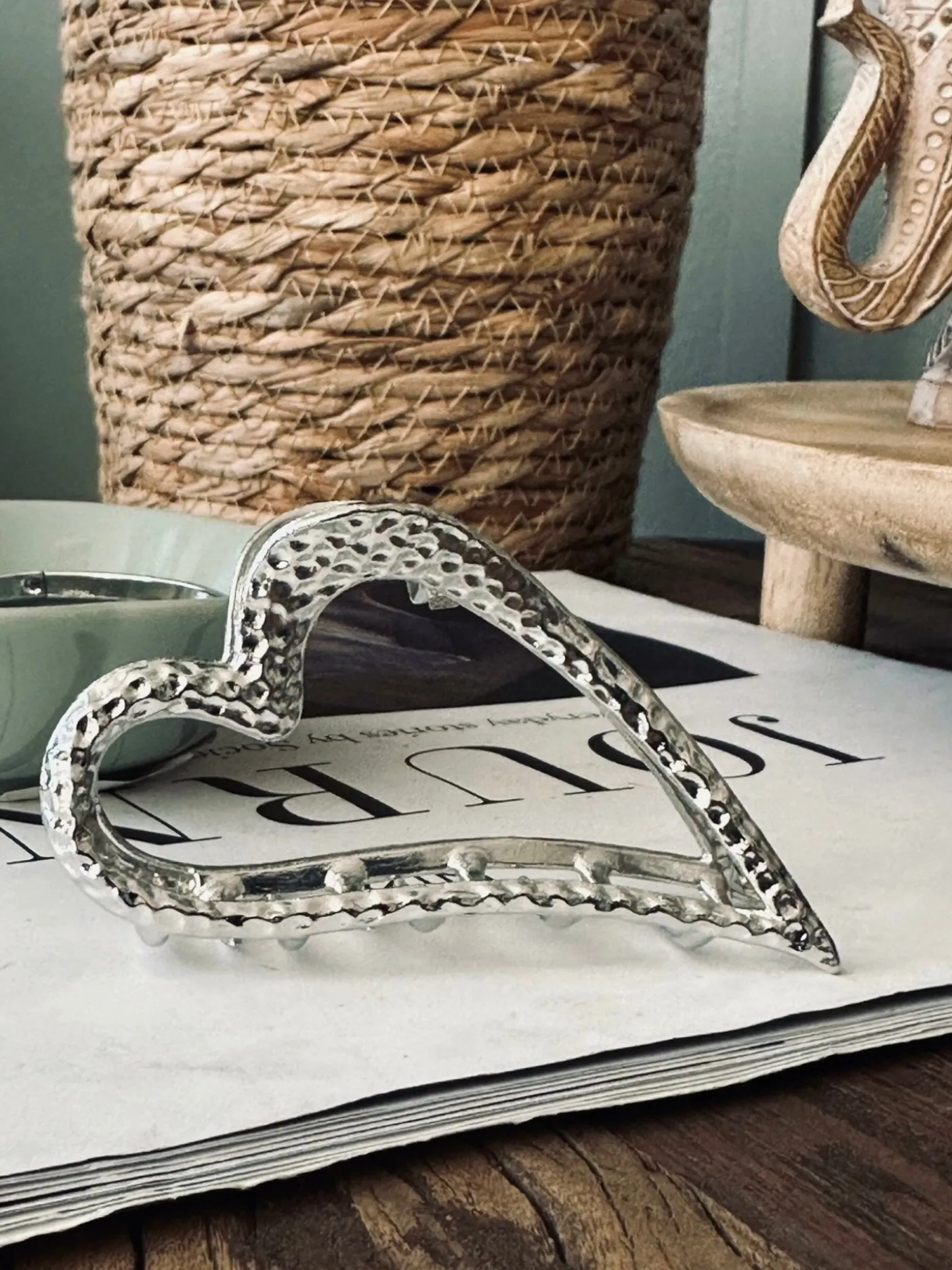 Hårklemme – Silver heart er en hårklemme i metal i en sølvfarvet variant. Den er skabt til at samle og sætte håret og har et diskret, struktureret udtryk, der giver et roligt og stilrent look.