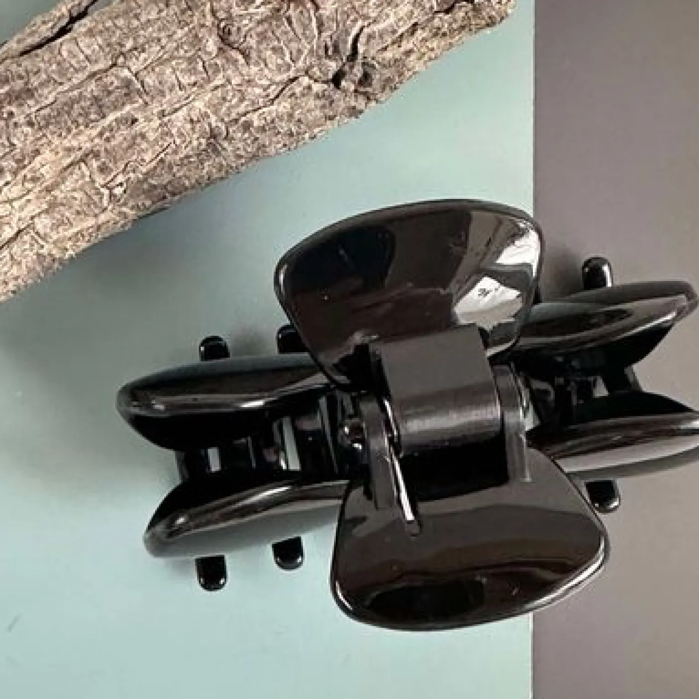Hårklemme med sløjfe i sort plast med shiny overflade og ensfarvet finish.