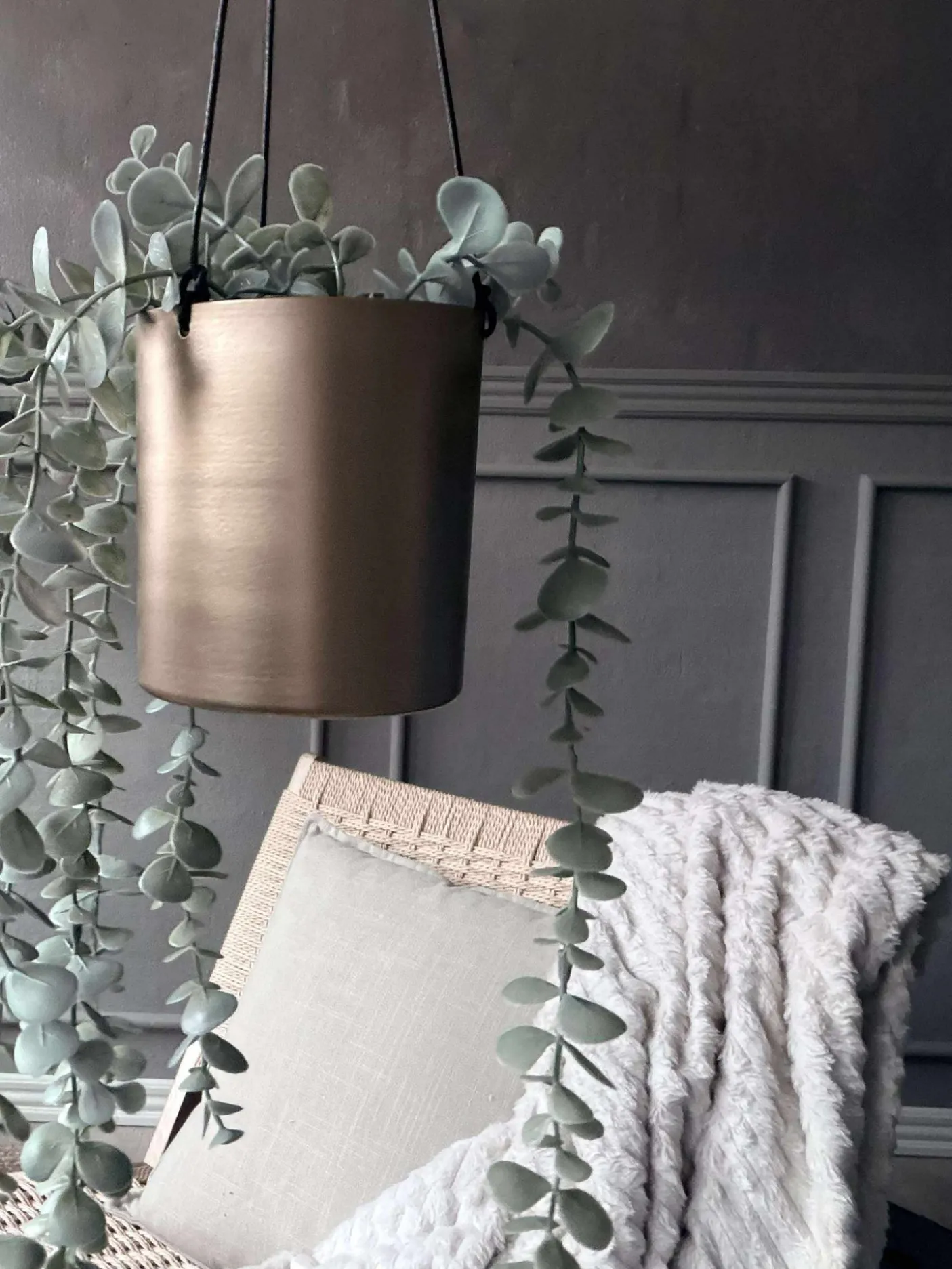 Super flot hængepotte i messing look.