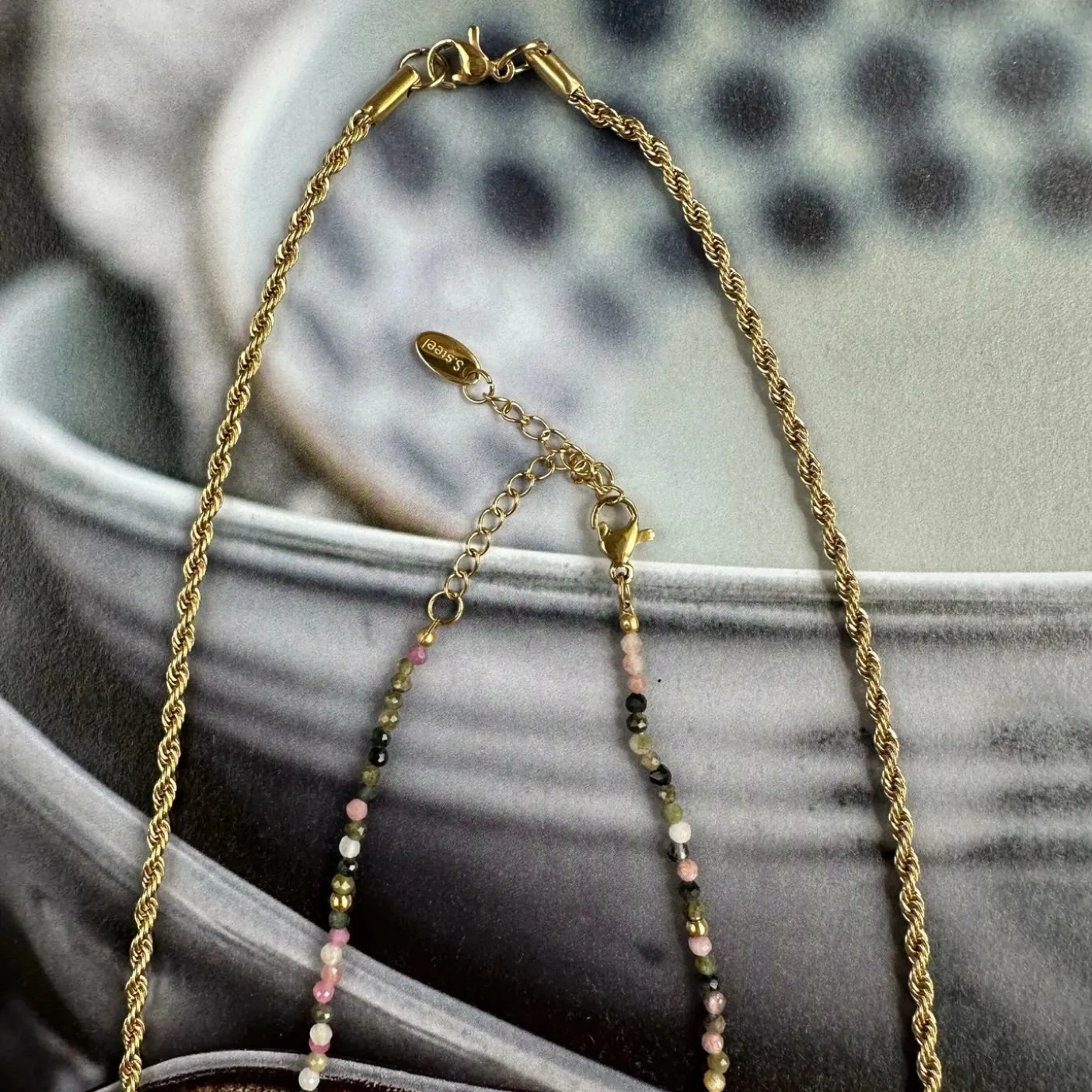 Halskæden fremstillet i rustfrit stål/guldbelagt.