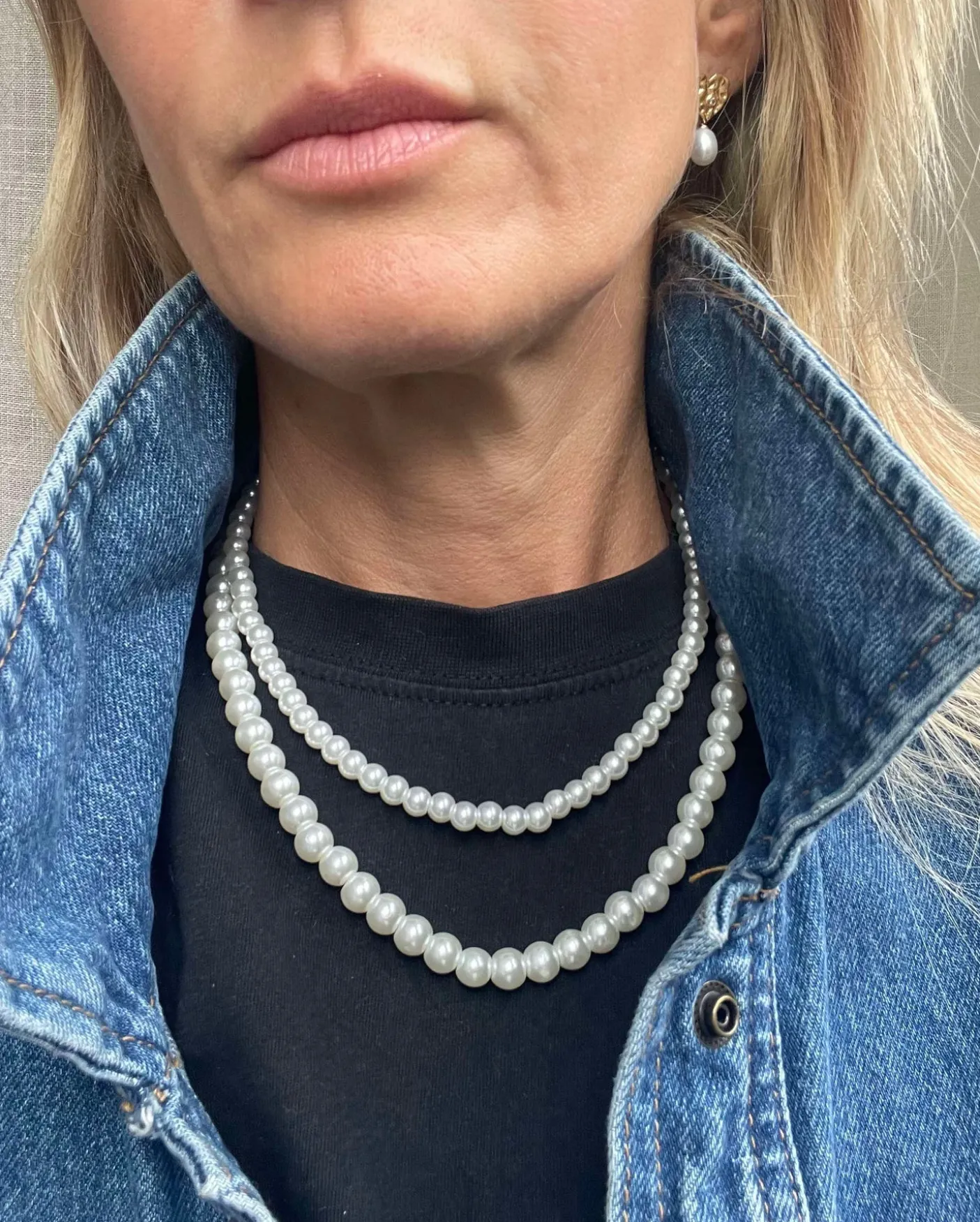 Sæt med 2 halskæder. Faux perler i god kvalitet