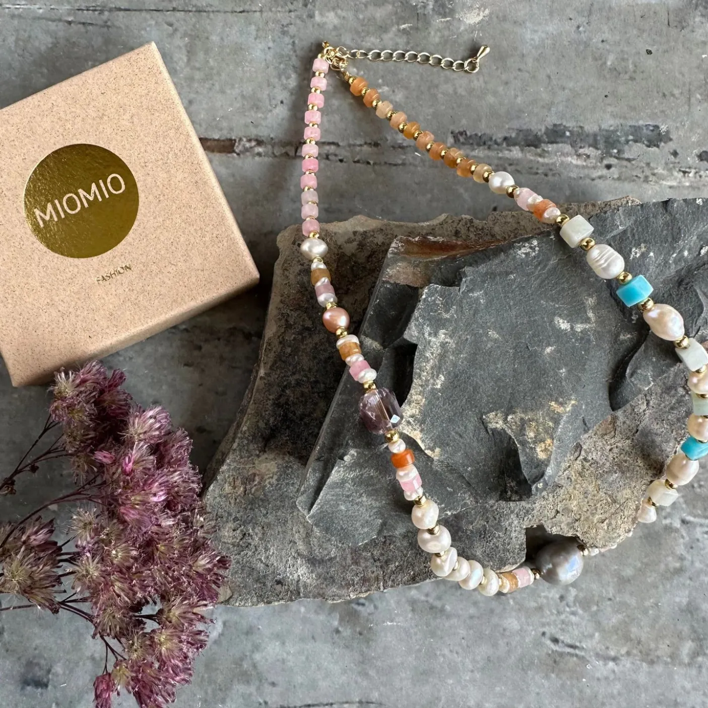 Halskæde med ægte og unikke ferskvandsperler. Isat en smykkelås, fremstillet i messing forgyldt 18K.
