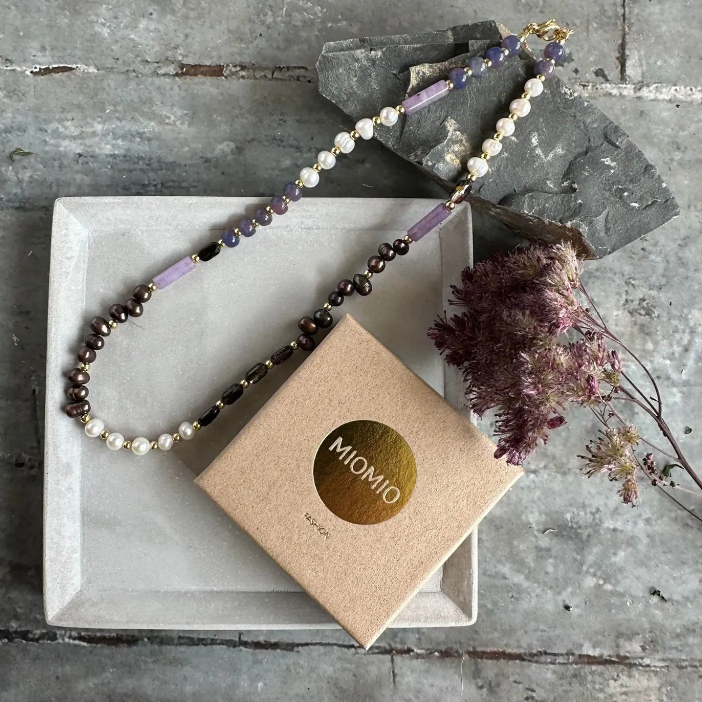 Halskæde med ægte og unikke ferskvandsperler. Isat en smykkelås, fremstillet i messing forgyldt 18K.