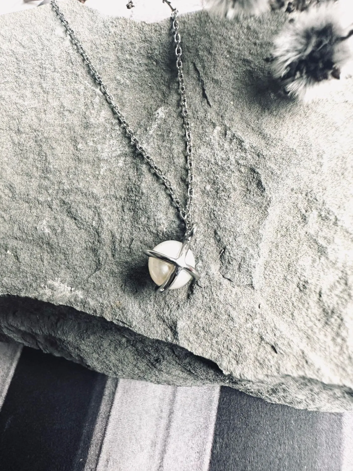 Smuk og enkel halskæde med vedhæng, i en indfattet ferskvandsperle.