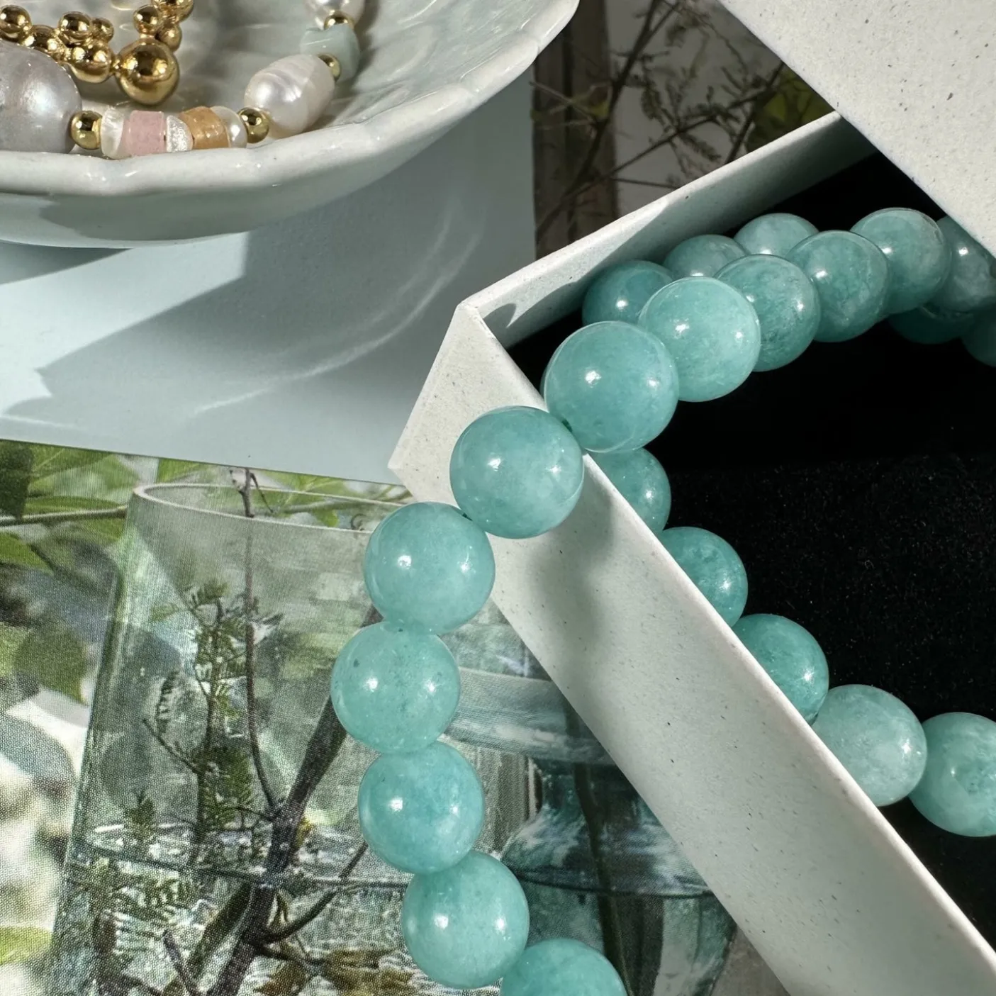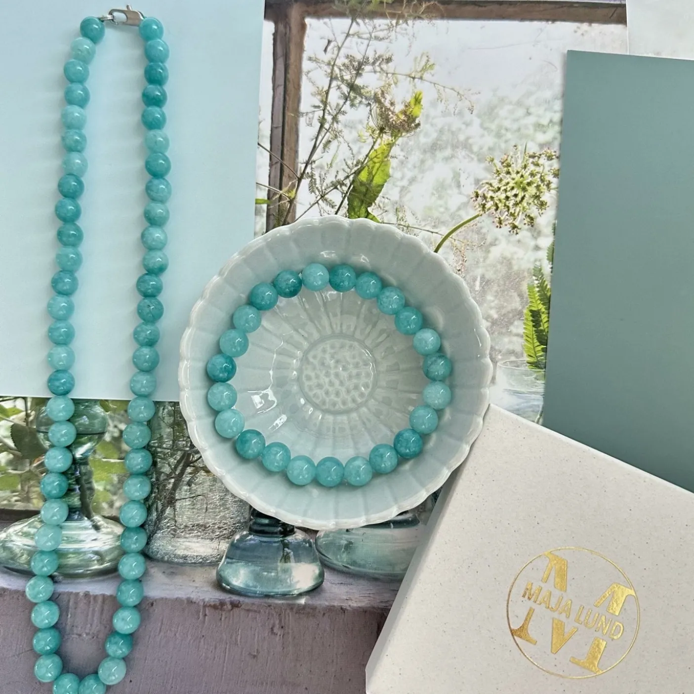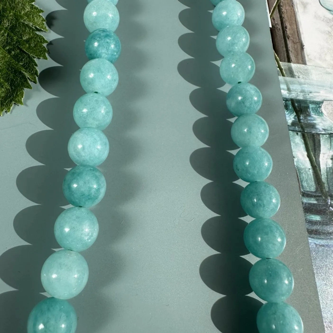 Denne halskæde er i smukke aqua natursten som hver er 7mm.