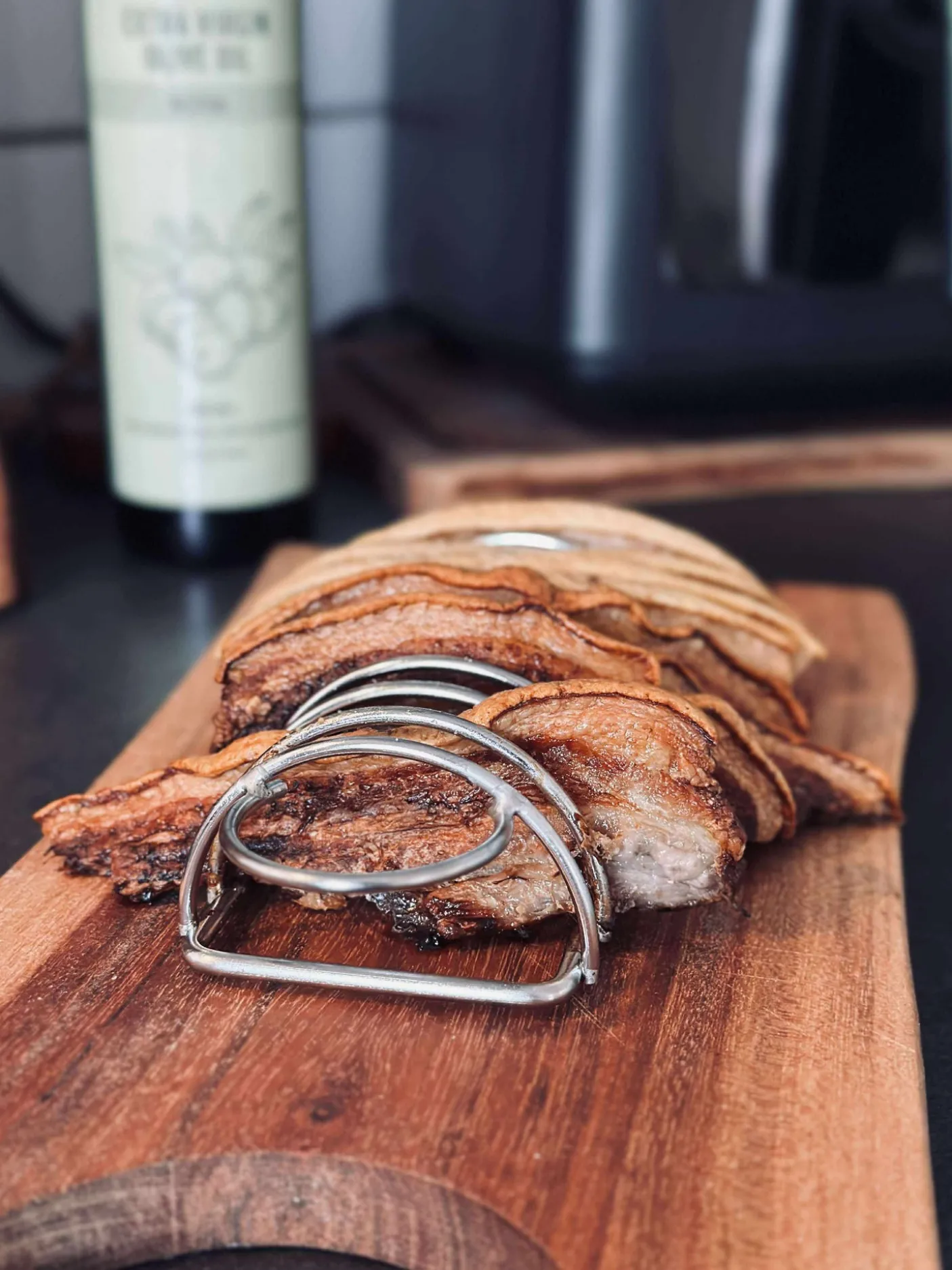 Gør madlavningen i airfryeren nemmere med denne smarte holder til fx stegt flæsk.