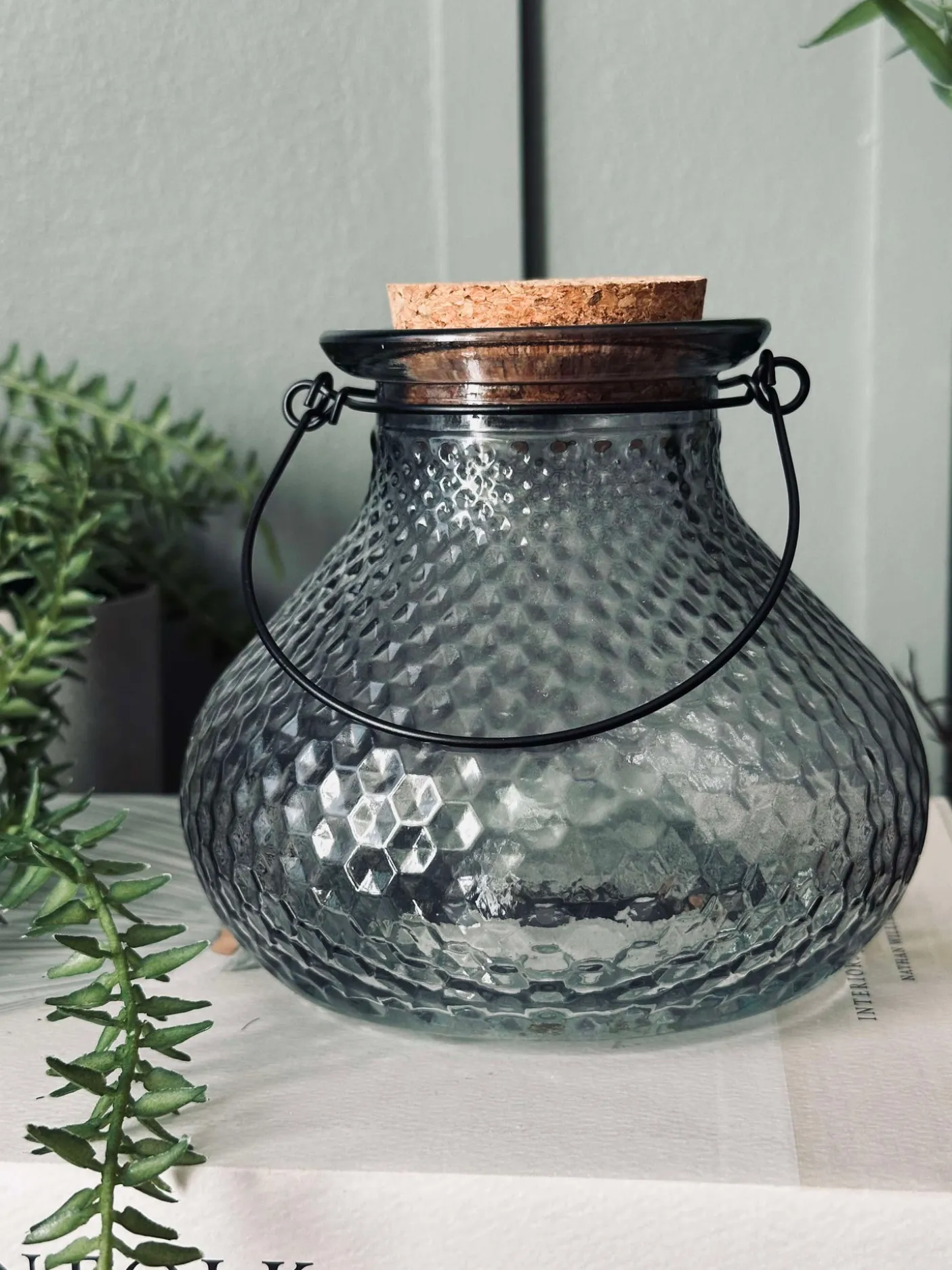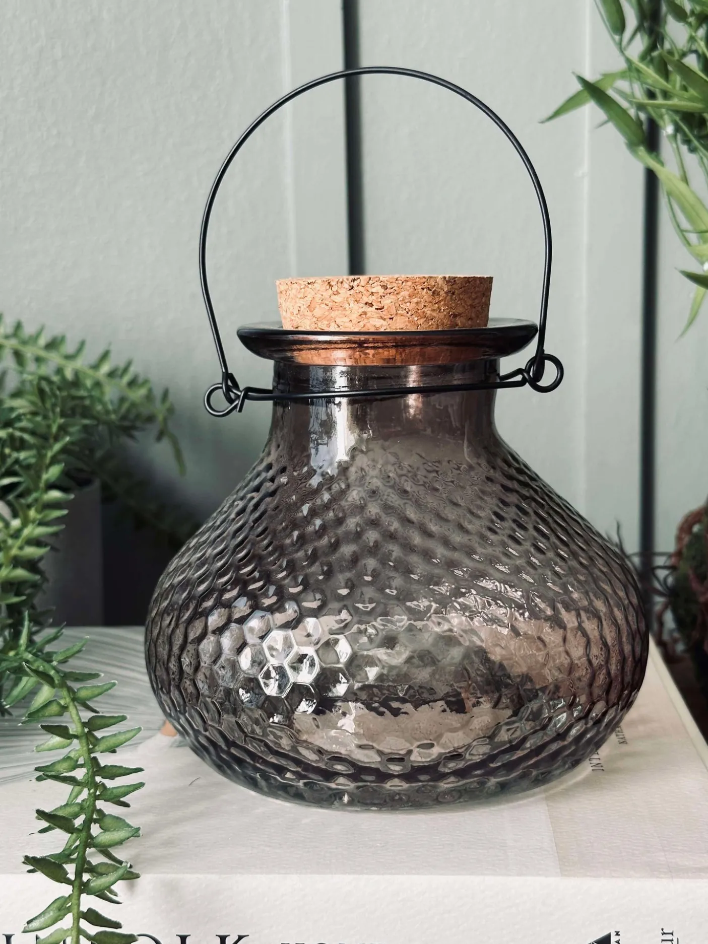 Dekorativ hvepsefanger i glas med korkprop.