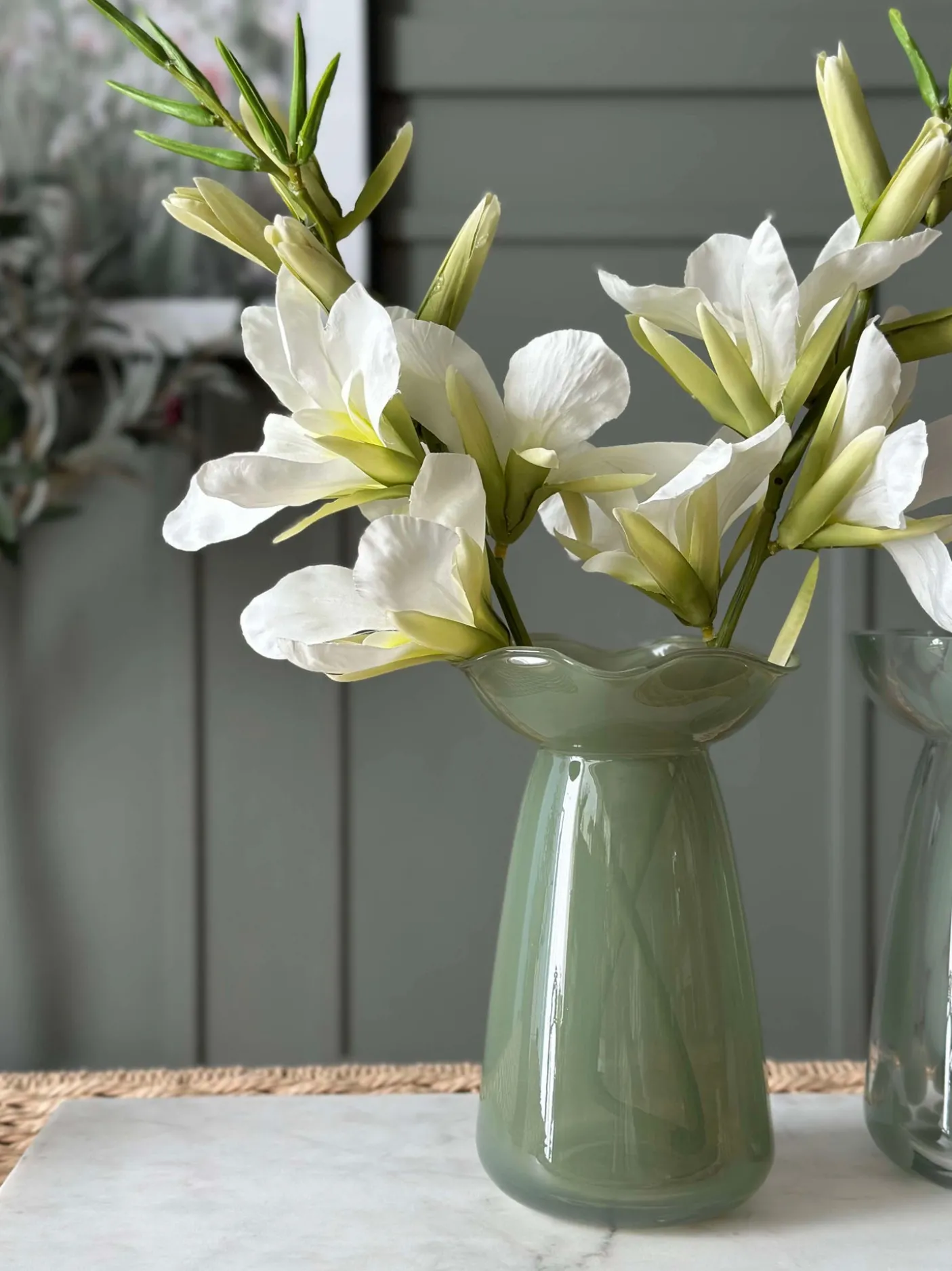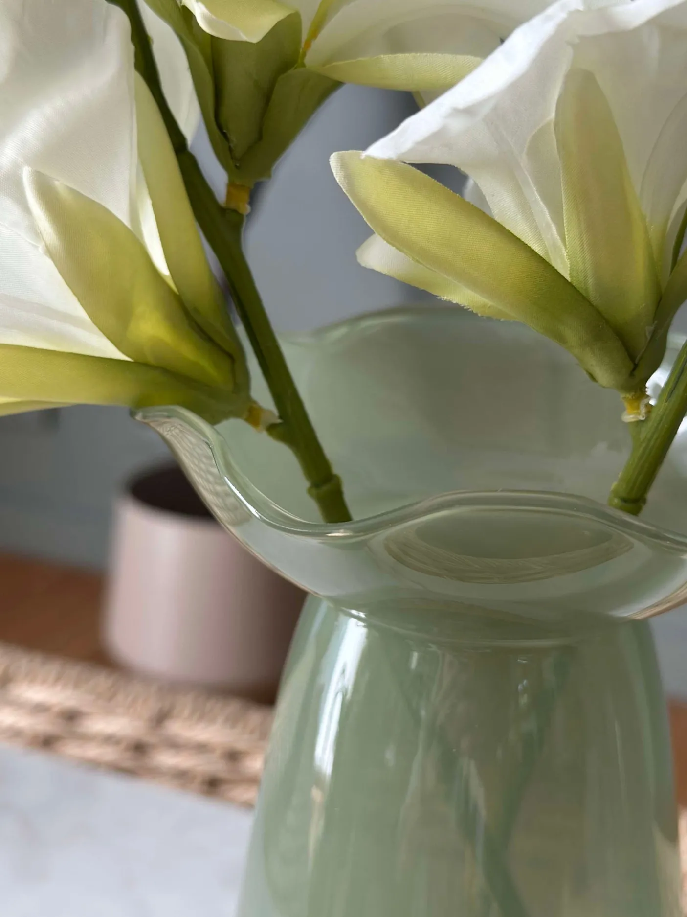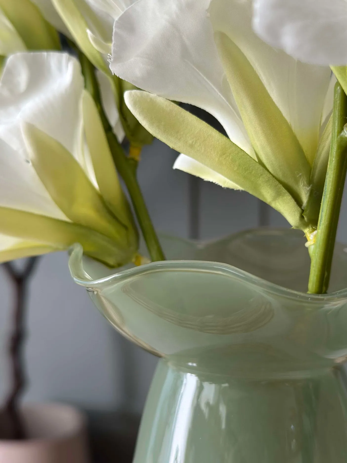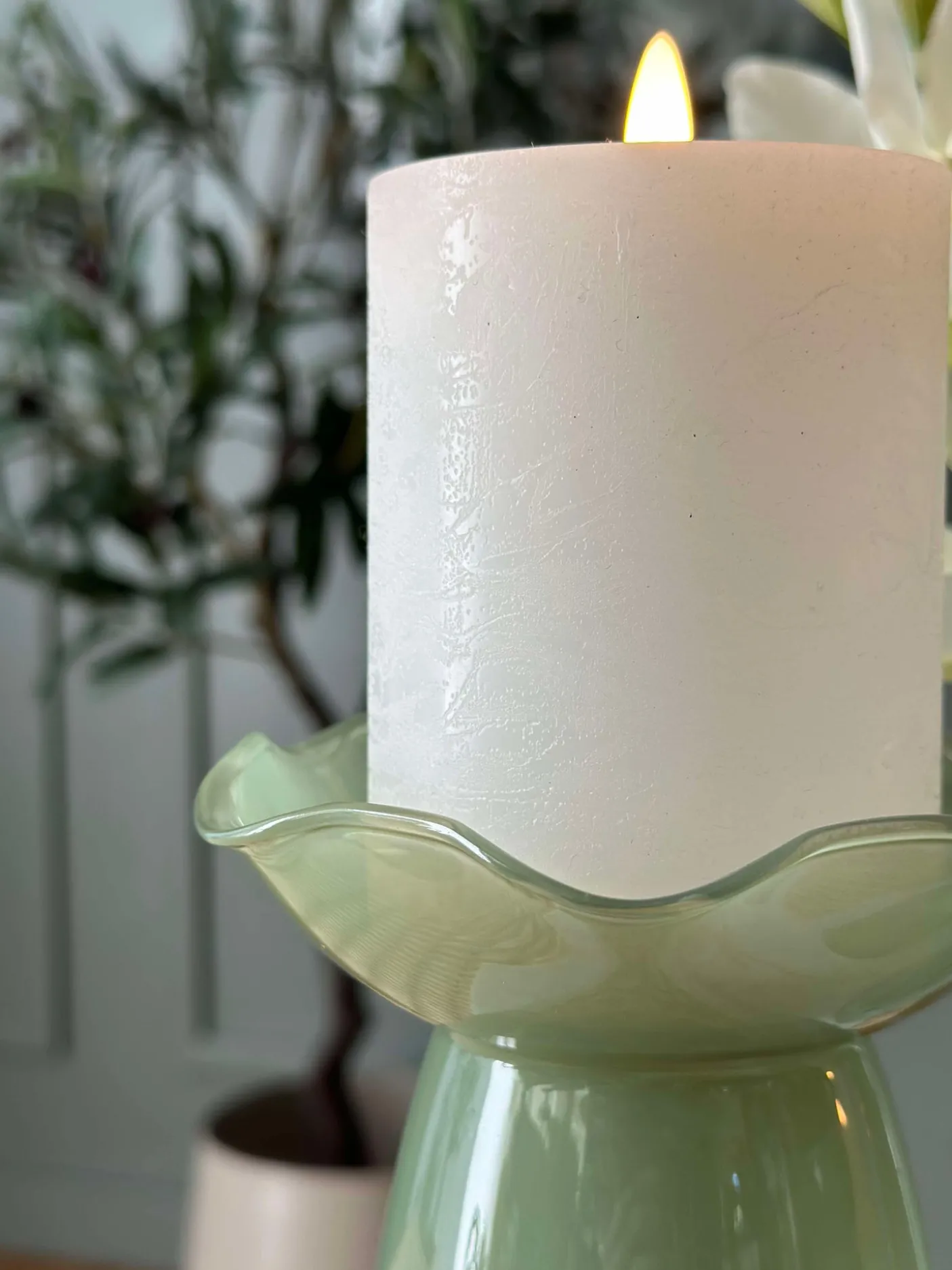 Smuk vase i glas. Vasen kan både benyttes som lysestage til bloklys og almindelig vase – den vil især være fordelagtig til hyacinter.