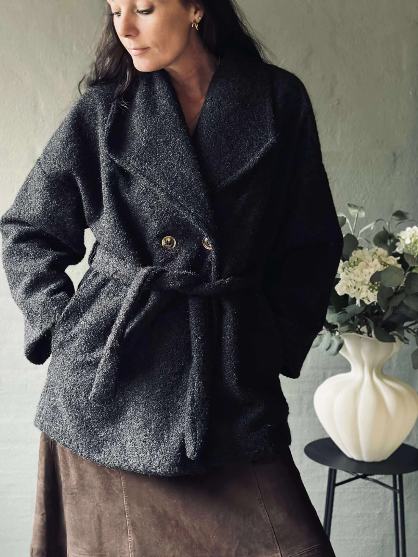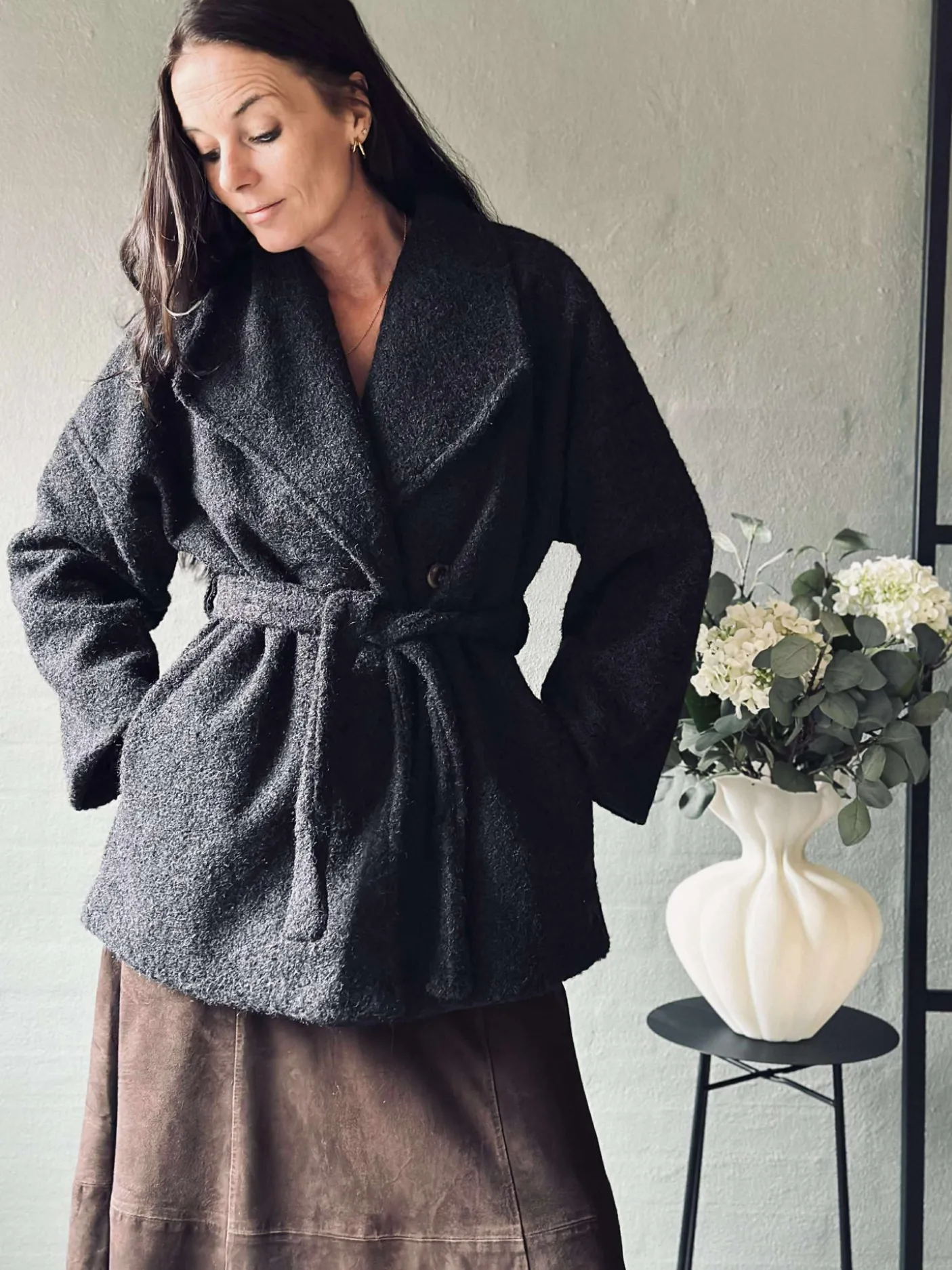 Lækker blød jakke med lommer og bindebånd.
