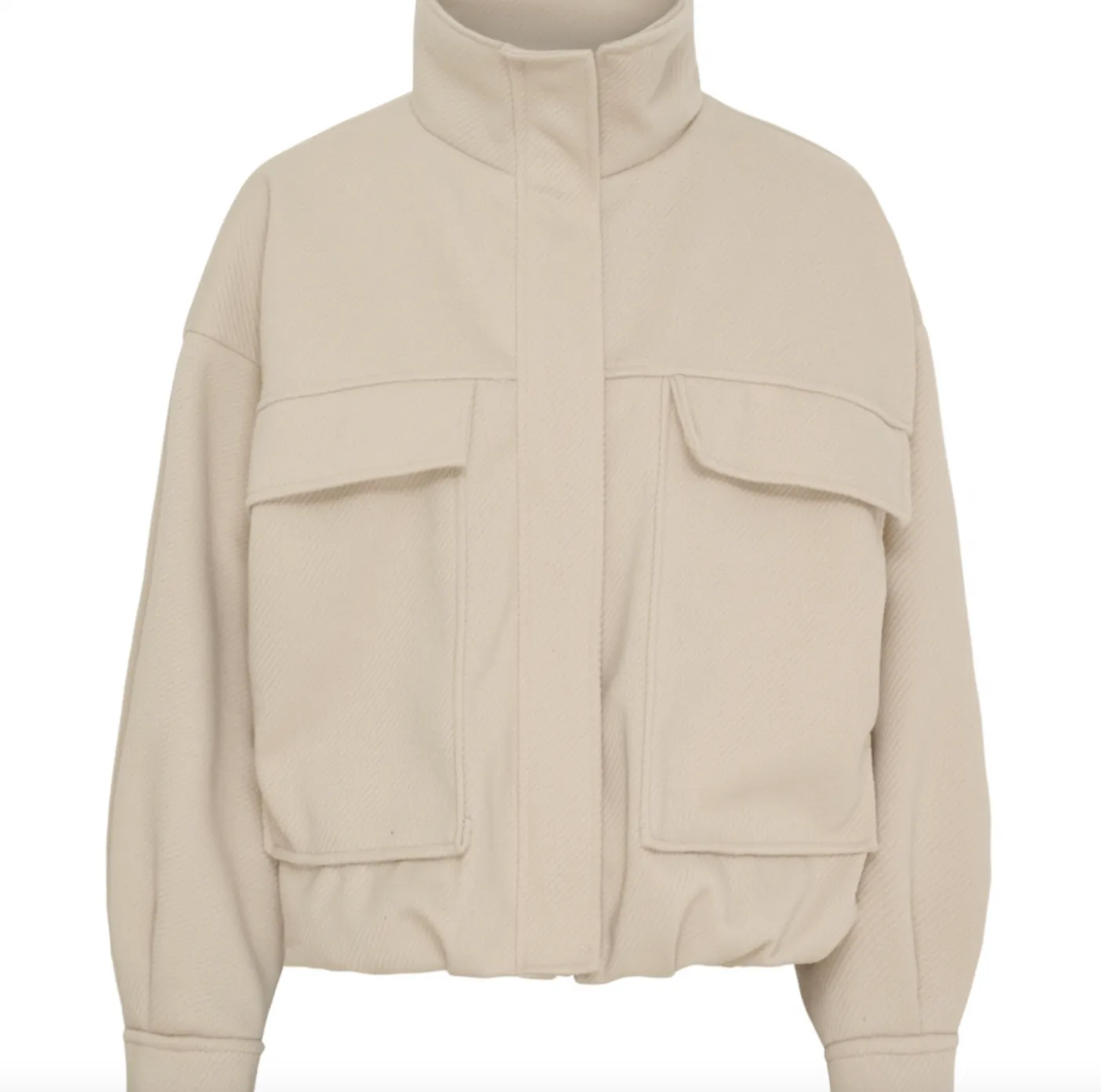 Jakken er lavet i 100% polyester og har et afdæmpet udtryk i beige, der giver et neutralt og let at matche look.