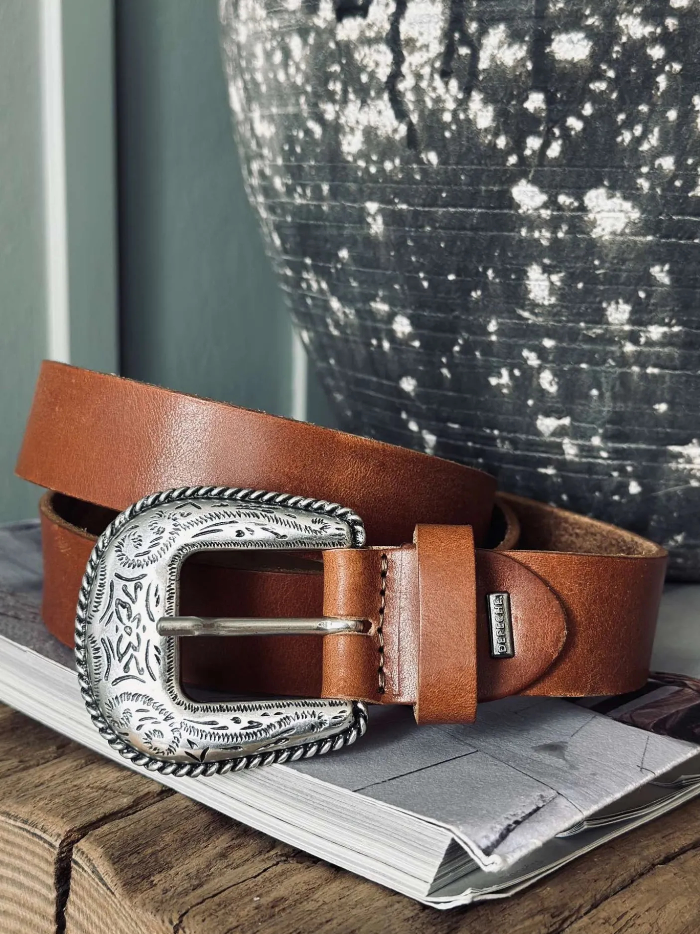 Jeans bælte i cognac udført i en lækker og blød læderkvalitet. Det 3,5 cm brede bælte har et glat, ensfarvet udtryk, som giver et roligt og klassisk look til både jeans og mere enkle outfits.