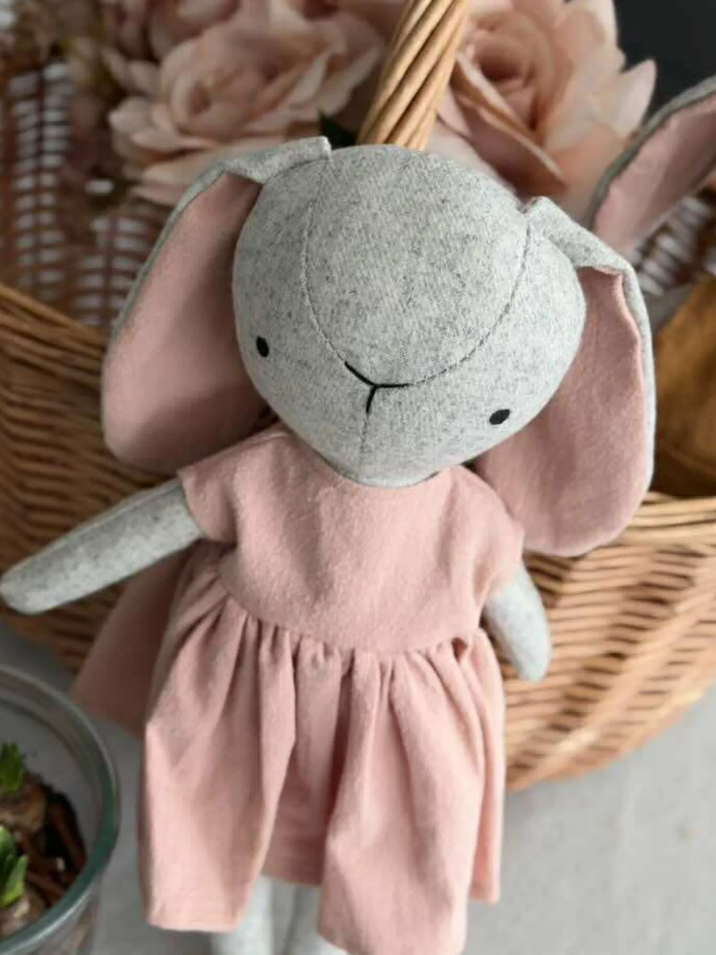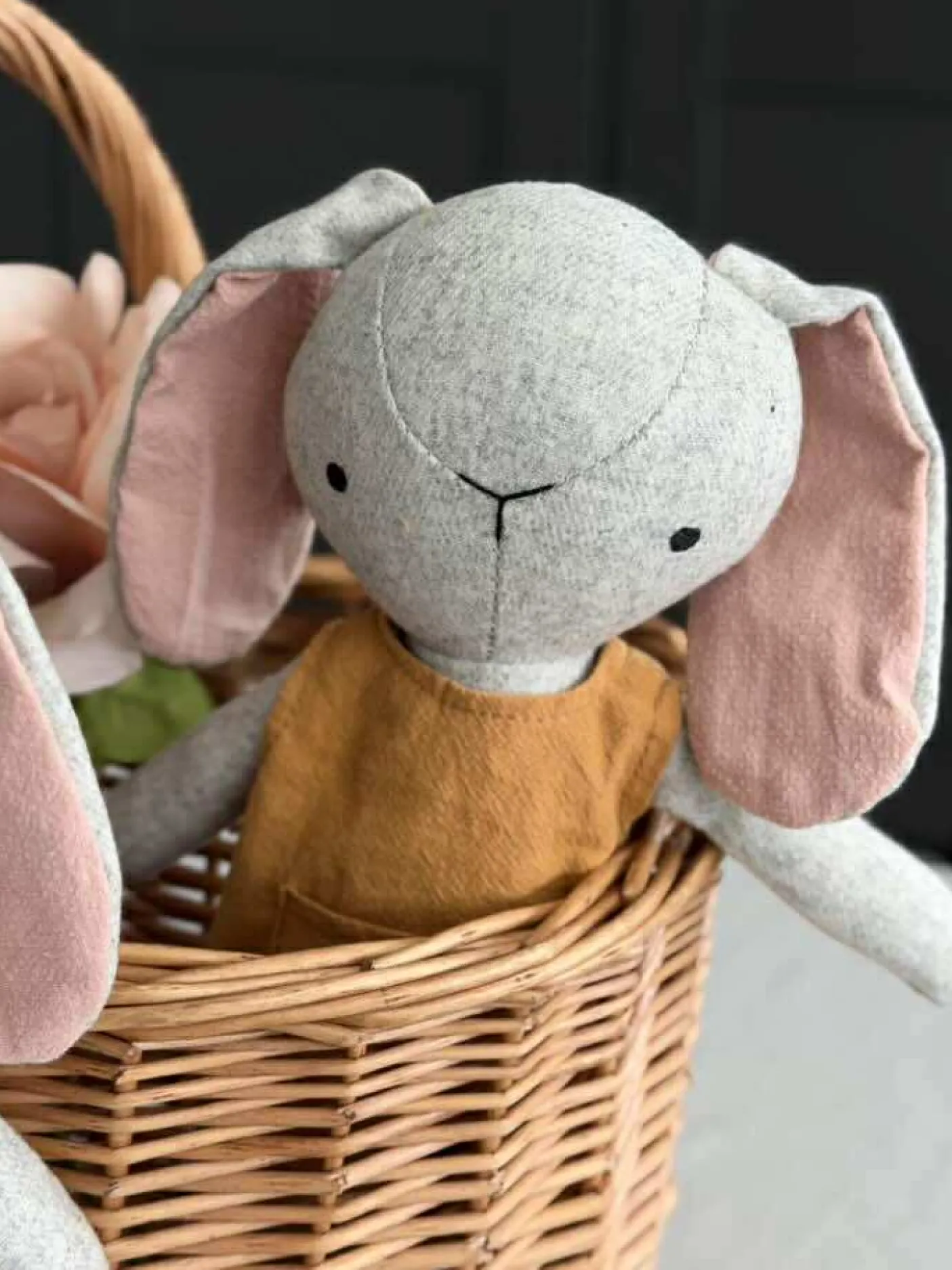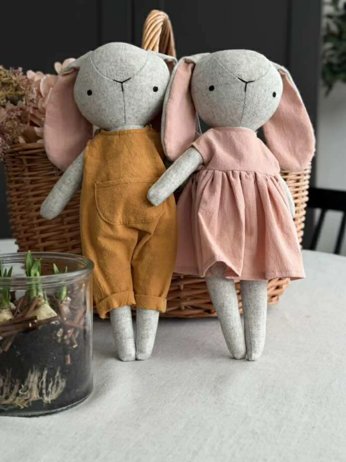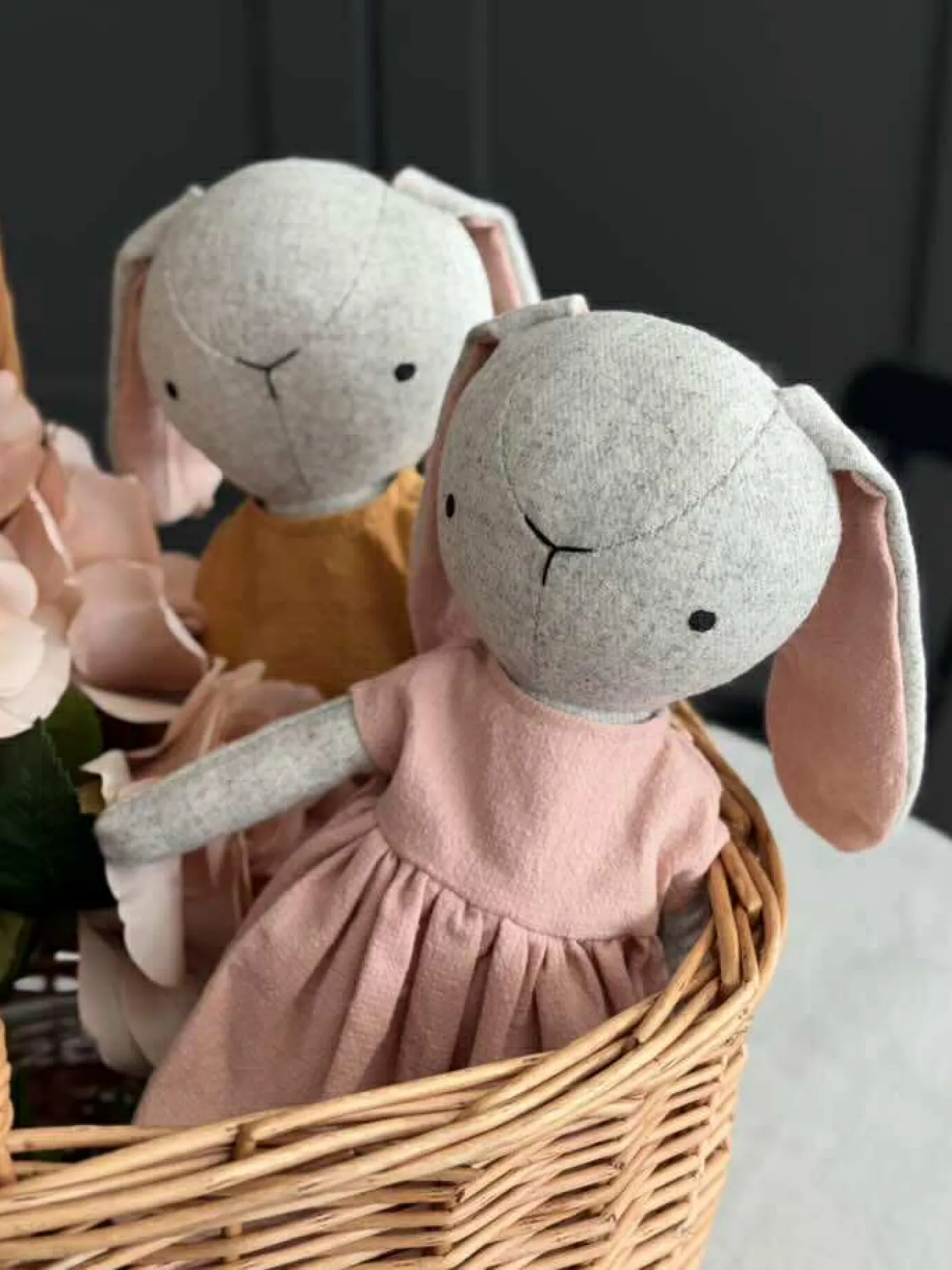 Kaninfigurer i grå og rosa