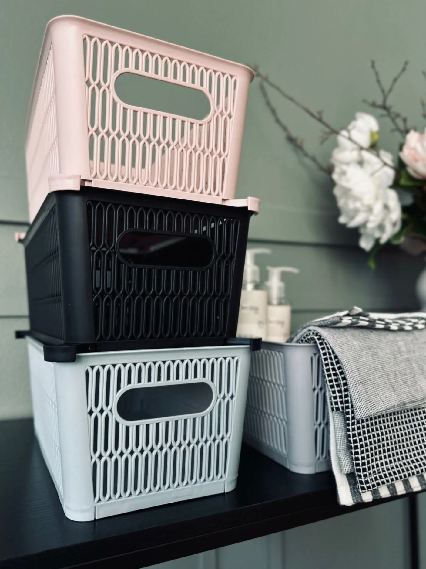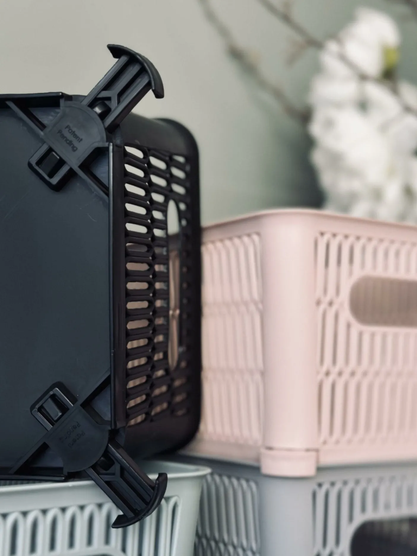 Ved køb af flere kasser kan de stables ved at kanten på kassen trækkes ud.