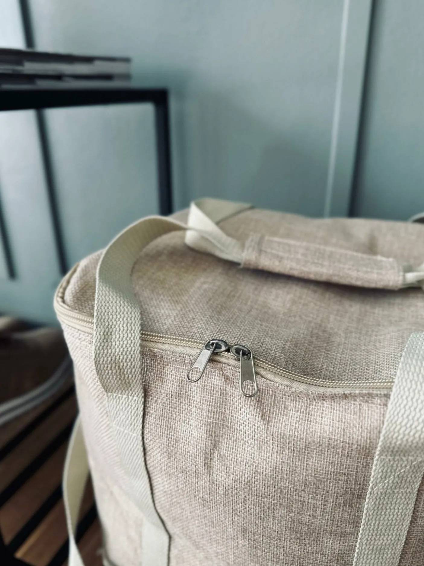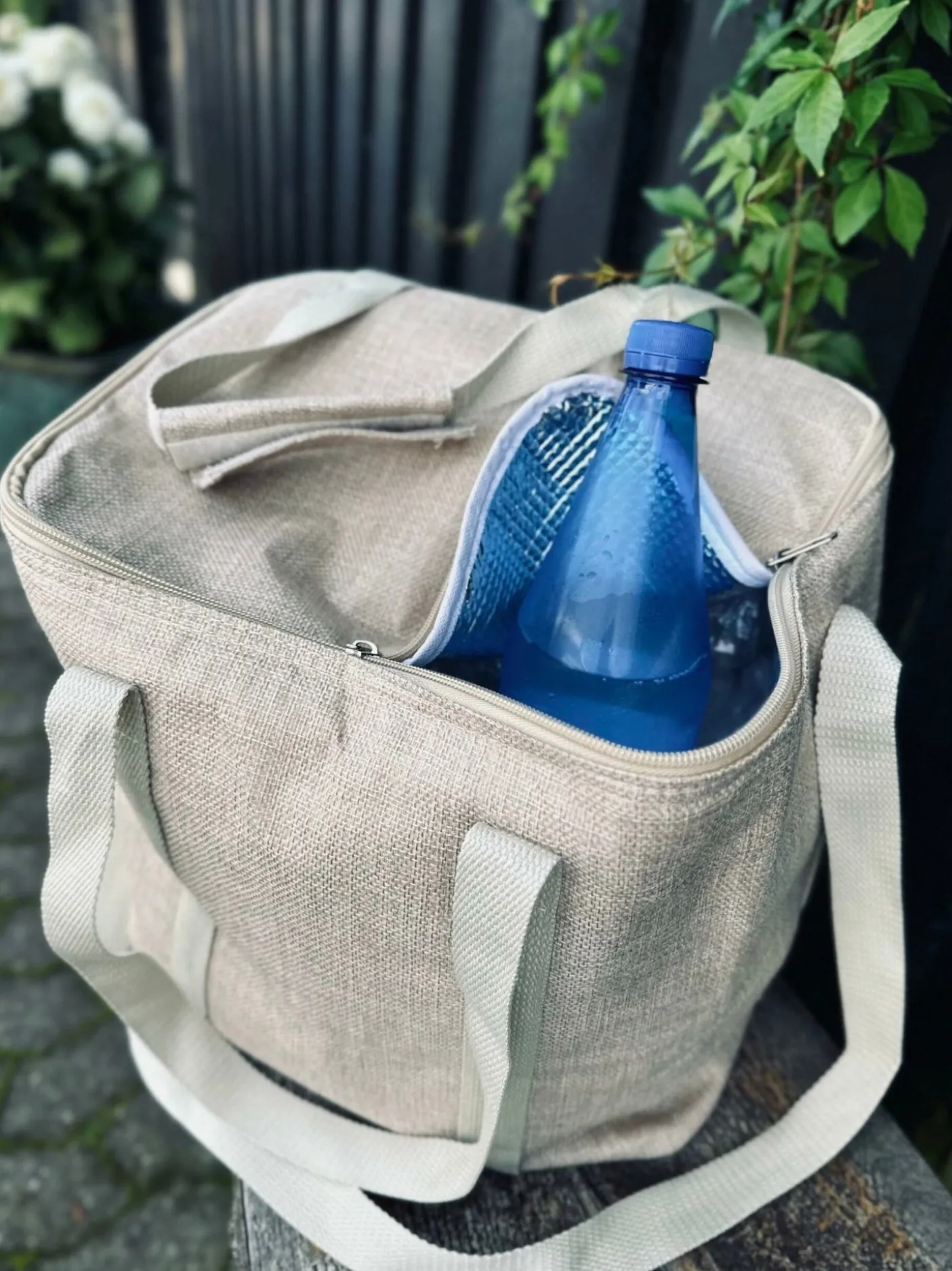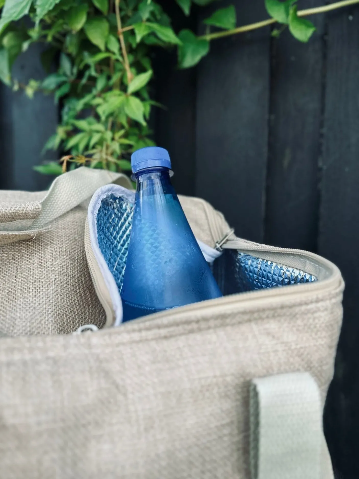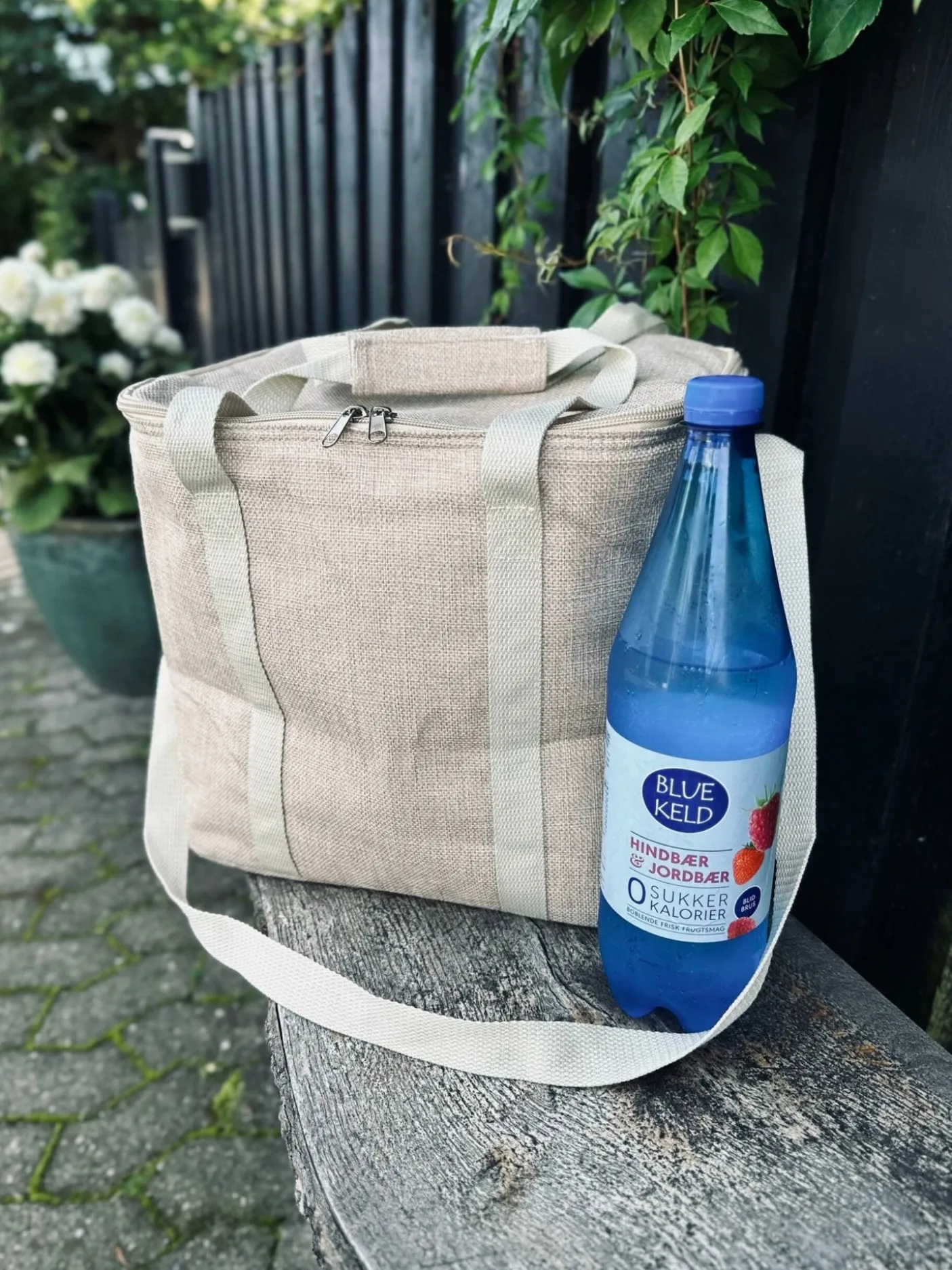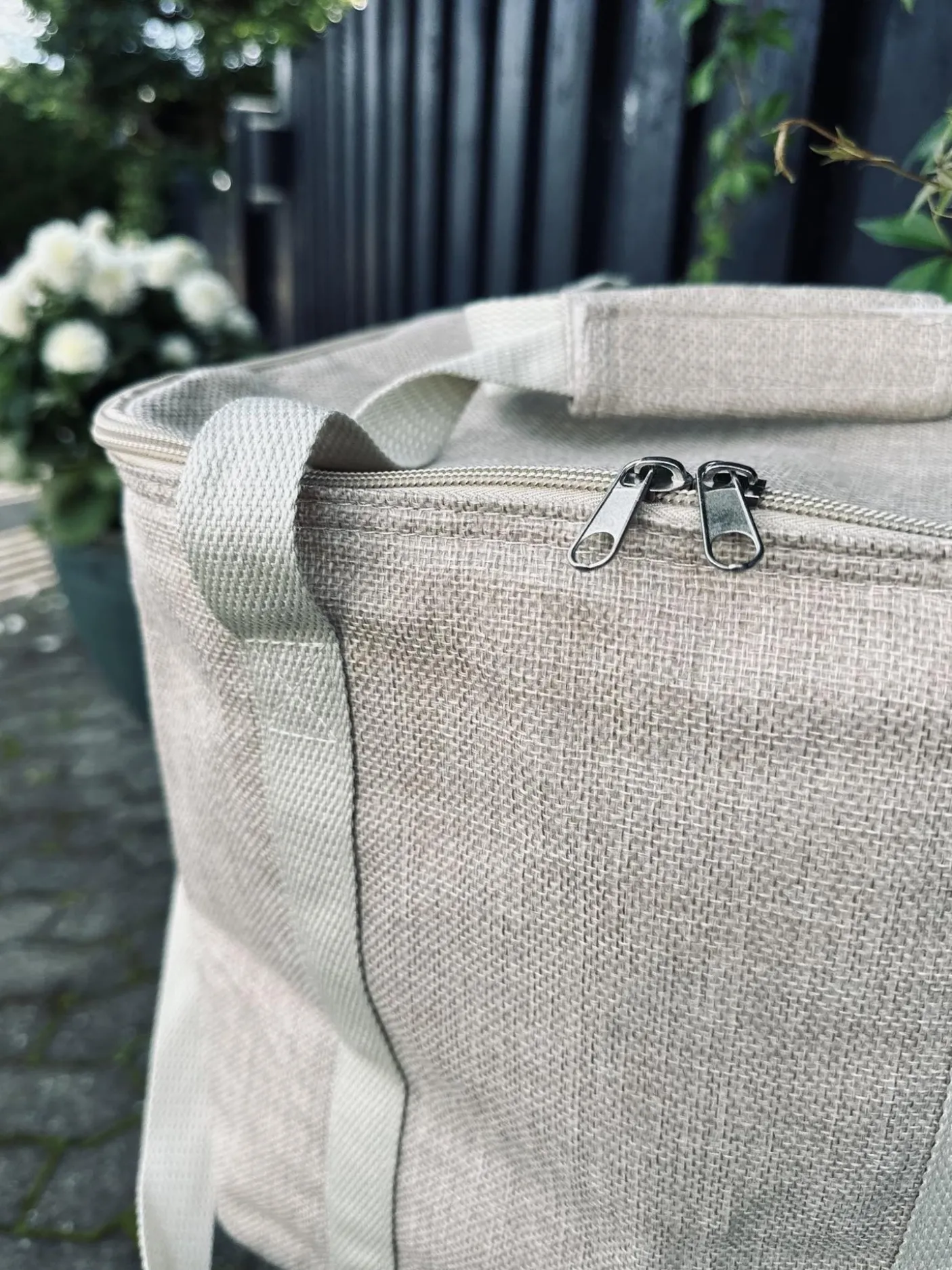 Super cool køletaske i beige. Tasken er foret med aluminium, så dine drikkevarer holder sig kolde eller varme.