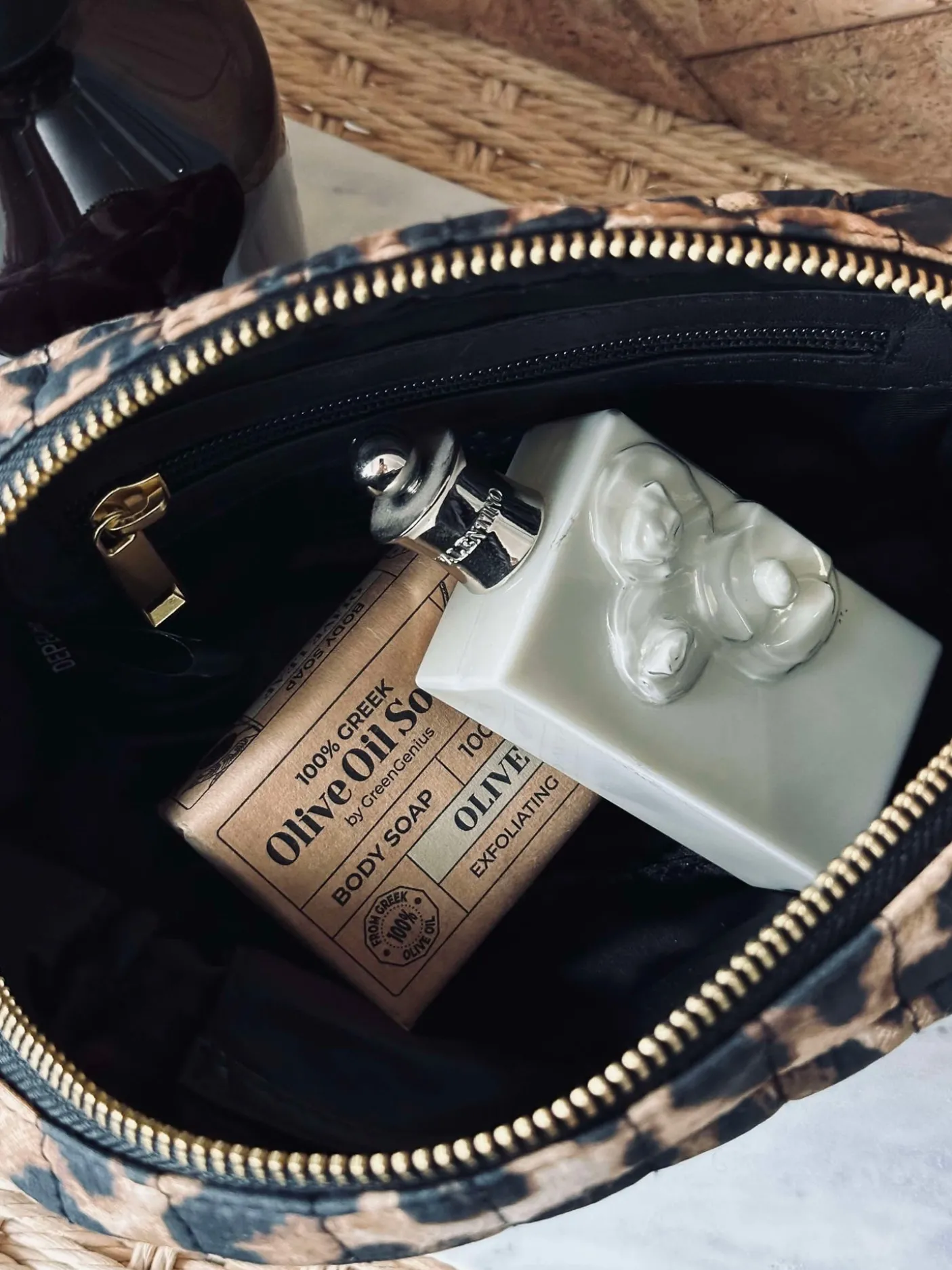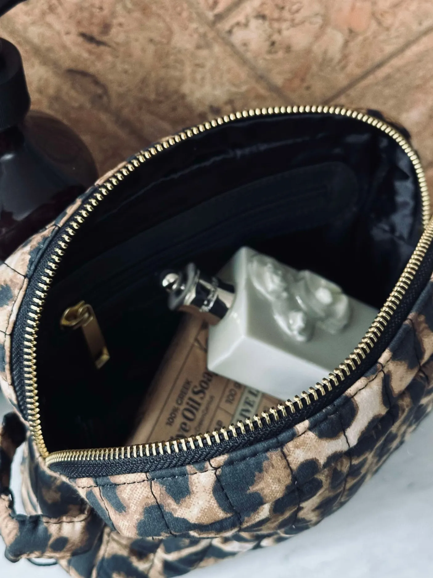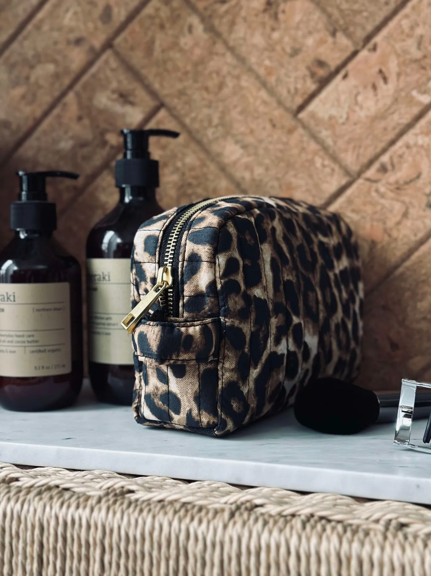 Super lækker Kosmetiktaske i det flotteste leoprint med indvendig lomme.