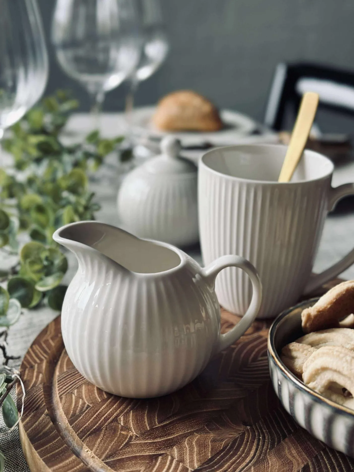 Lavet i New Bone China porcelæn, som gør det mere holdbart og særlig velegnet til daglig brug.
