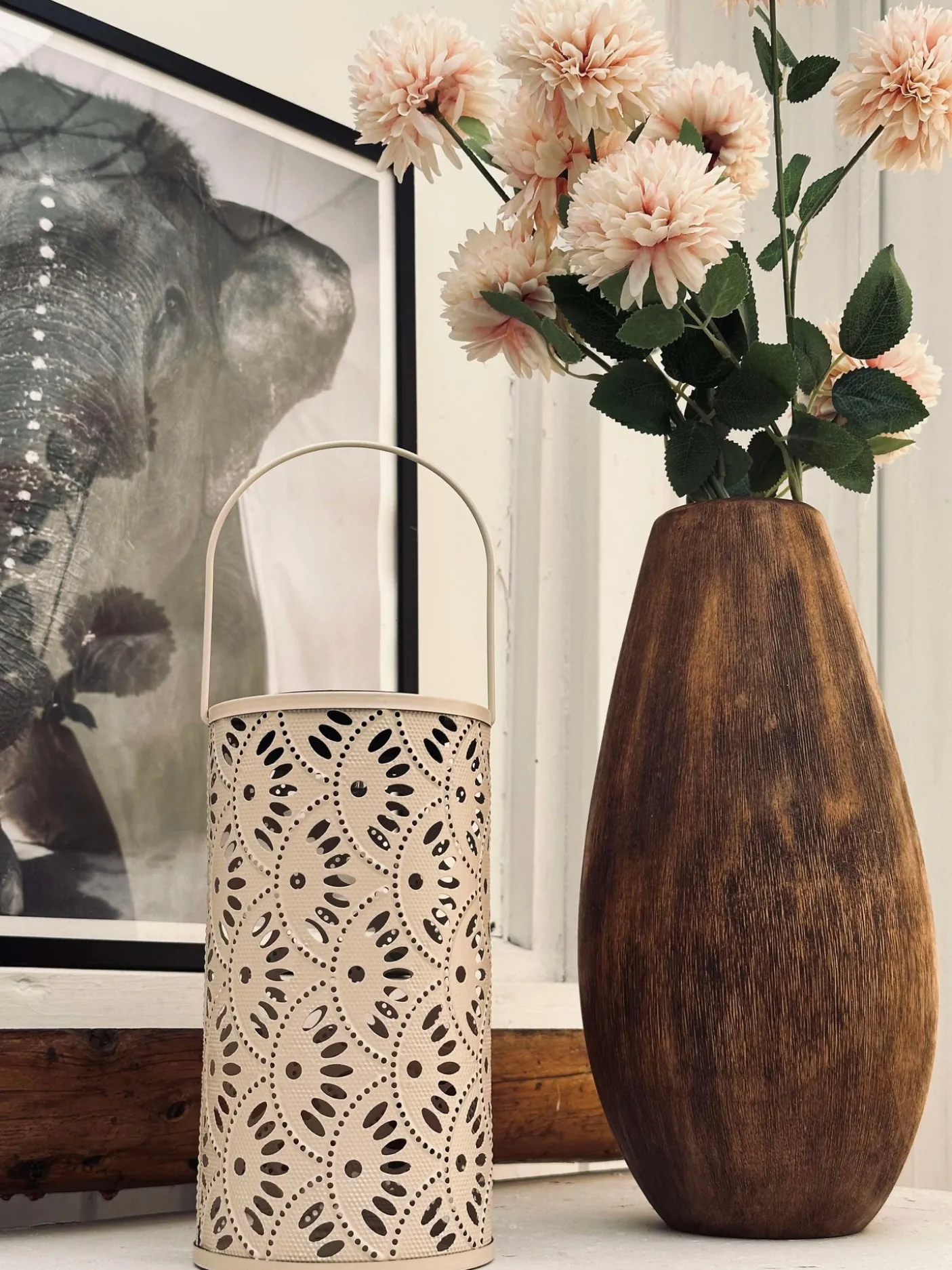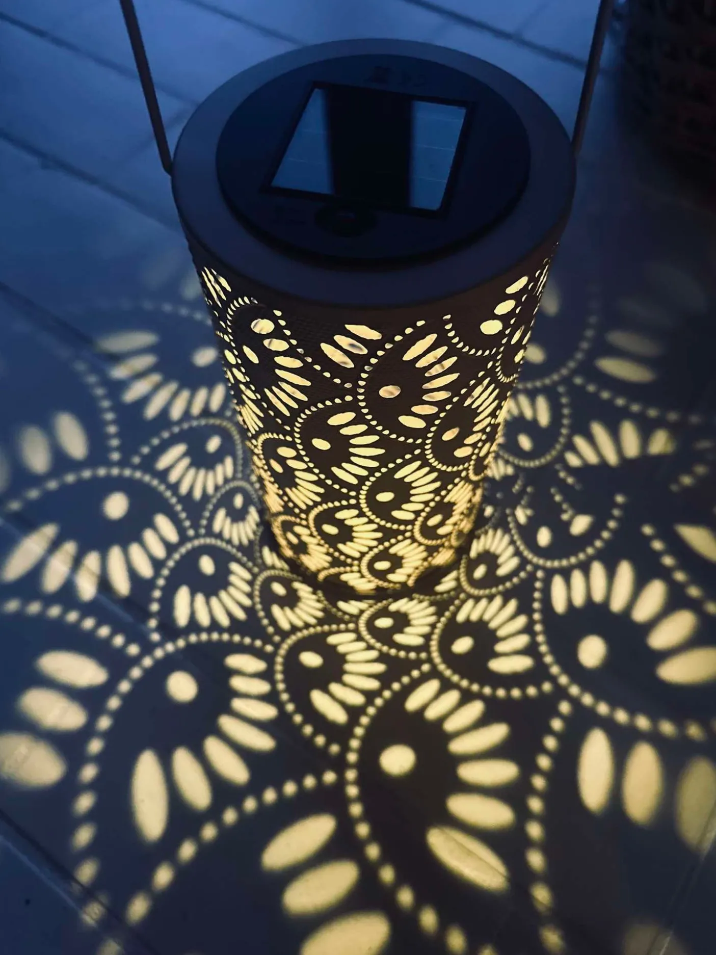 Dekorativ lanterne , lyser automatisk når mørket falder på.