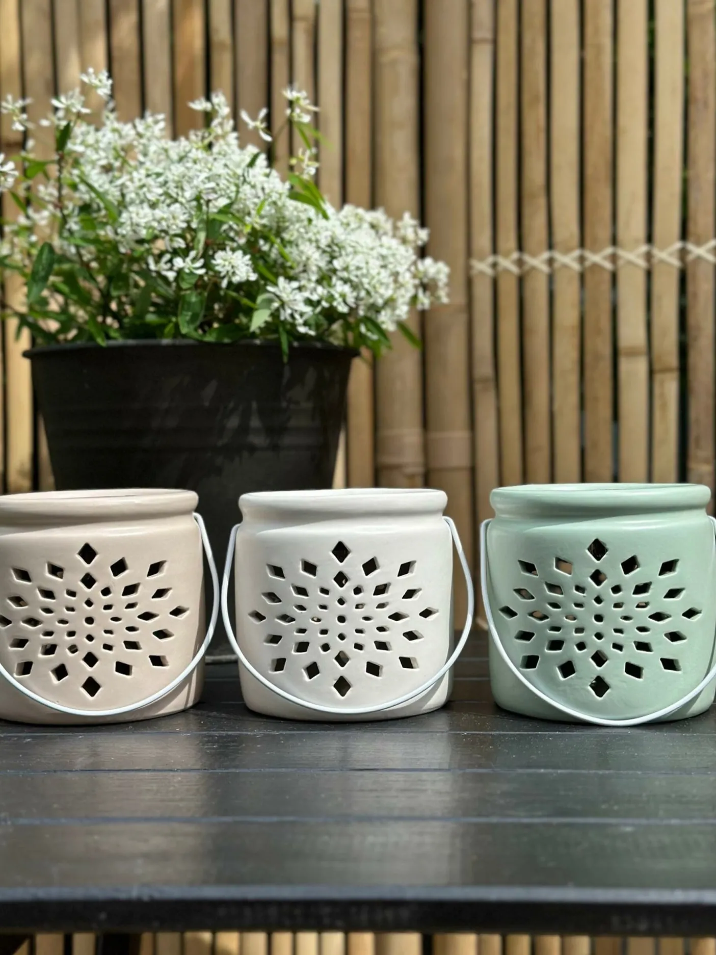 Lanternen kommer i mint, creme og hvid.