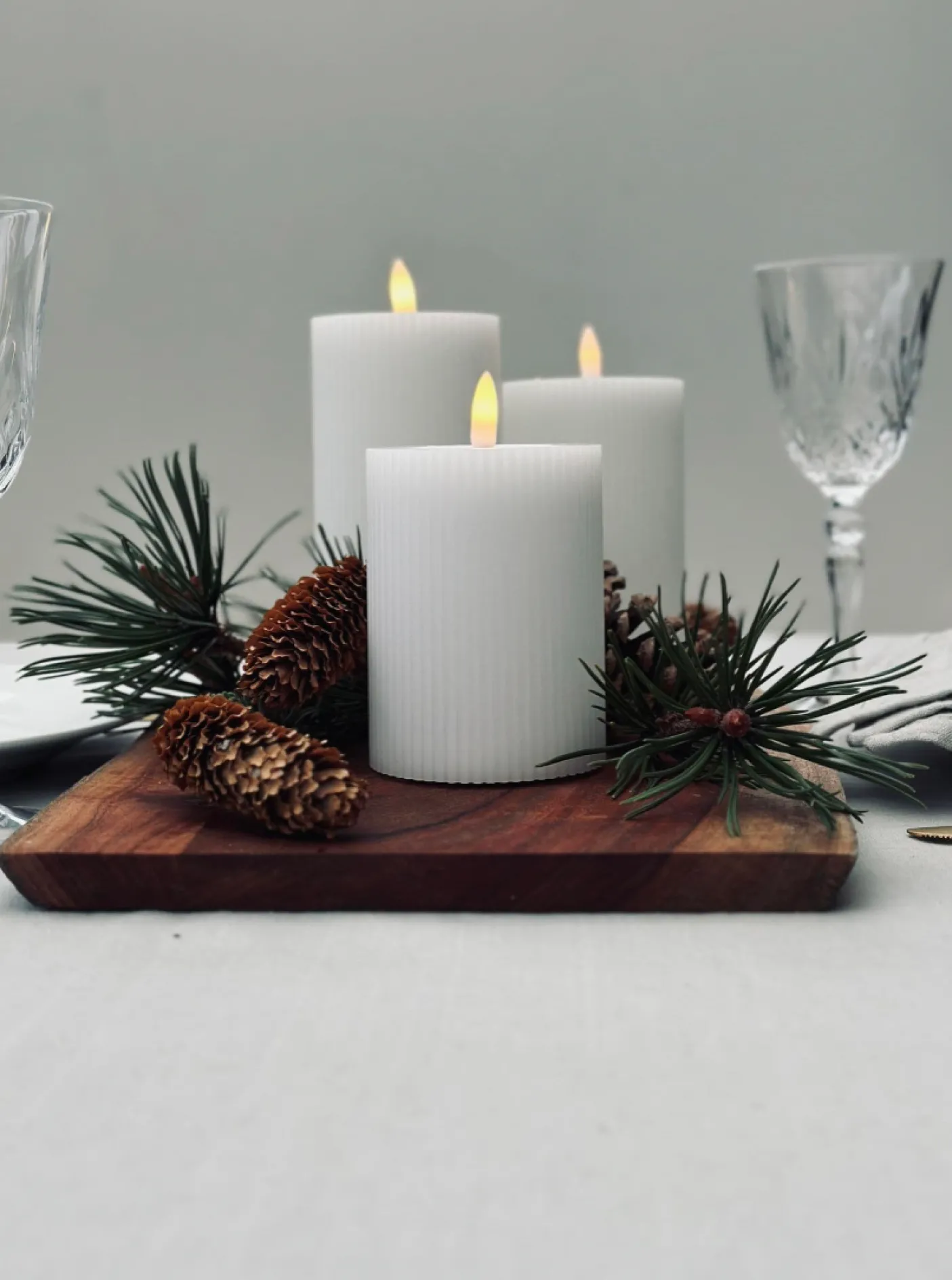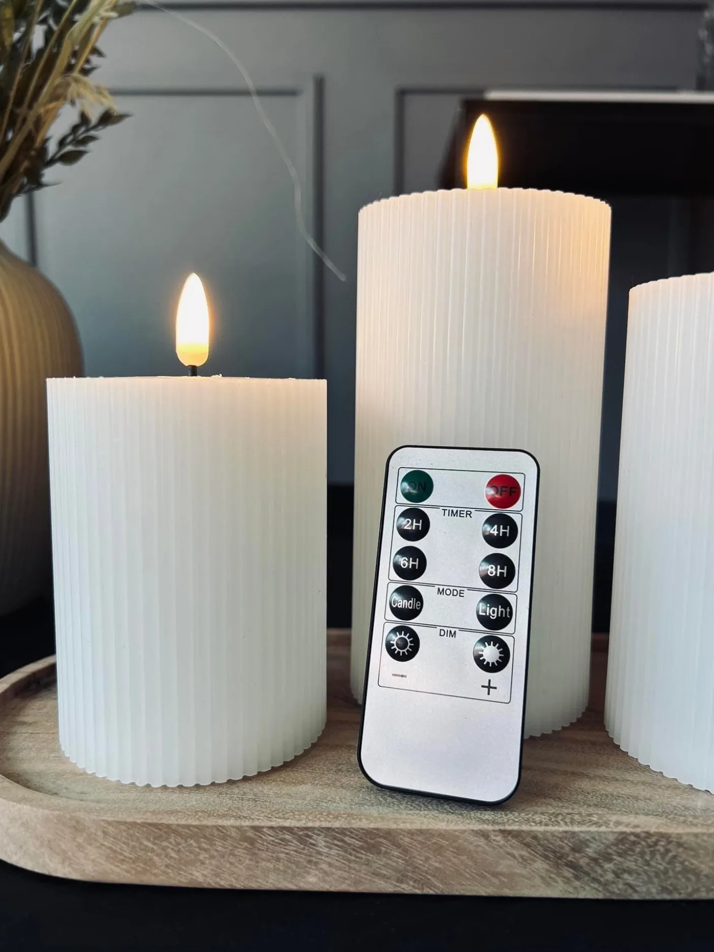 LED Bloklys med riller – Sæt med 3 stk inkl fjernbetjening