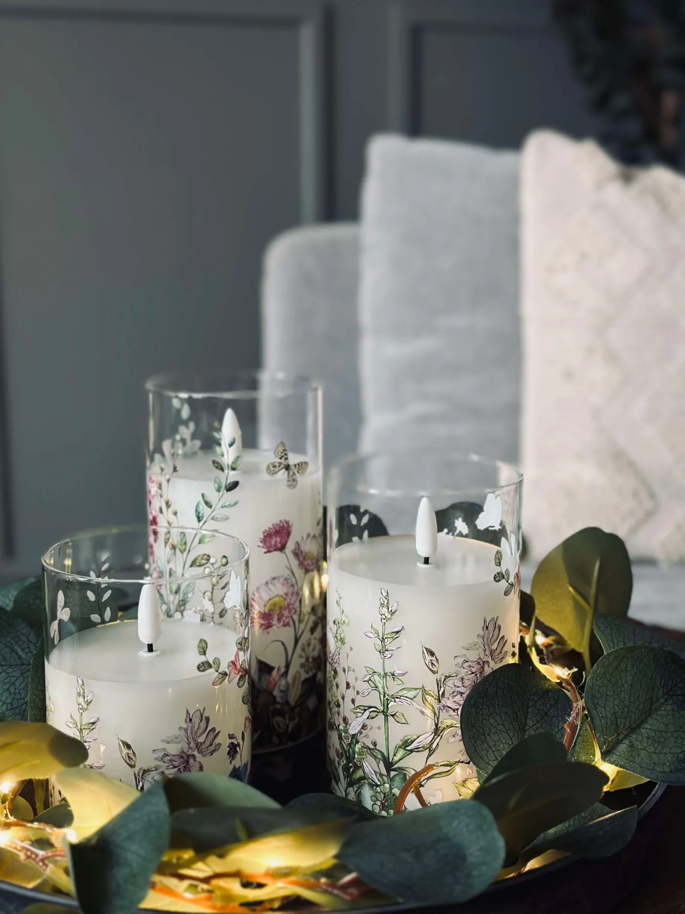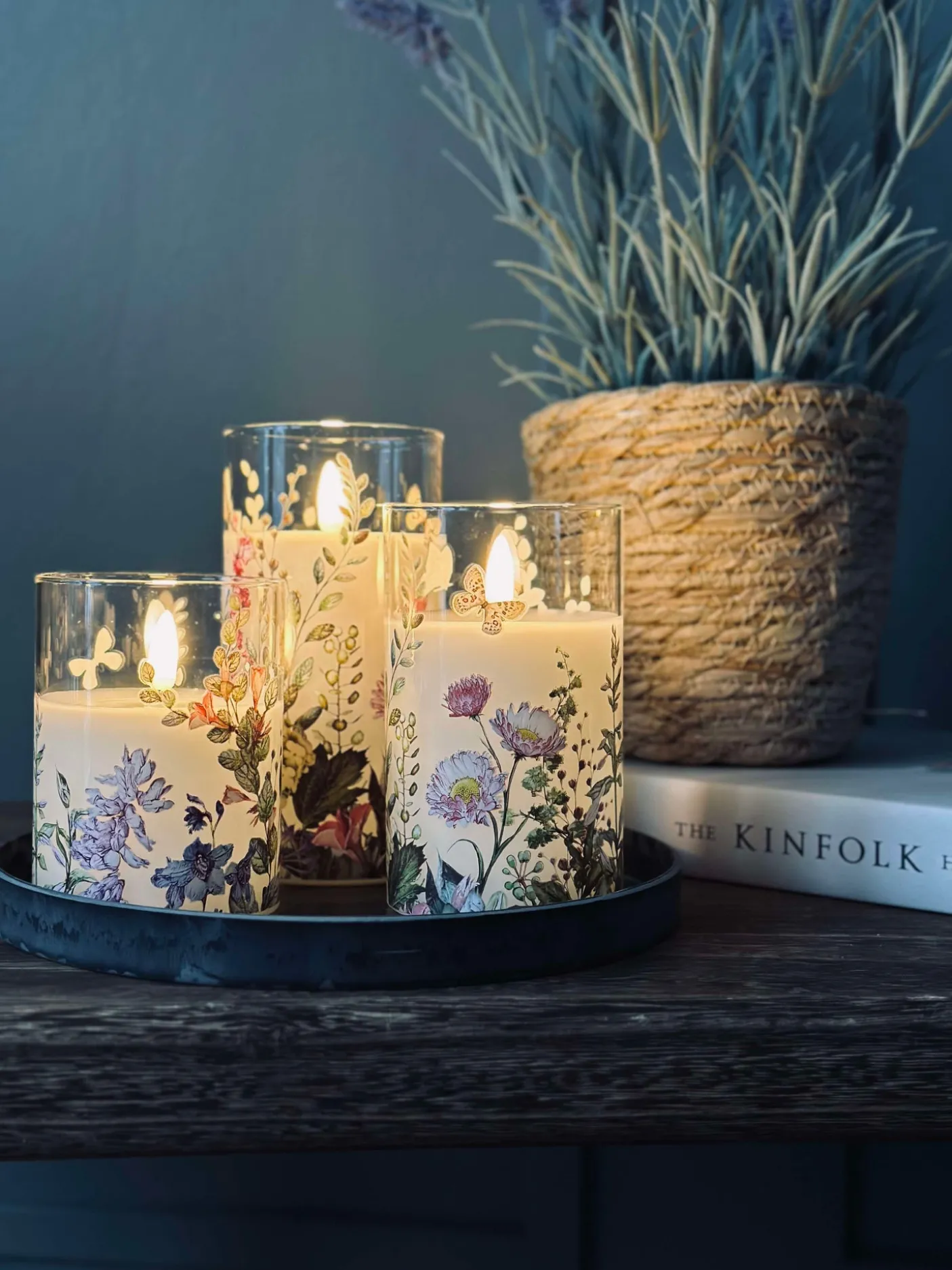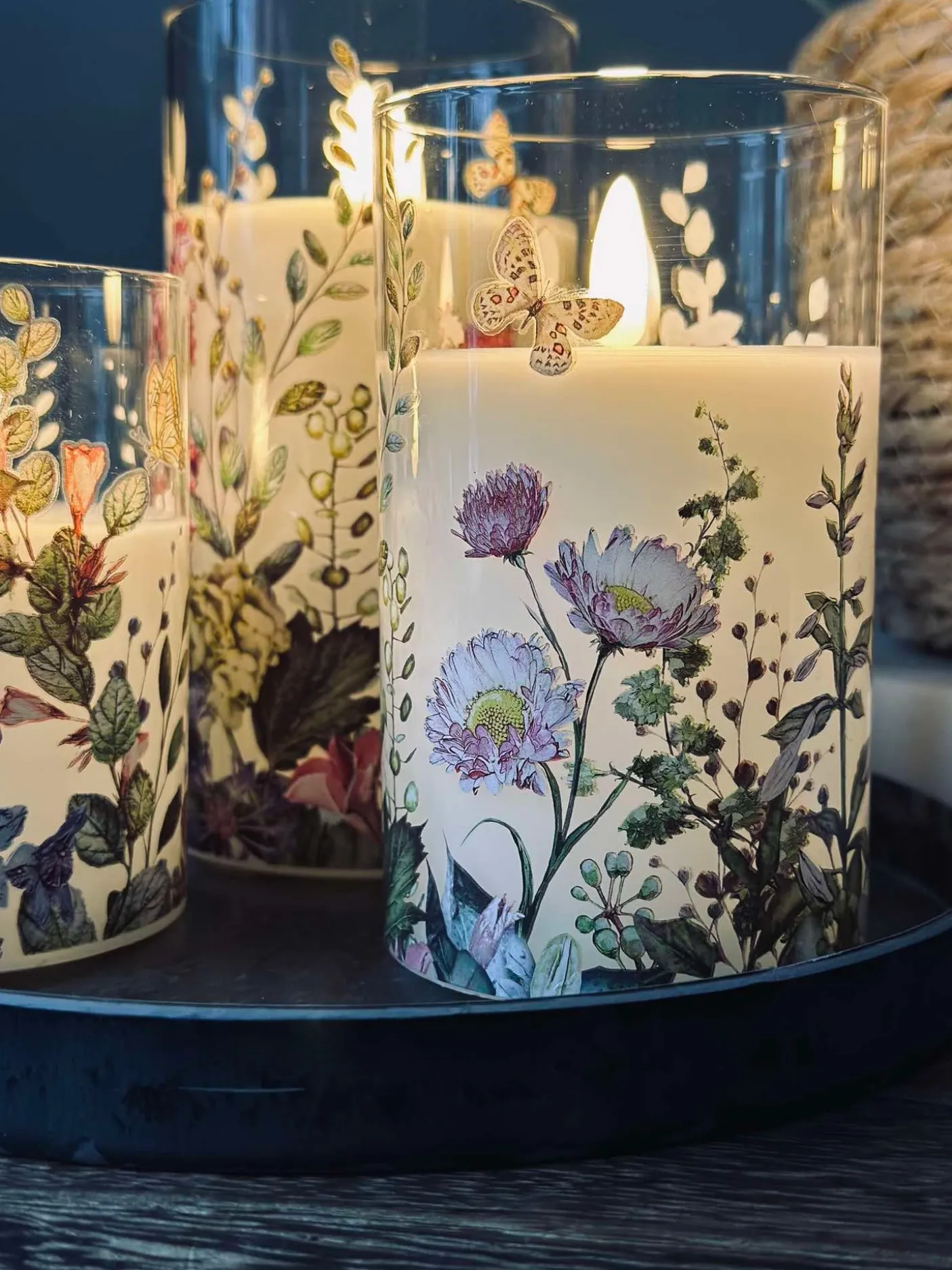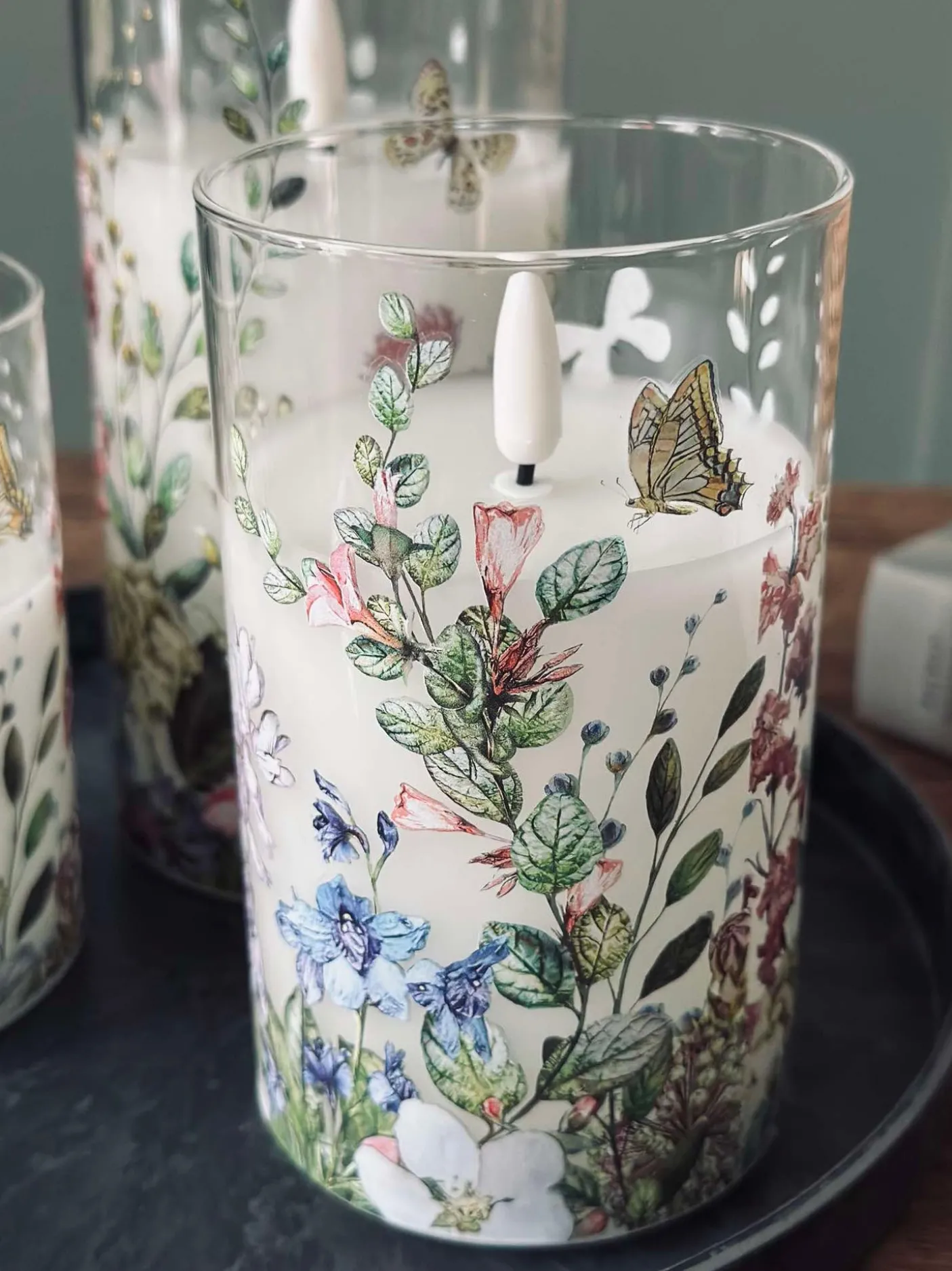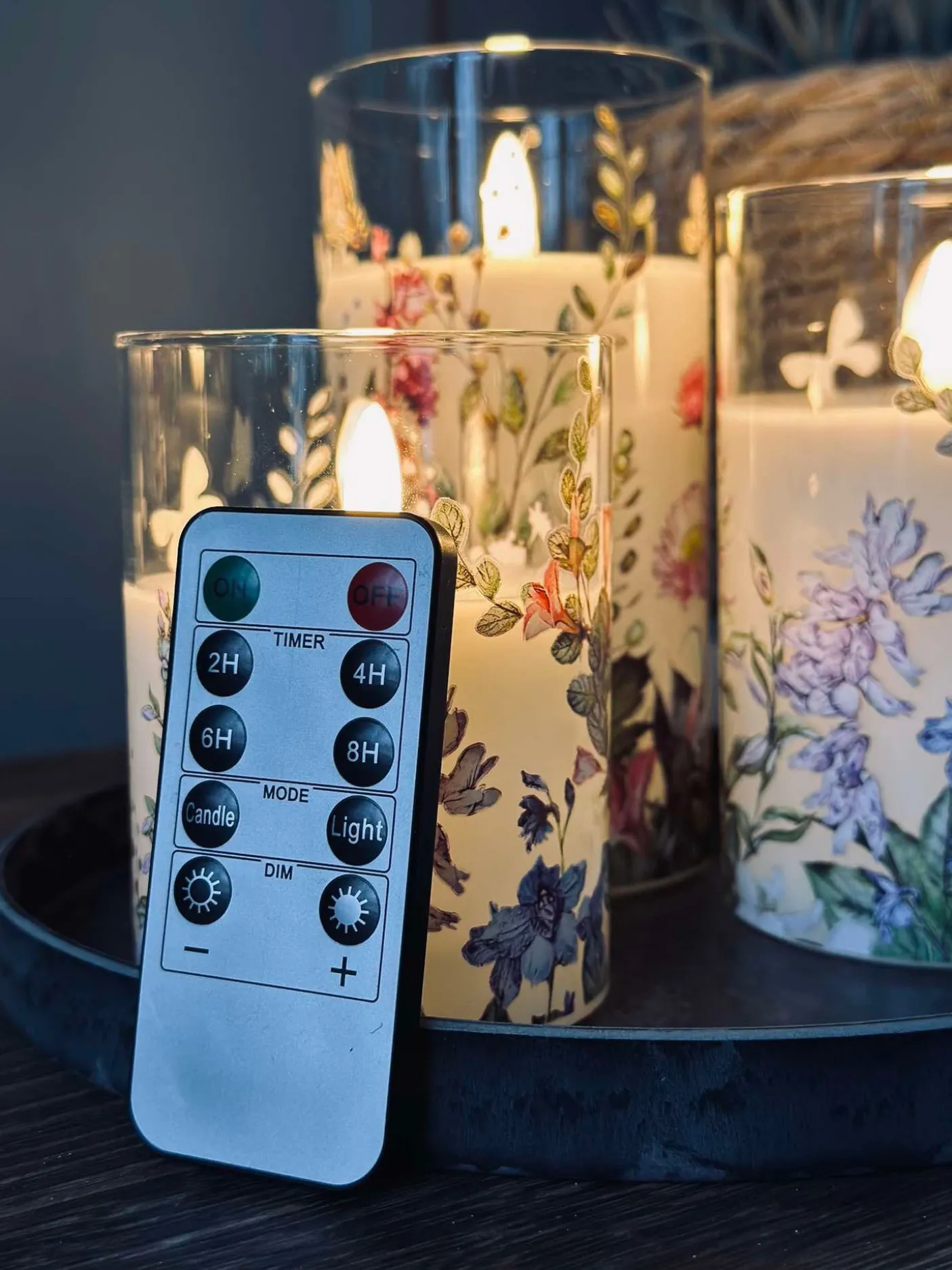 LED Bloklys i cylinder med det flotteste blomster print.