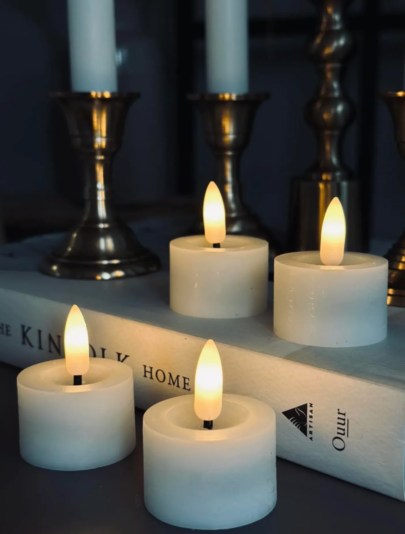 Pakke med 4 stk voks fyrfadslys.