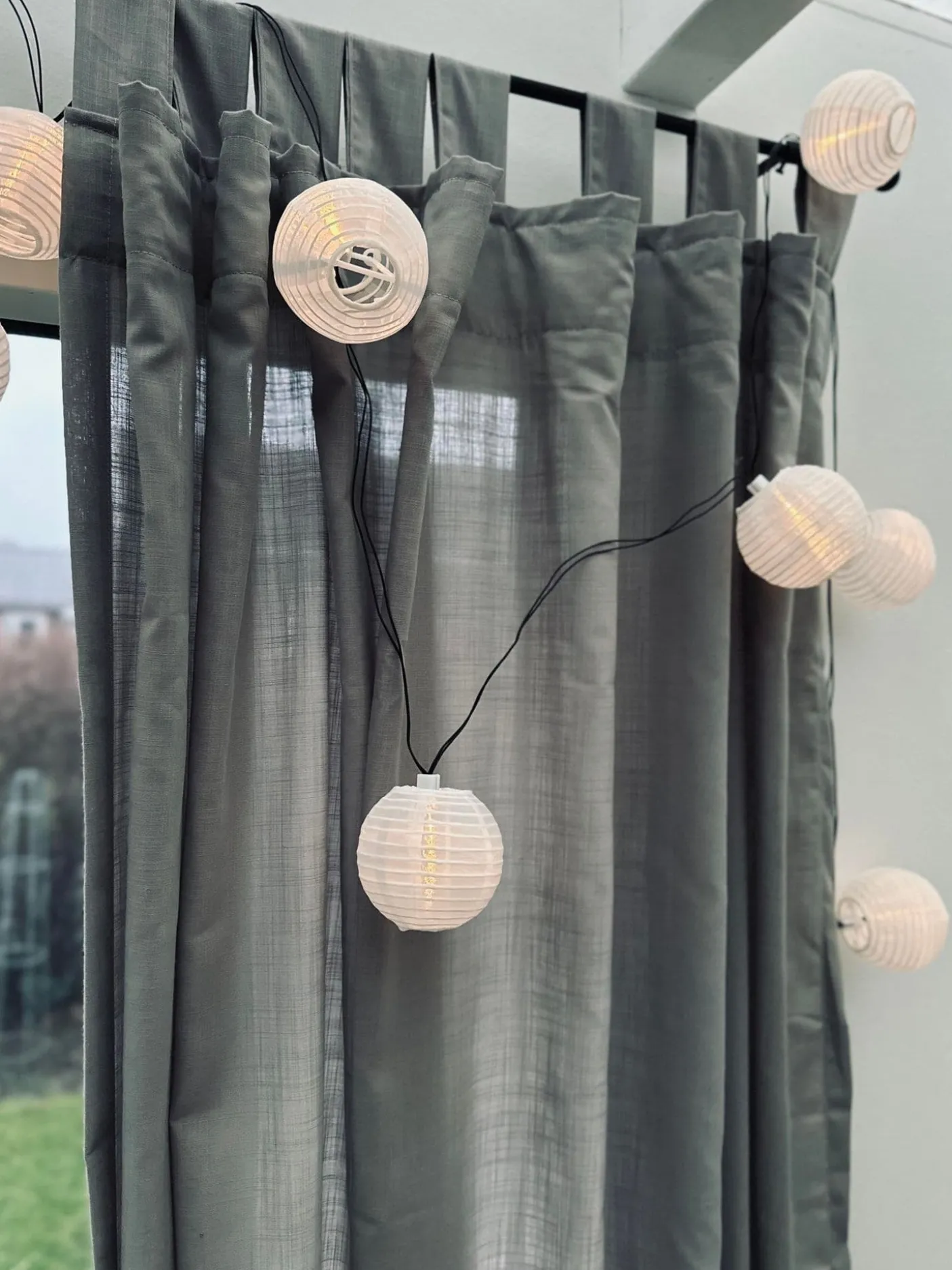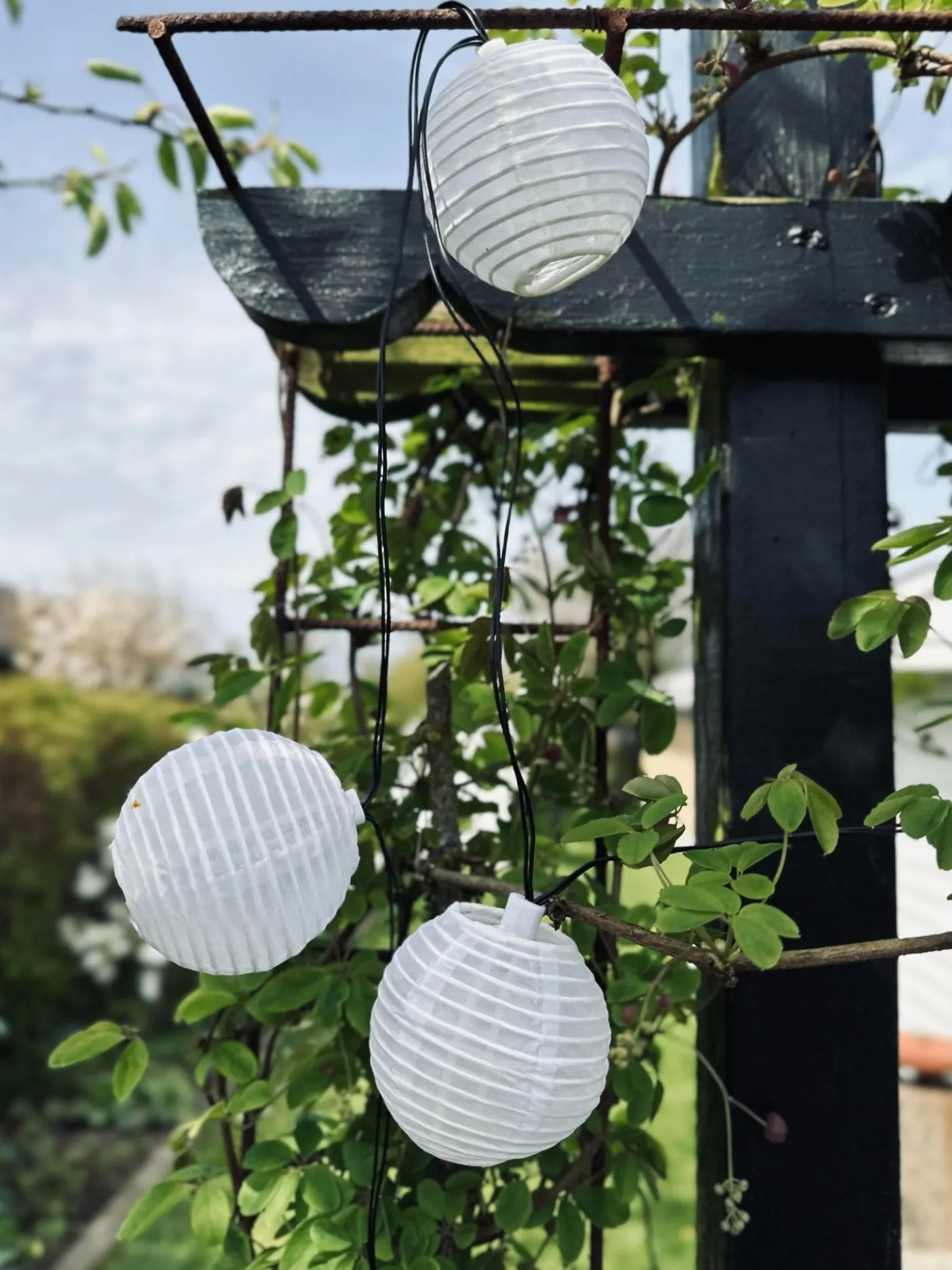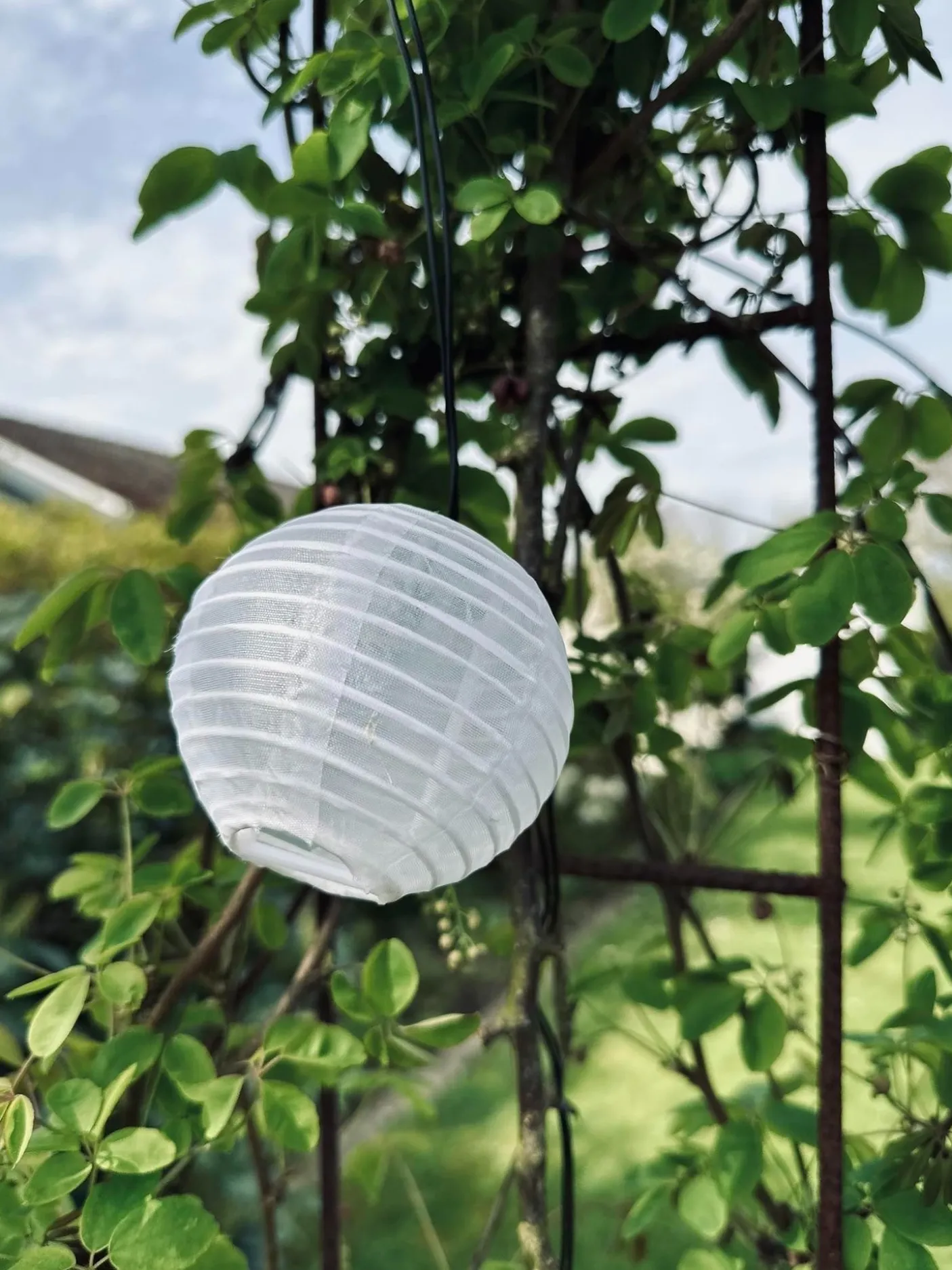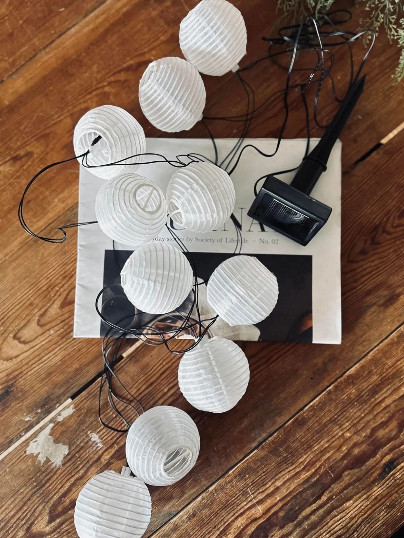 Lyskæden oplades i sol timerne og lyser når det bliver mørkt.